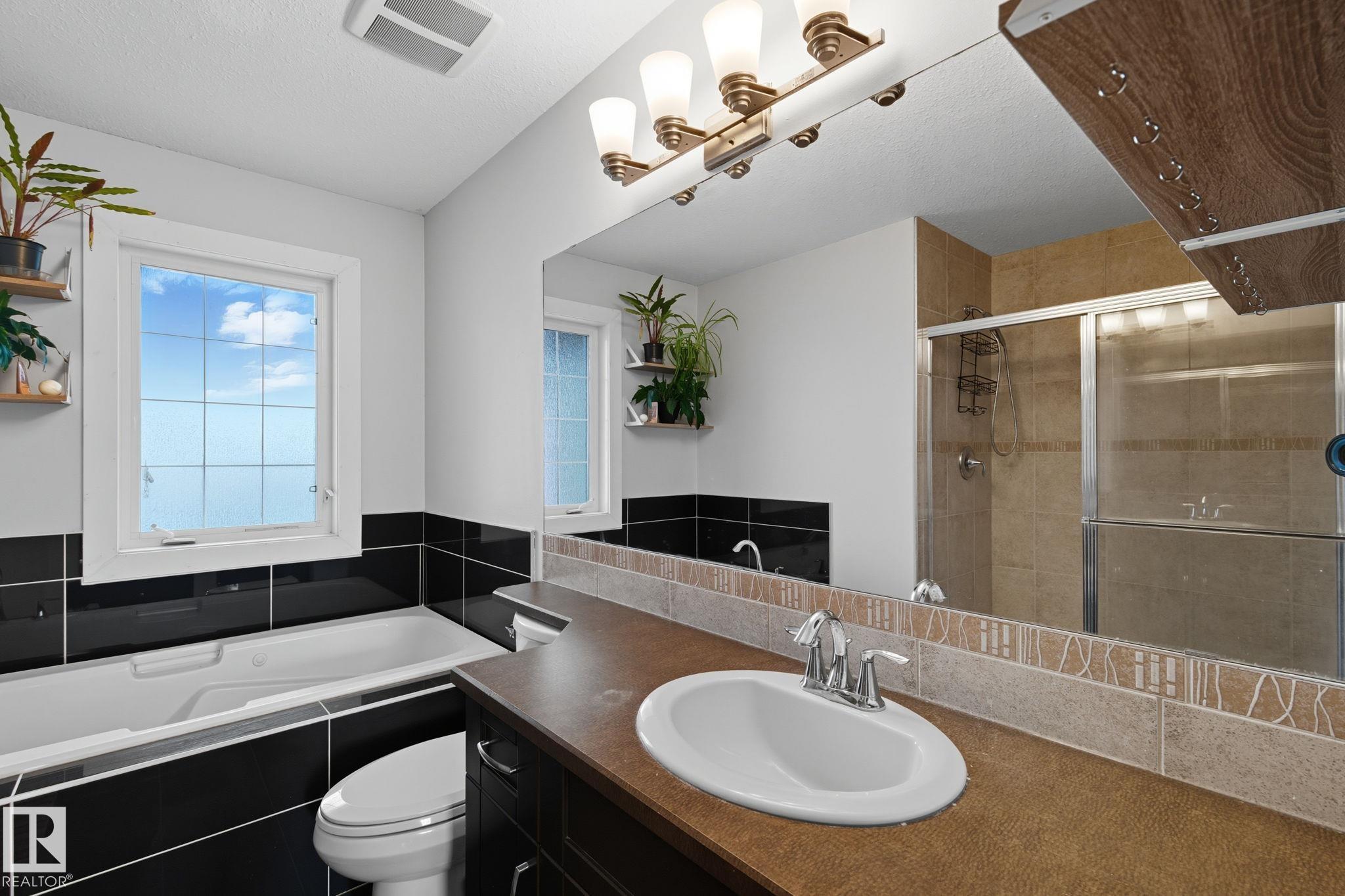 LOCATION! This Elegant Executive 3+1 bdm Montorio home sits on quiet culdesac, has superb curb appeal w/ stone ext detailing, landscaped & steps from school, park and Coloniale golf course. Welcoming foyer, custom tile & hardwood flooring, pillars leading to a fabulous open floorplan, lrg very sunny WEST windows overlooking backyard. Gorgeous dark maple island kitchen has stainless appliances, plenty of cabinets, granite countertops and pantry! Expansive dining area is off kitchen opens onto large deck and fenced landscaped backyard. Good sized living room that's cozy w/ its gas fireplace, mantel & w/ backyard views thru oversized WEST picture windows. Laundry and bath complete main floor. ALSO A/C throughout! Upstairs has vaulted ceilings in large bonus room w/ more windows. Kingsized master bedroom has walkin closet & full ensuite AND soaker tub. 2 add'l bedrooms and full bath upstairs. Fully finished basement has add'l 4th bdm and family room. EXTRA large double heated garage! A MUST SEE!!
