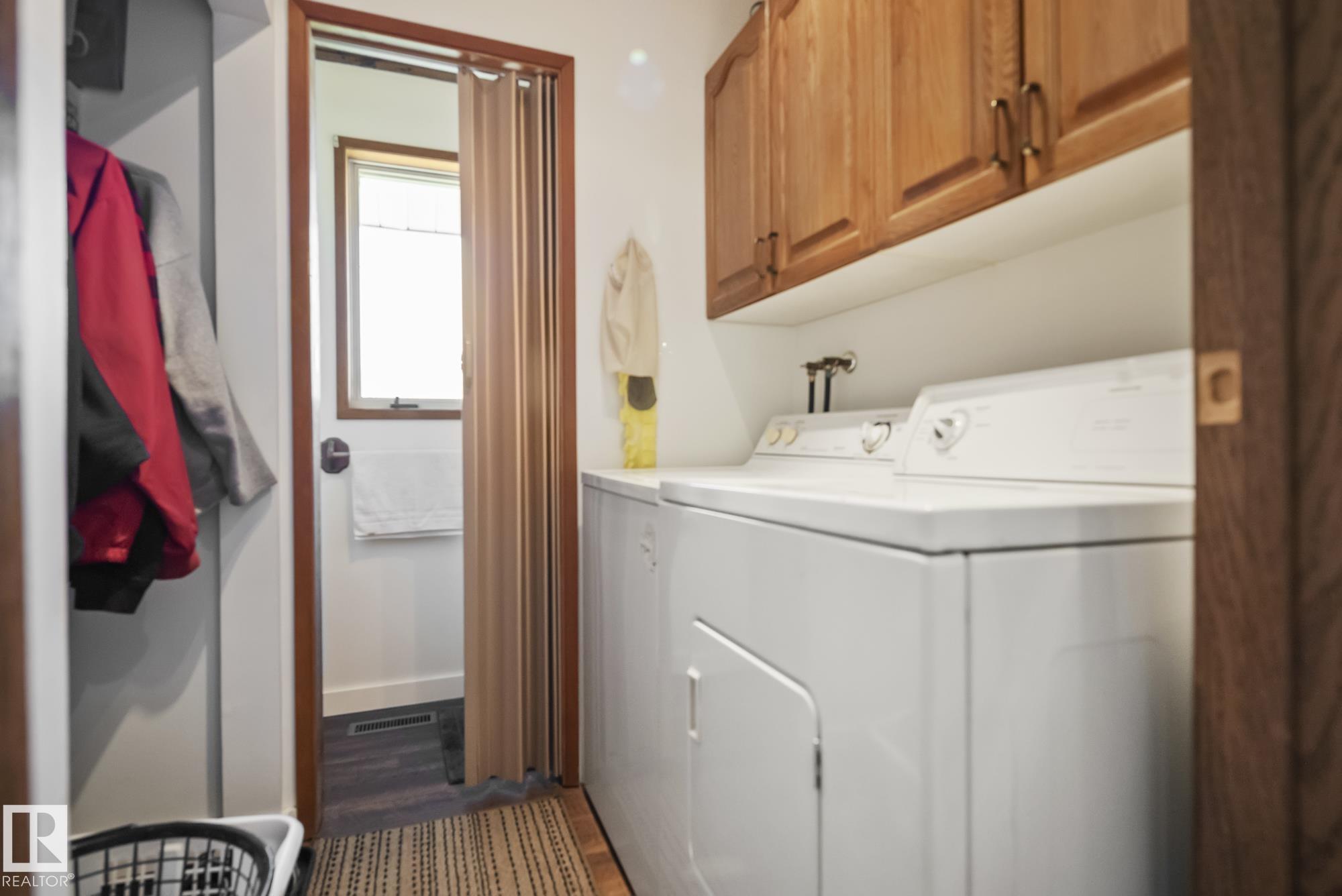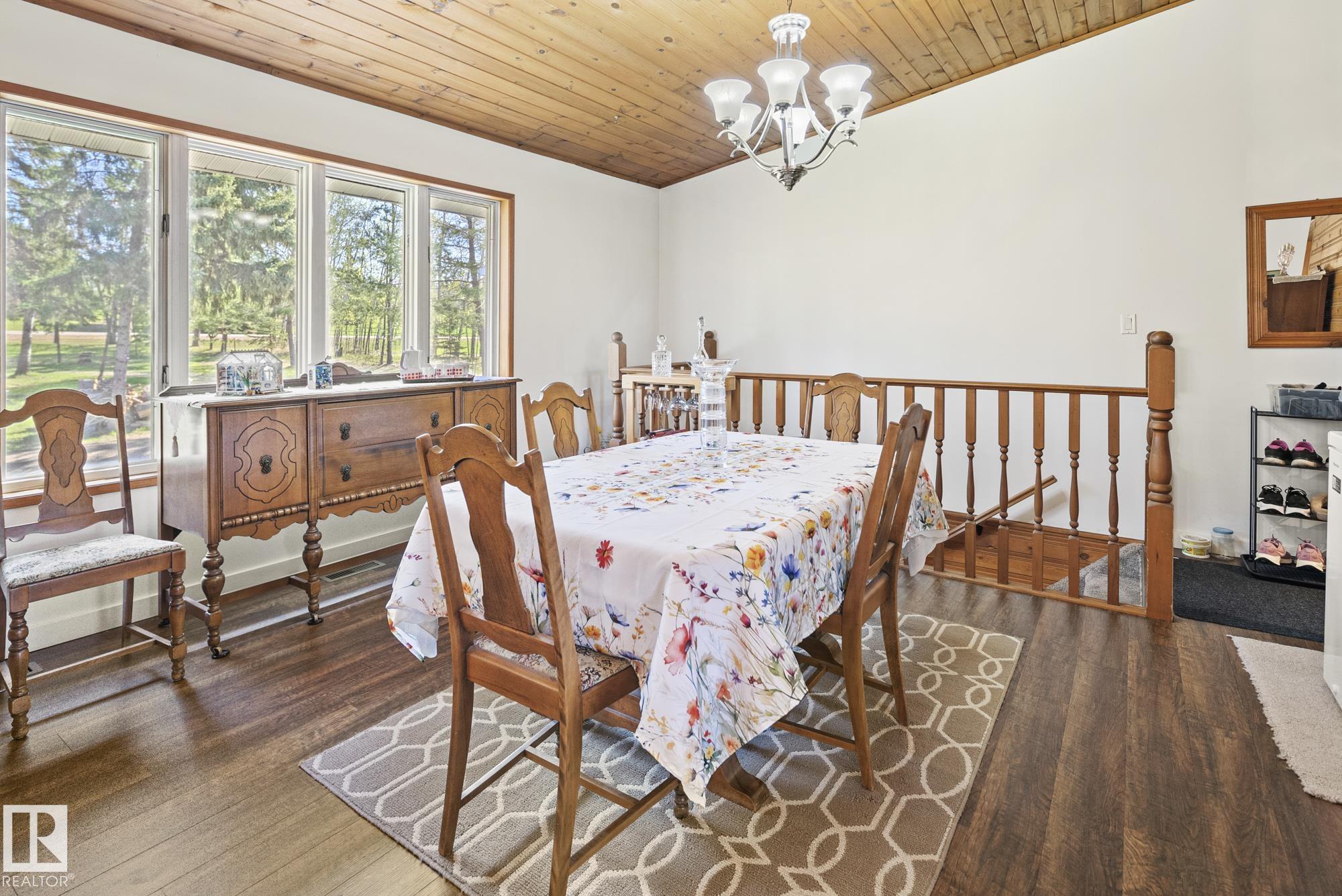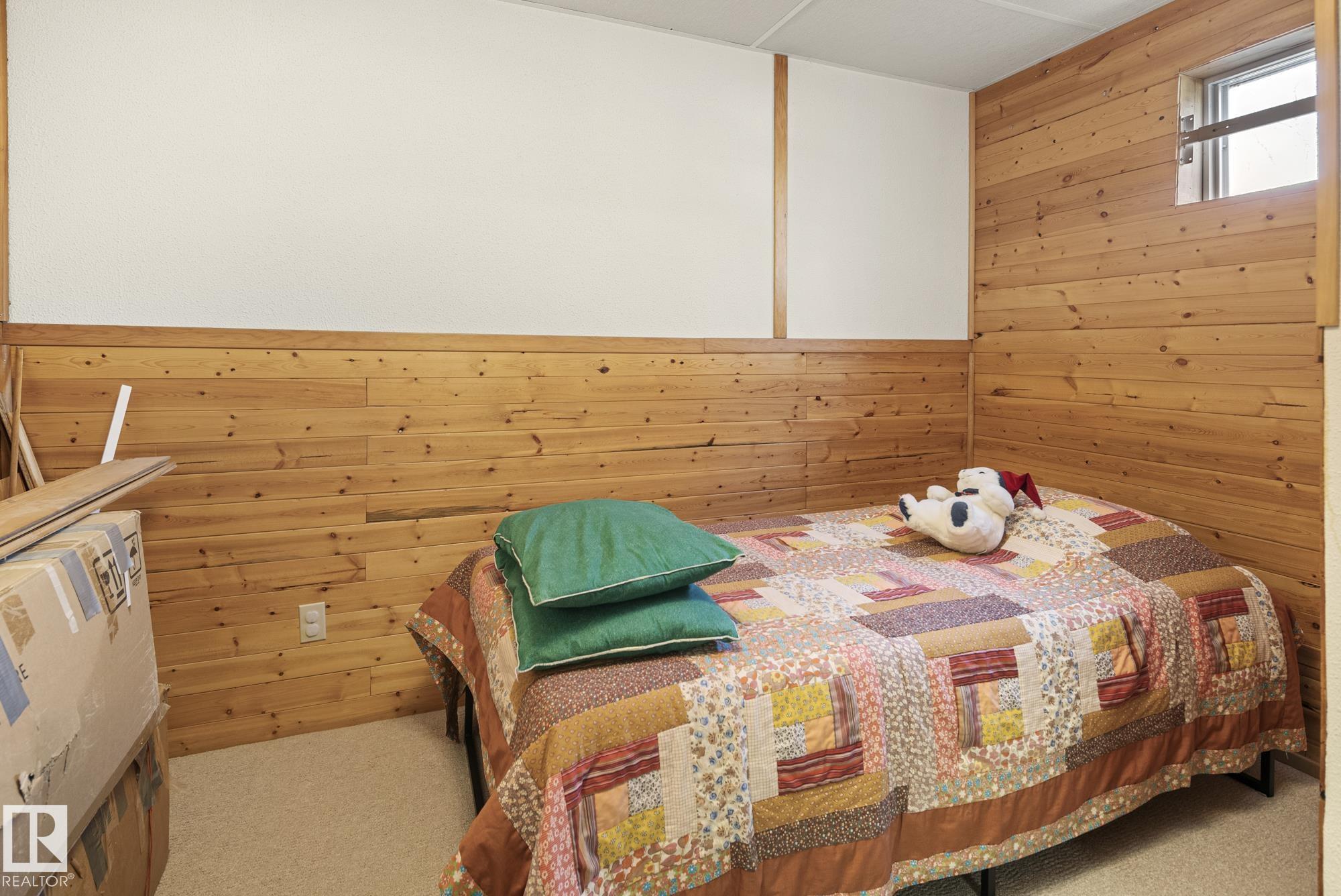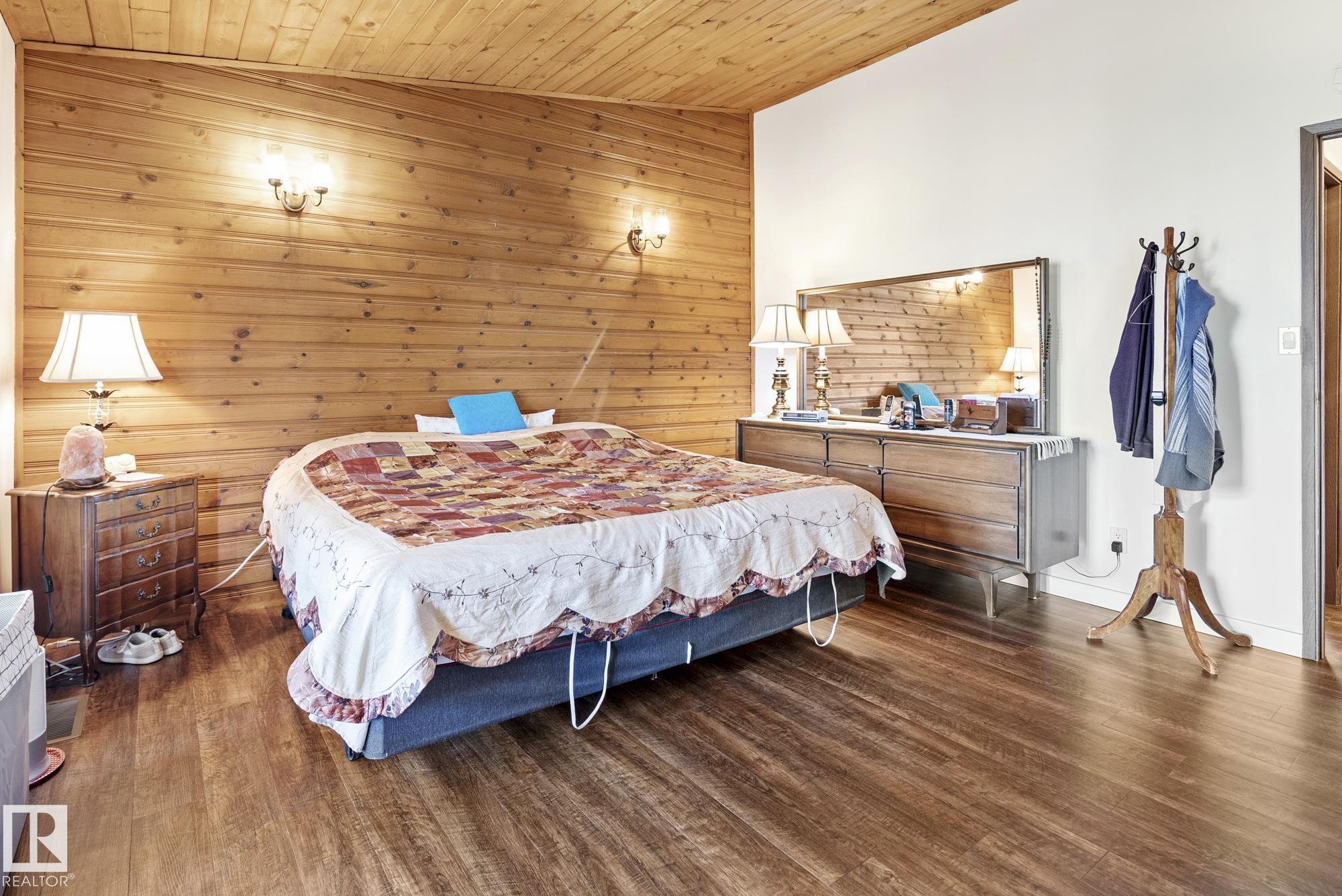 Welcome to this beautiful bungalow in the Gibbonslea subdivision, just minutes from the town of Gibbons, 5 minutes from Goose Hummock Golf Course and Jurassic Forest, with quick access to Highway 28A. Proudly owned by the original owners, this immaculately maintained sq. ft. home features vaulted pine-planked ceilings, vinyl flooring throughout the main floor, and a cozy corner wood-burning fireplace in the living room. The kitchen offers quartz countertops, a built-in oven, ample storage, and windows overlooking the property. The main floor includes three bedrooms, a 4-piece main bath, and a 4-piece ensuite off the primary bedroom, which also connects to a framed sunroom heated by a gas fireplace and surrounded by windows. The fully finished basement includes a hot tub room, a fourth bedroom, and generous storage space. An attached double garage and with man door out to a beautifully landscaped private yard with apple trees fire pit area. This is a must see character property.