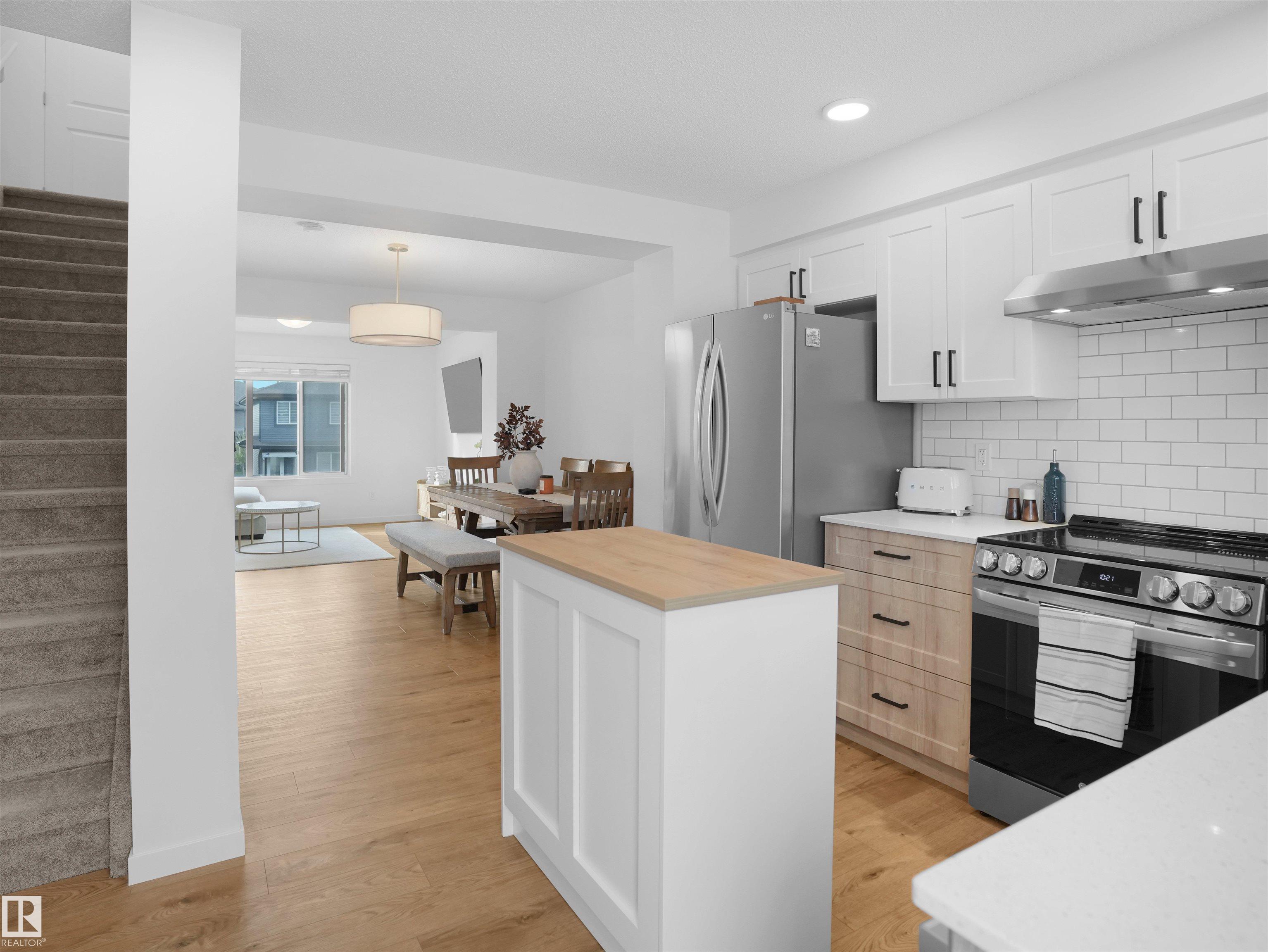 NO CONDO FEES! Welcome to this beautiful END UNIT townhome in the desirable community of Rosenthal. The open-concept main floor offers a bright living and dining area, perfect for everyday living or entertaining, while the timeless two tone kitchen opens to a private balcony—great for morning coffee or evening relaxation. Upstairs, you’ll find two spacious bedrooms, each with its own full bathroom, including a primary suite with ensuite. The entry level adds extra versatility with a bonus room complete with closet, ideal as a third bedroom, office, or flex space, plus a convenient half bath. Enjoy the oversized single attached garage, a charming front yard for your garden or flower bed, and an excellent location close to Costco, shopping, schools, parks, and all amenities. This move-in ready Rosenthal gem is the perfect starter home or downsizing option—don’t miss your chance to make it yours!