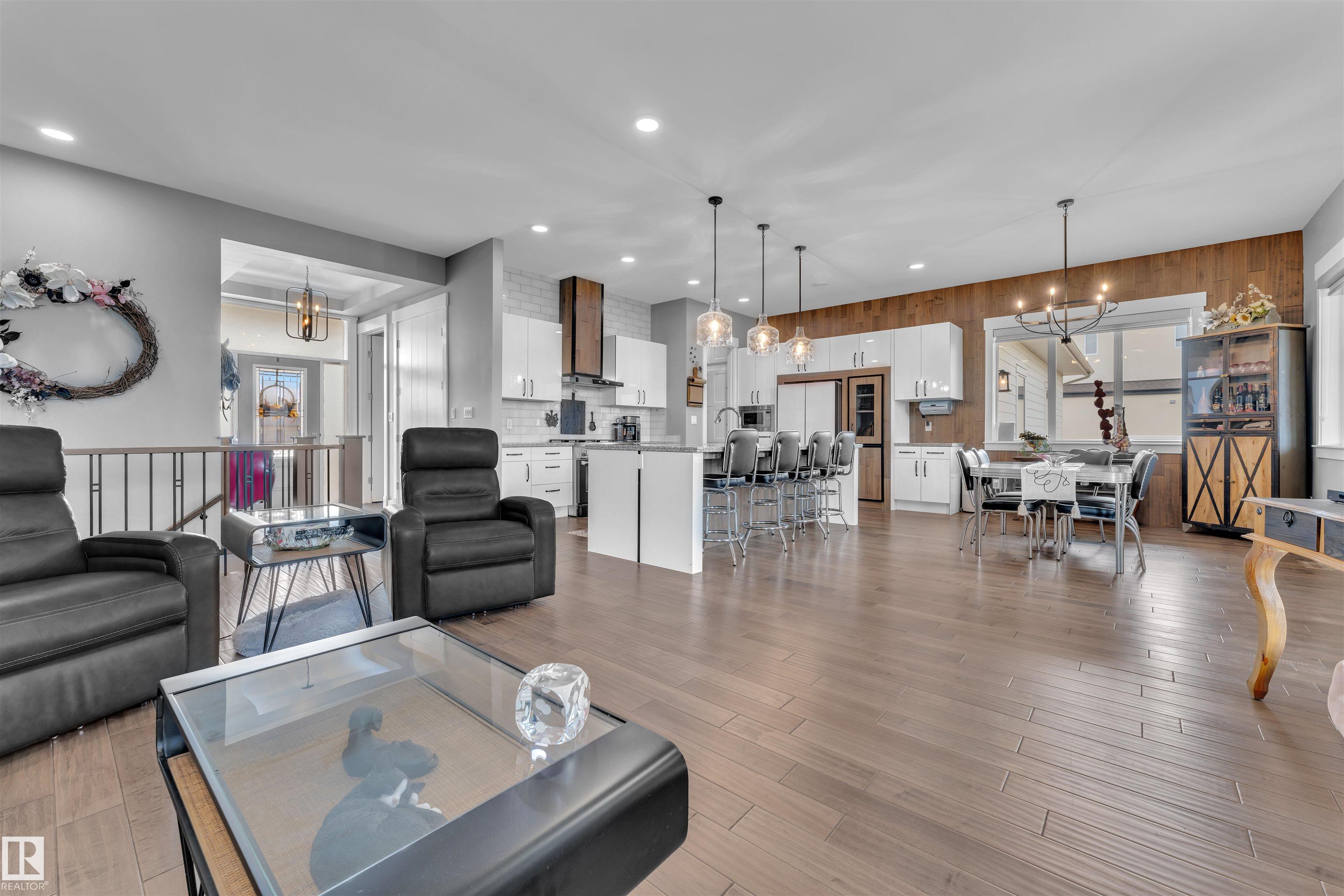 Custom built walk out bungalow on a prime cul-de-sac lot in Spring Meadow Estates. 10 feet ceiling on main floor. Great open floor plan with a modern finishes, center island, Granite counter, large double fridge/freezer opening , walk through pantry, Dining area with garden door to covered deck, living room with gas fireplace , Hardwood floors and high flat finished ceilings. Master bedroom with 5 piece ensuite and a walk in closet. 2 additional bedrooms, mudroom / Laundry room off garage entrance. Fully developed walkout basement with a huge family room, 2 bedrooms , 4 pc bath and a large storage/Furnace room. Home is finished with top quality throughout including hardwood, full Led lighting package, vinyl plank in basement, Concrete , Hardie plank and stone exterior. Concrete patio at the back & Heated triple garage. 8 minutes to Edmonton & Spruce Grove.