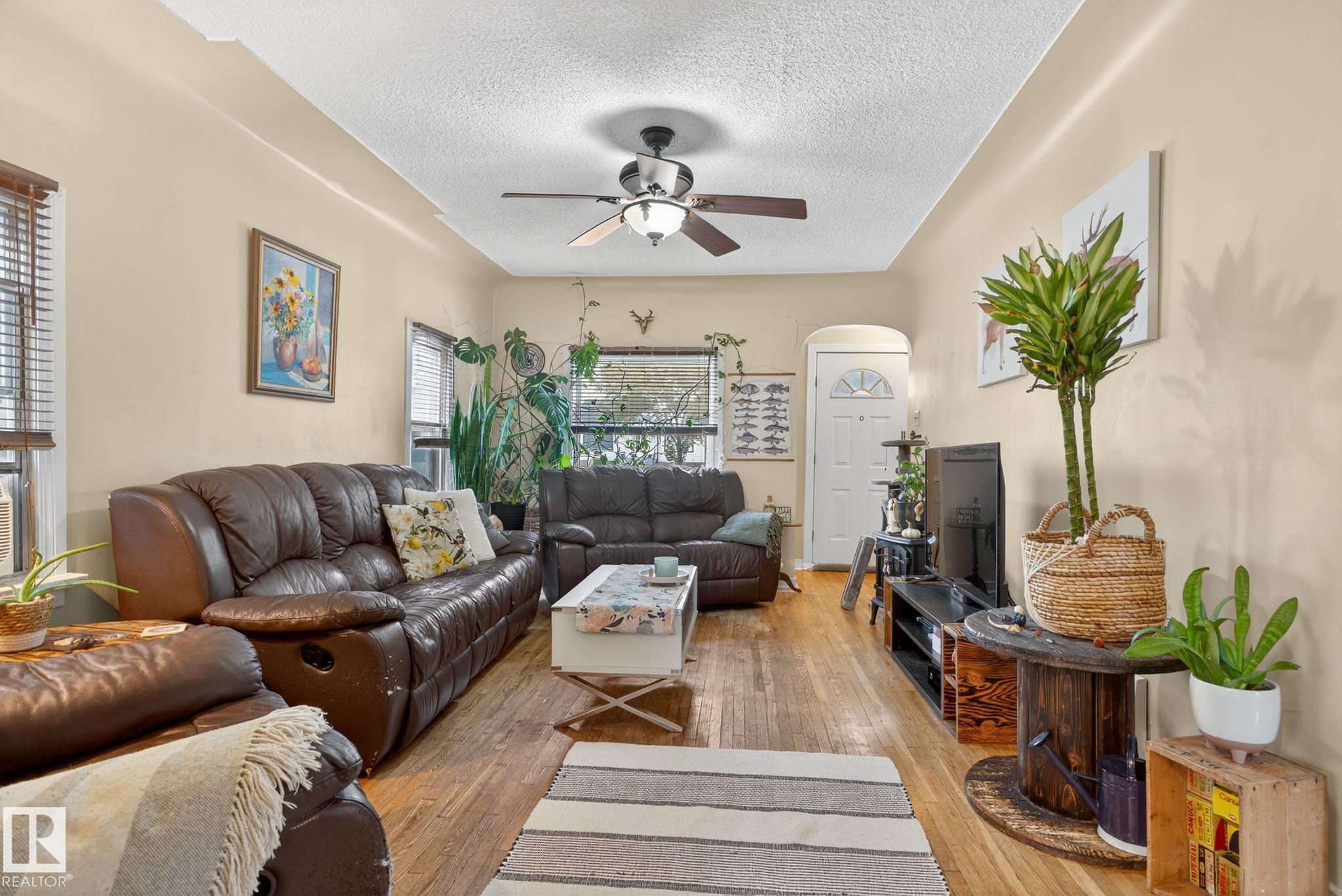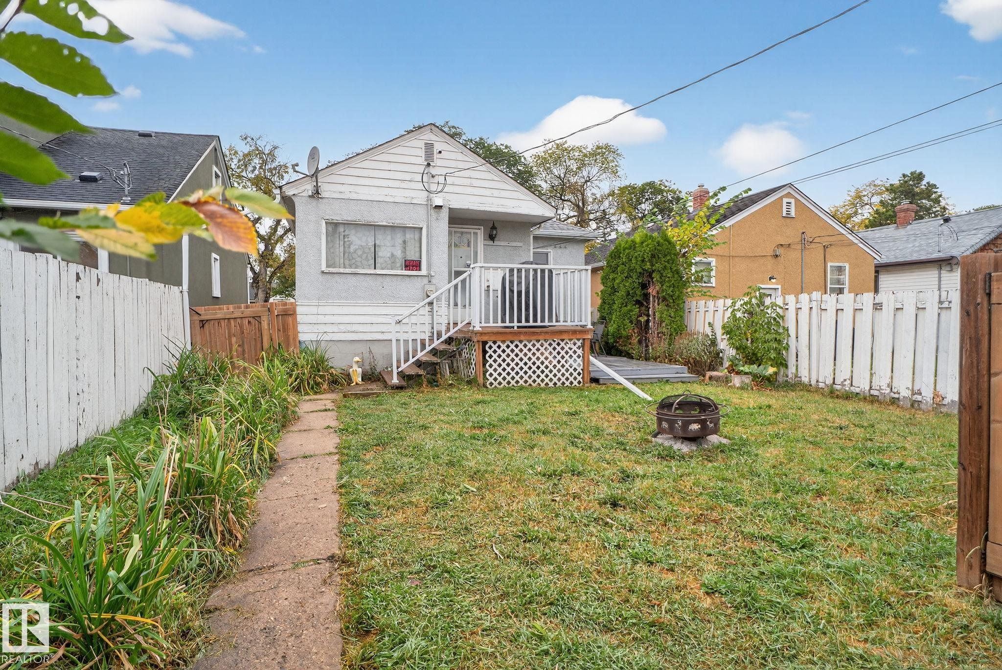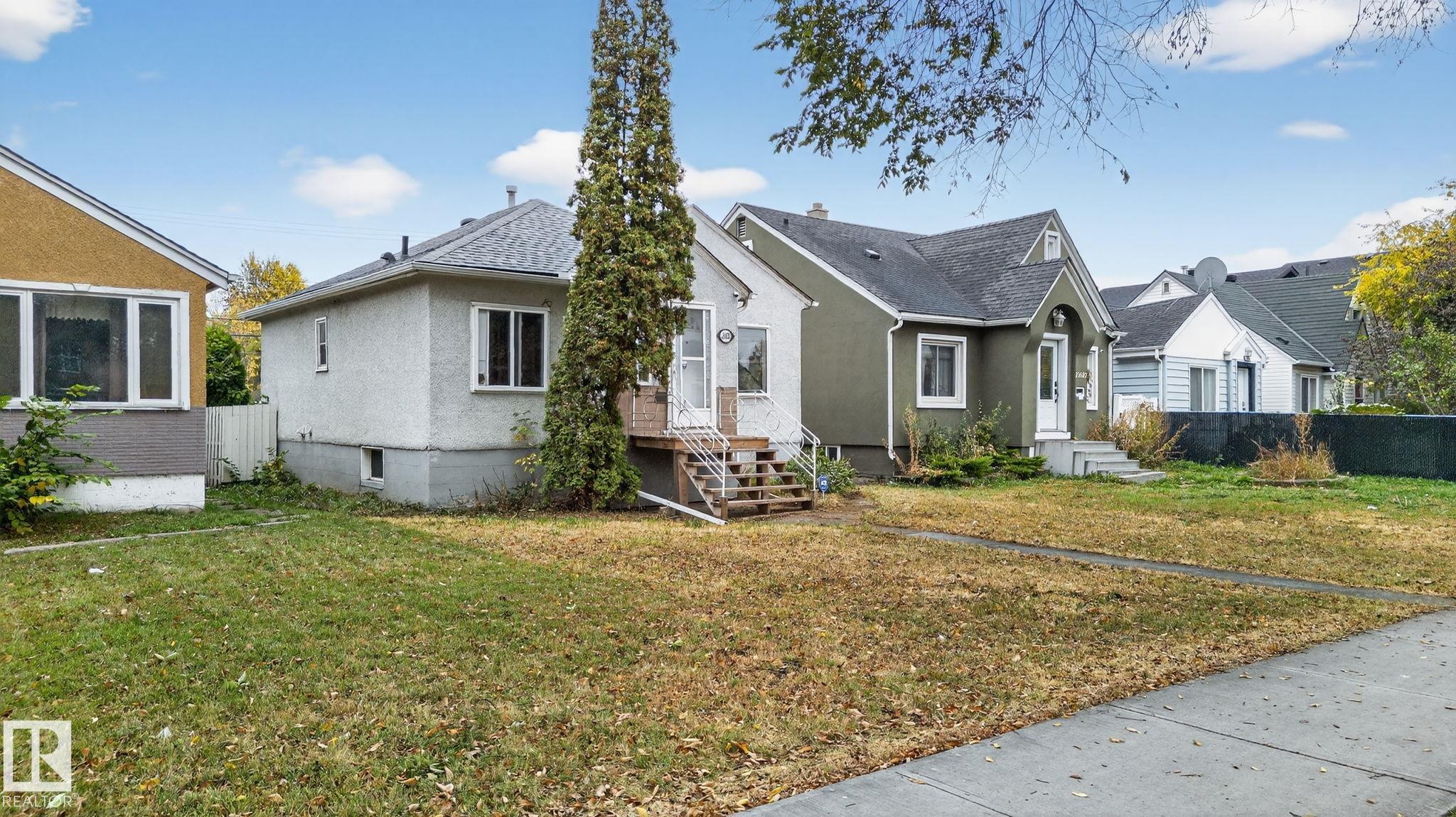 Charming 915 sq ft 3 bed 2 bath bungalow on a large (33 ft x 143 ft) lot that is zoned RF3 - great for re-development! Live close to Jasper Ave, NAIT, and MacEwan while enjoying the convenience of downtown living! The main floor offers hardwood flooring throughout, a bright kitchen with freshly painted cabinets, 2 bedrooms and a 4 piece bath. Separate entrance to the basement features a cozy family room, second kitchen, another bedroom, 3-piece bath and laundry area with sink. Recent updates include a new roof for added peace of mind. Enjoy a large fenced in yard with a new lower deck, plus a single detached garage and room to build a double if desired. Perfectly located just 5 minutes to the Royal Alex Hospital, Glenrose Rehab Centre and Kingsway Mall.