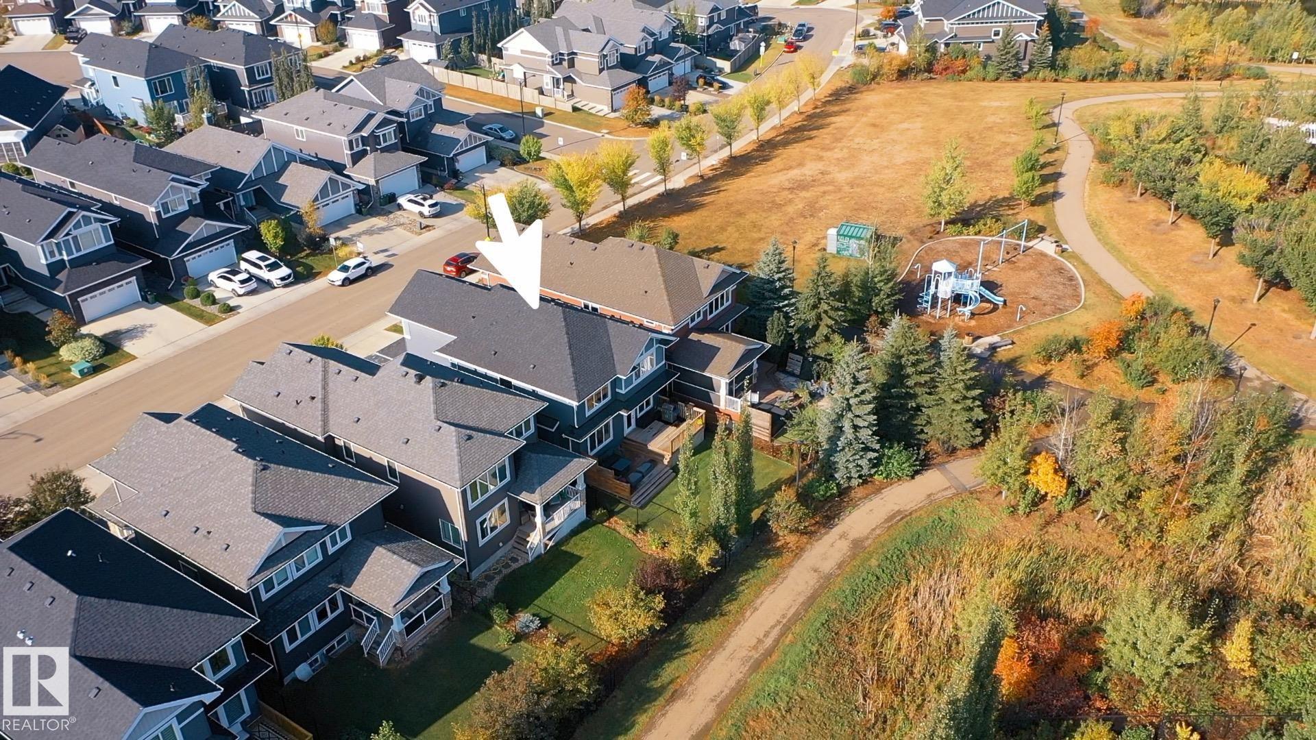 Prime location backing walking trails and step from the park! Step into a bright foyer leading to a dramatic 18-ft great room with a striking tiled feature wall and elegant coffered ceiling. The gourmet kitchen boasts ceiling-height cabinetry, stainless steel appliances, a large breakfast bar island, and a convenient walk-through pantry. A functional mudroom with built-ins and a versatile main-floor den enhance everyday living. A sleek glass-railed staircase leads to the upper level, featuring 3 bedrooms, 2 baths, and a generous bonus room. The primary suite offers a spa-inspired ensuite with a Jacuzzi tub, double vanity, tiled shower, and an expansive walk-in closet. The unfinished basement awaits your final touches. Additional highlights include quartz countertops, built shelving, a two-tiered deck overlooking green space, 9-ft ceilings on main and basement, 12×24 tile flooring, upgraded soft-close cabinetry, and abundant pot lighting. A stylish, well-appointed home in an unbeatable setting!