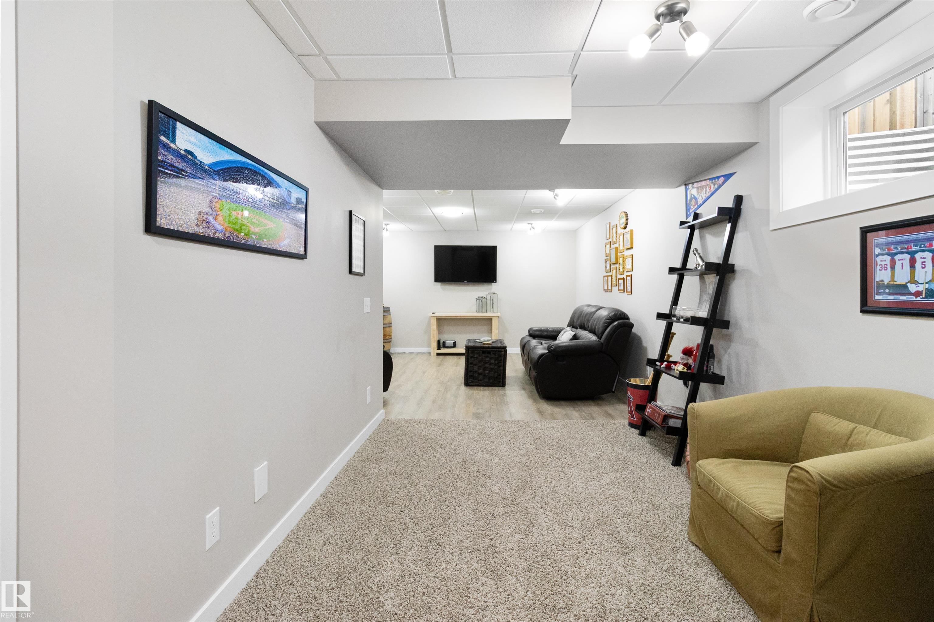 This potential 5 BR/3.5 Bath home in Lakeland Ridge is immaculate! Main Floor features hardwood flooring throughout & new carpet in the Den. Kitchen features a large Island, Fridge, Stove, DW , Microwave Hoodfan & large walk thru Pantry/Laundry Room. An expansive Kitchenette area & Great Room with corner Gas Fireplace & powder room complete the MF. Upstairs features all new carpet, a Bonus Room with a door giving it the potential to be a 4th BR. 4 PC Main Bath & 2 Bedrooms. The Extra Large Primary Bedroom featurs a Walk in Closet & 4 PC Ensuite with SU Shower & Soaker Tub. The Fully Finished basement features a spa like Bathroom with large WI Shower, Family Room & Bedroom with a large WI Closet. The tiered deck is found off the Kitchenette area leading down to a large back yard. Additional features are the all new widows(2023), New Window coverings (2023), Roof (2022), AC (2019), Carpet (2025), Hot Water Tank (2020), Garage Door (2017), Gas BBQ Line on the deck and surround sound system throughout house.