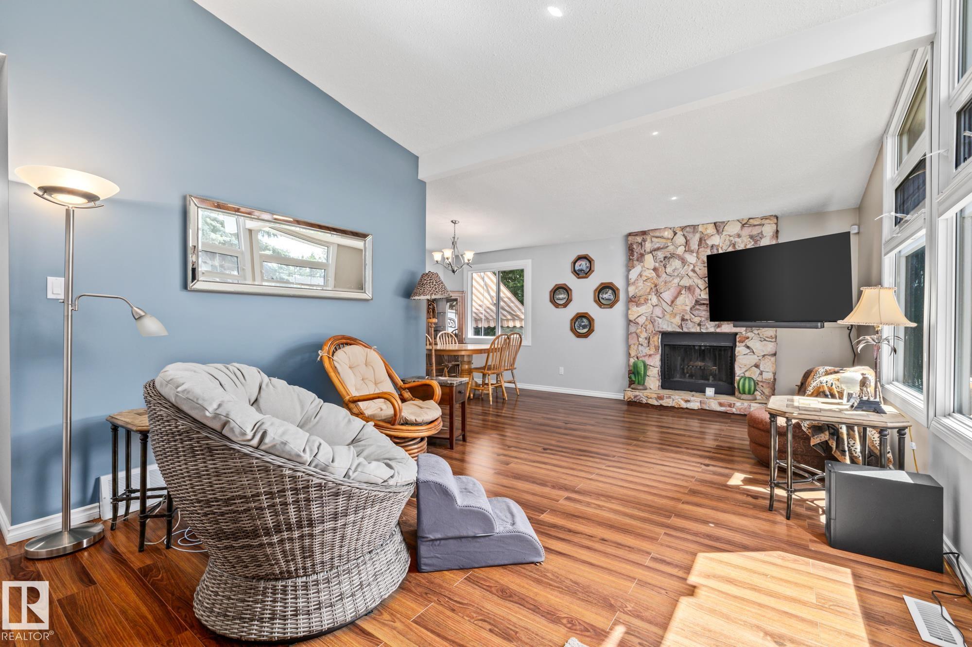 Welcome to this charming A-frame bungalow located on a quiet cul-de-sac in the desirable community of Carlisle. This well-maintained home sits on a huge pie lot with a stunning, bright backyard oasis perfect for entertaining. Step inside to an open floor plan with a total of 5 bedrooms, including 3 on the main floor, and 2 full bathrooms—one of which is an ensuite. The living space extends into a gorgeous 4-season solarium, updated with new windows in 2018 and heated with its own furnace, providing a tranquil retreat year-round. The property also features a convenient side deck with an awning, a double attached garage with a 220V plug, and a central vacuum system. With quick access to major routes, you're just minutes from schools, parks, and all the shopping and amenities you could need. This is a truly remarkable family home waiting for you.
