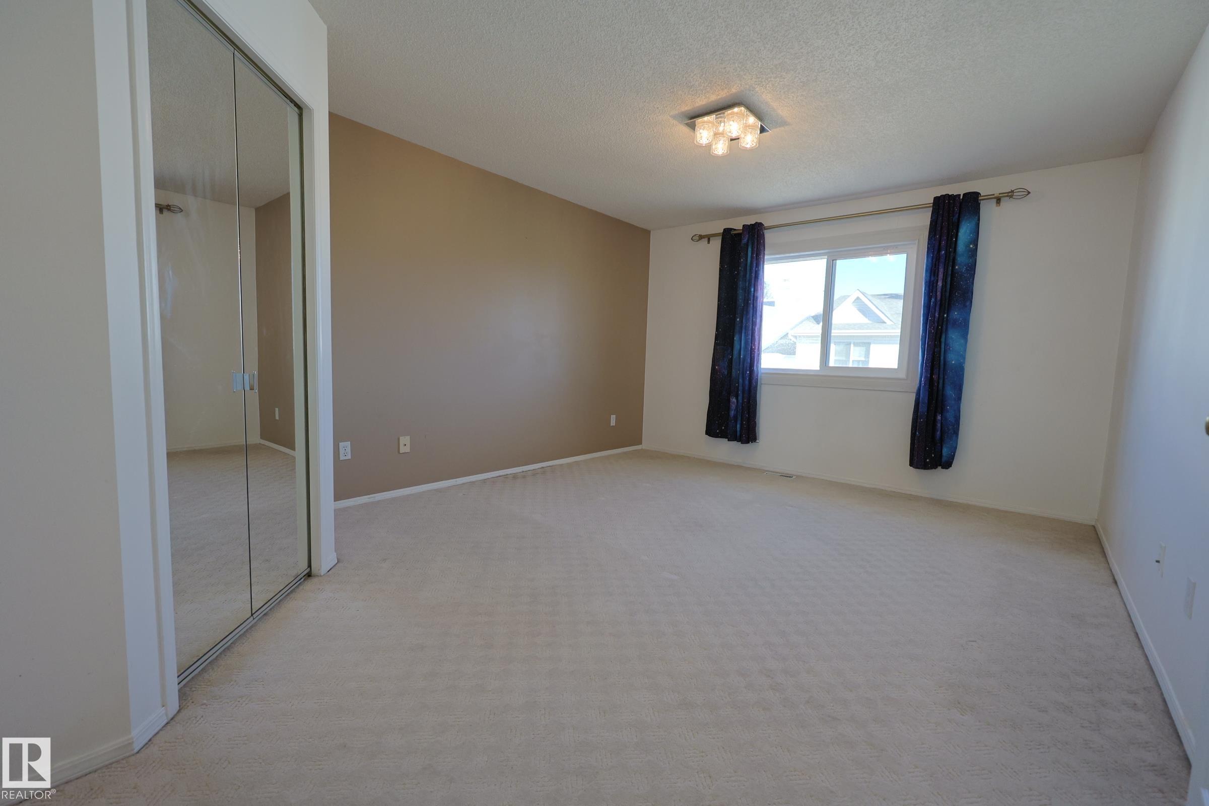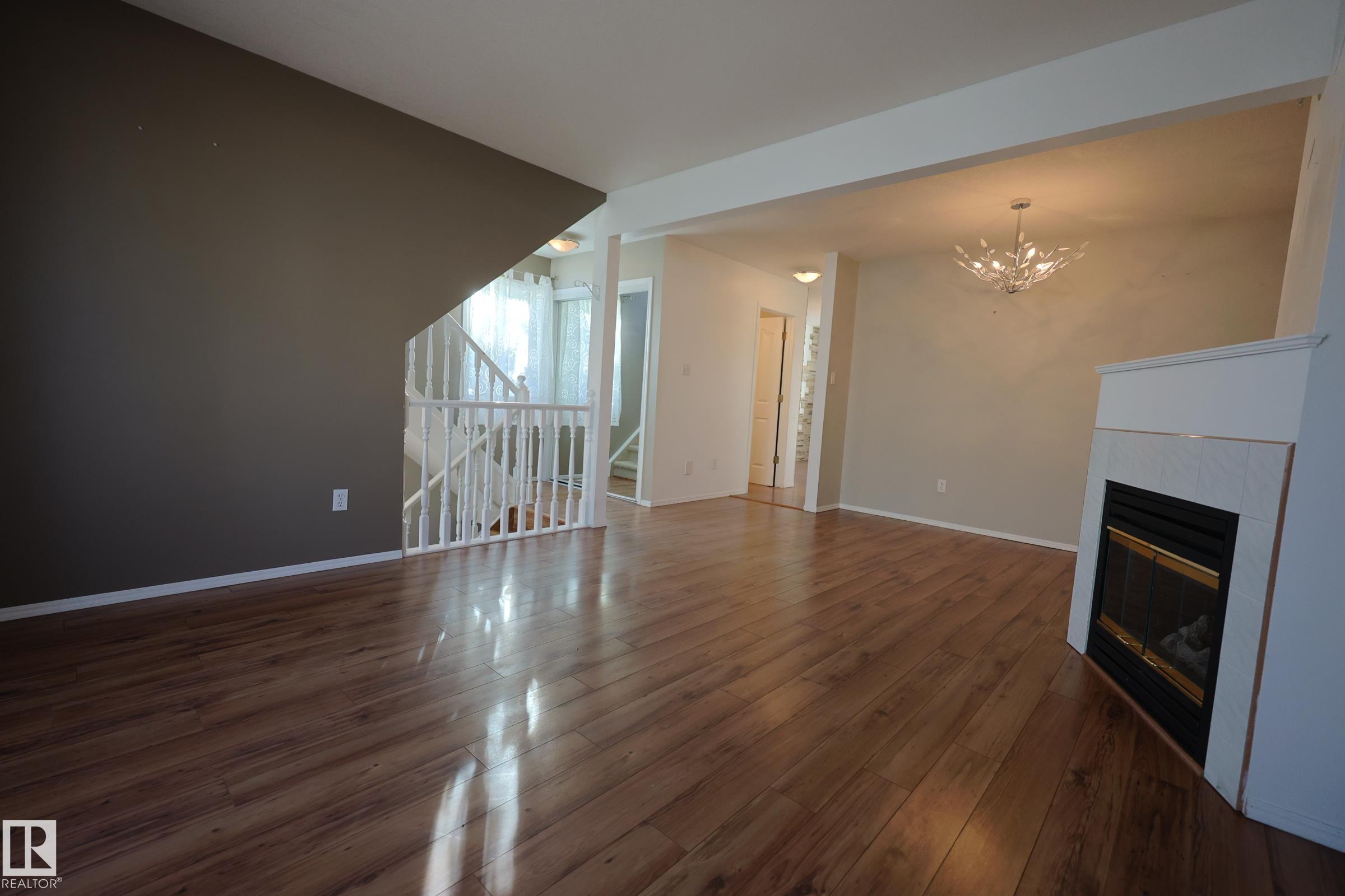 TOWN HOME CONDO Located in the right between Downtown Edmonton and West Edmonton Mall just MINUTES FROM THE RIVER VALLEY and tails, 2 min walk to the NEW LRT STATION that is currently under construction. END UNIT is this small condo project with extra side yard space. STONE DETAILS AND LAMINATE FLOORING throughout the main level with a GAS FIREPLACE AND BAY WINDOW in the living room and Formal dining room adjacent. Kitchen is FILLED WITH NATURAL LIGHT. Lots of cabinets and storage with ROOM TO WORK plus a window over the sink. Spacious Dinette with Garden door to SOUTH FACING DECK that was set up for pets. Upstairs to PRIMARY SUITE FIT FOR A KING with a walk in closet and full ensuite including SHOWER WITH BODY SPRAYS. Bedrooms 2 and 3 are similar in size with a full bathroom adjacent. BASEMENT IS FINISHED with rec room and more storage. Laundry is next to the update furnace and HWT. DOUBLE DEEP GARAGE is 35’ long with extra width near the front. NEW WINDOWS throughout plus a FLEXIBLE POSSESSION!