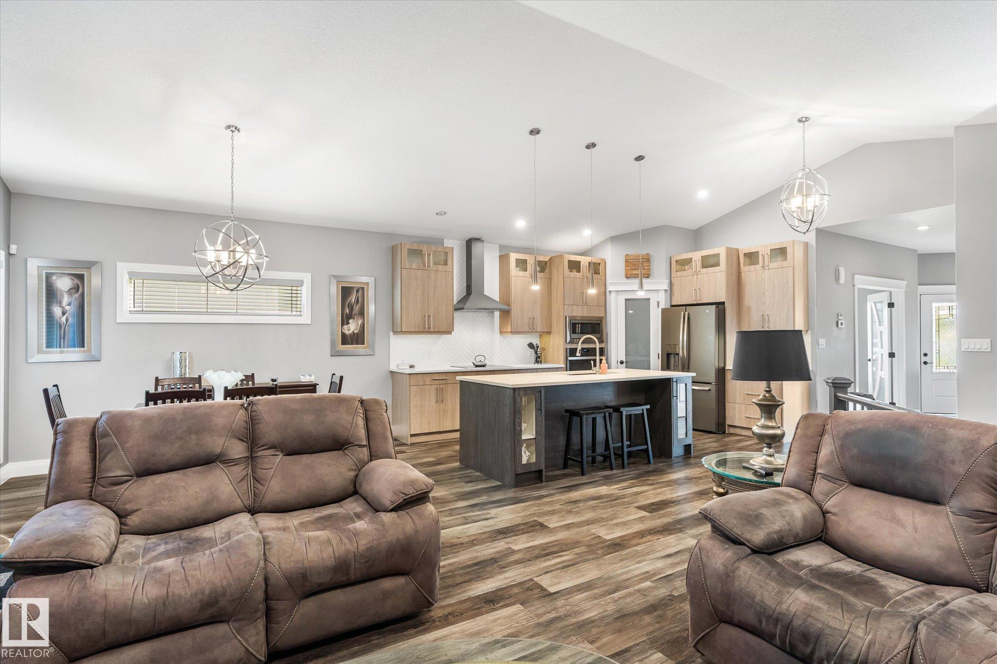 Exquisite custom-built bungalow with all the bells and whistles! Rare find in Fort Saskatchewan on a quiet cul-de-sac, partially backing a park for privacy. At 1,577 sq ft with fully finished basement, it offers high-end finishes and plenty of space for downsizers seeking single-floor living while keeping a functional basement. Stunning curb appeal includes a triple car garage and front veranda. Main floor features a bright den, warm fireplace in the living room, dining area, chef’s kitchen with stainless appliances, granite counters, island, and pantry. Mudroom with laundry, 4-pc main bath, and spacious primary bedroom with TWO walk-in closets and 5-pc ensuite with heated floors. Basement boasts high ceilings, large windows, 3 bedrooms, and massive rec space. Enjoy the back deck, landscaping, central A/C, and pristine condition — a true 10/10!