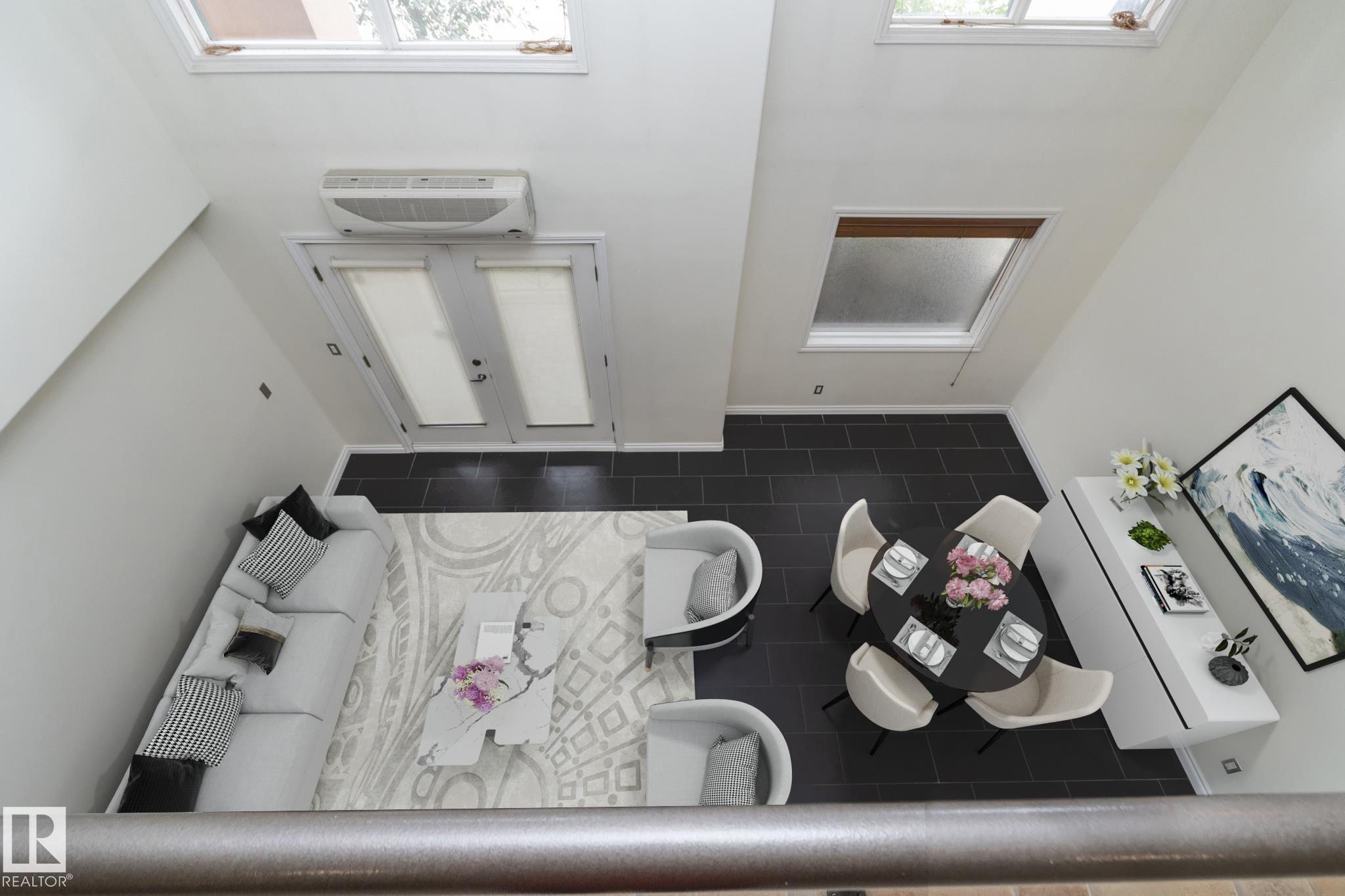 Manhattan Lofts - ideally situated along Saskatchewan Drive and walking distance to a number of key destinations. University Hospital, U of A Campus, Kinsmen Field House Rec Center, numerous shops, restaurants & cafes that line 109 St & Whyte Ave. Also within walking distance to downtown core and extensive river valley trail system. This expansive 2-story open concept loft style condo has an outstanding floor plan. All rooms are generous in size. Floor plan lends well to shared accommodations or hosting overnight guests. Bedrooms and full baths on each floor provide distance and privacy. Each level has a designated living room and added space to set up a home office. Other Features: In-suite laundry/storage, A/C, 17ft ceiling heights, large windows to take advantage of natural light, private patio off main level facing downtown skyline, granite counters, stainless appliances, in-floor heating and 2 underground heated stalls. Great value and flexible usage. Virtually Staged. Access to unit on flrs 1 & 2.