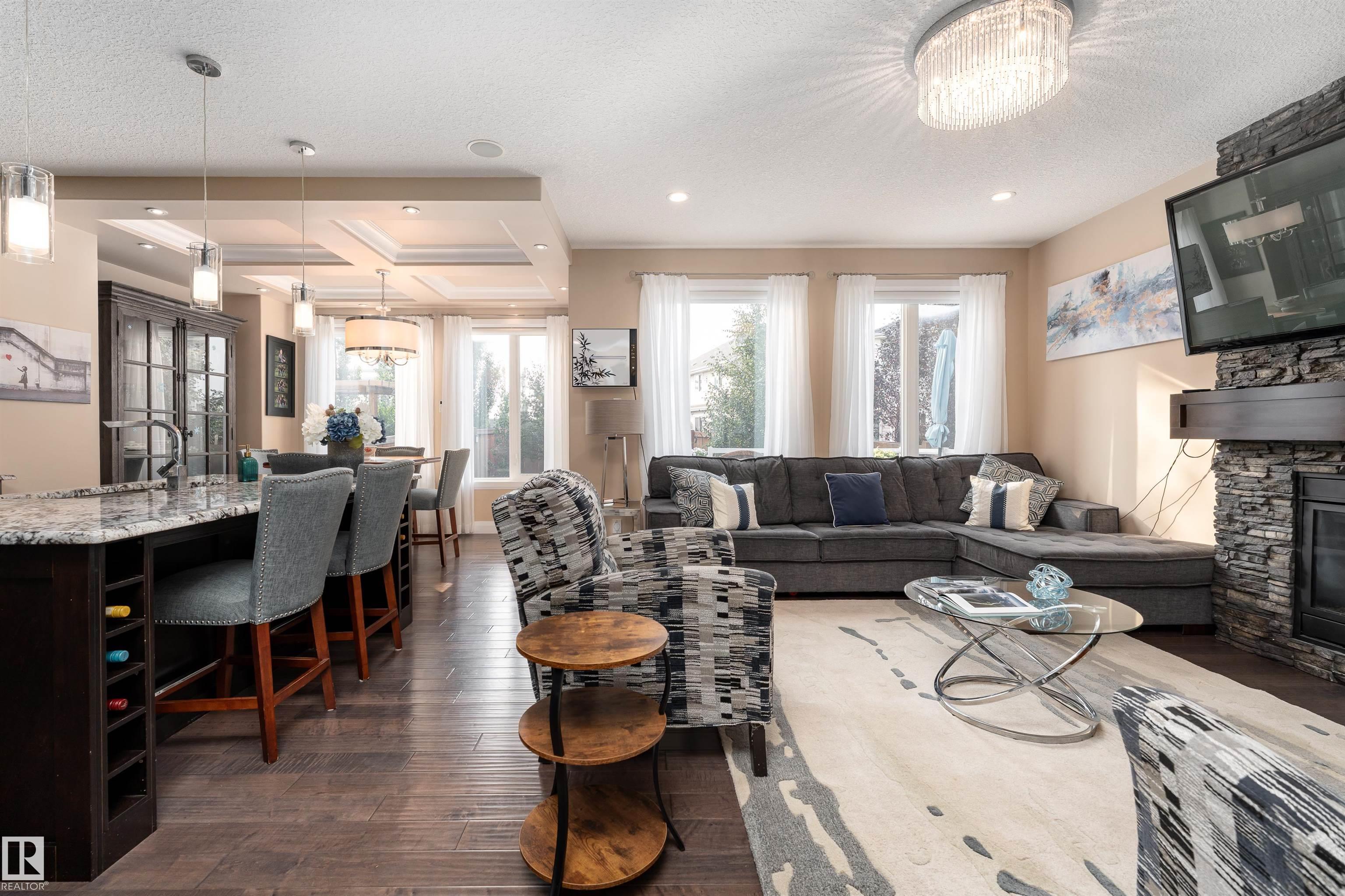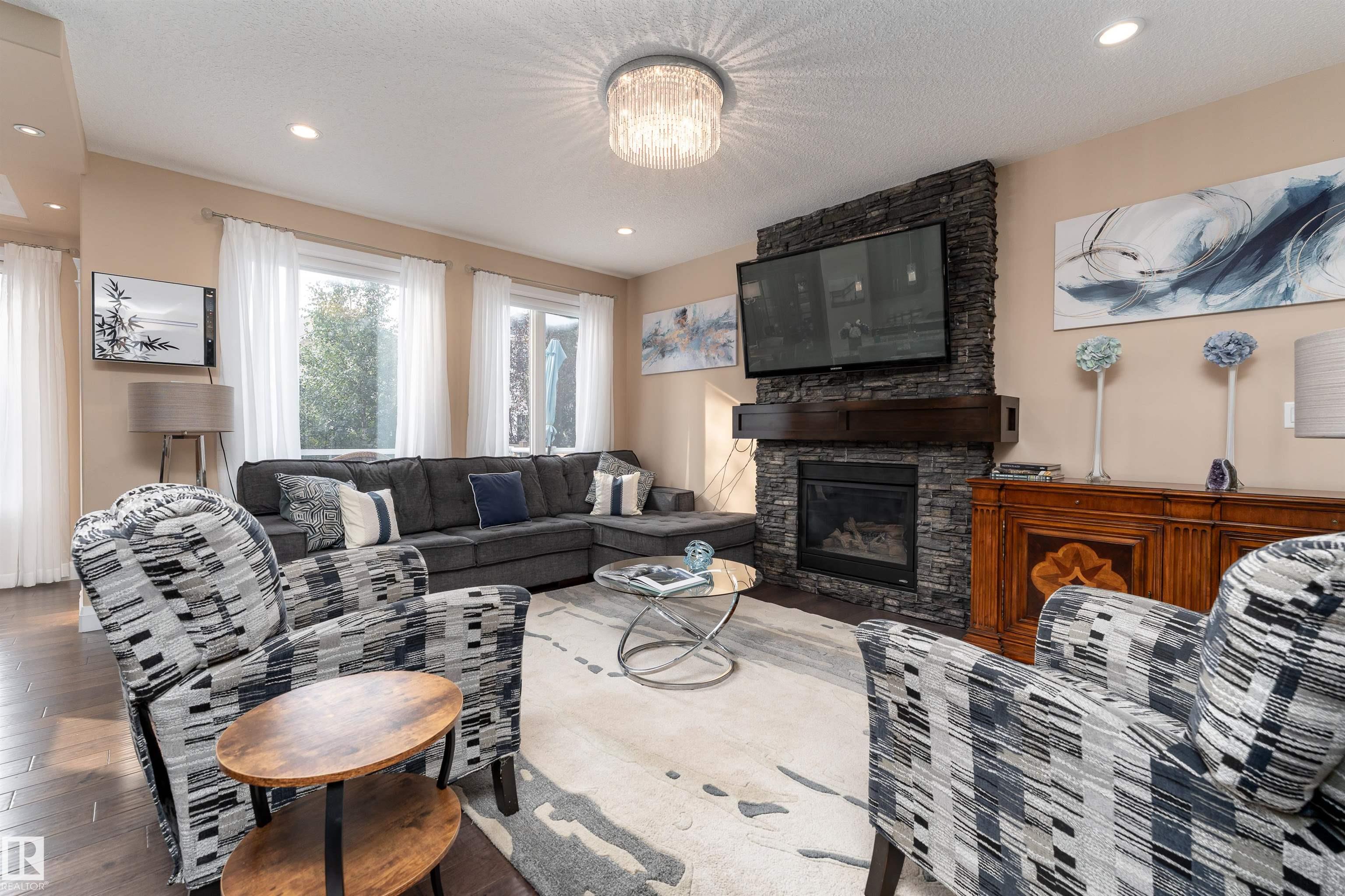 Great Cul-de-Sac location in Starling! This beautiful 2,302 sq. ft. home offers an open main floor with 9 ft. ceilings, a cozy gas fireplace in the living room, and a stylish kitchen featuring a large island with eating bar, full-height cabinets, granite counters, walk-in pantry, and stainless steel appliances. The spacious dining area opens through a garden door to the deck and extended outdoor living space. A main floor bedroom and powder room add convenience. Upstairs, enjoy a huge bonus room, a primary suite with a luxurious ensuite and walk-in closet, plus two more bedrooms, a laundry room, and a second full bath. The unfinished basement is ready for your personal touch. Additional features include air conditioning for year-round comfort. Located close to trails, green spaces, parks, playgrounds, a nearby golf course, schools, and all amenities.