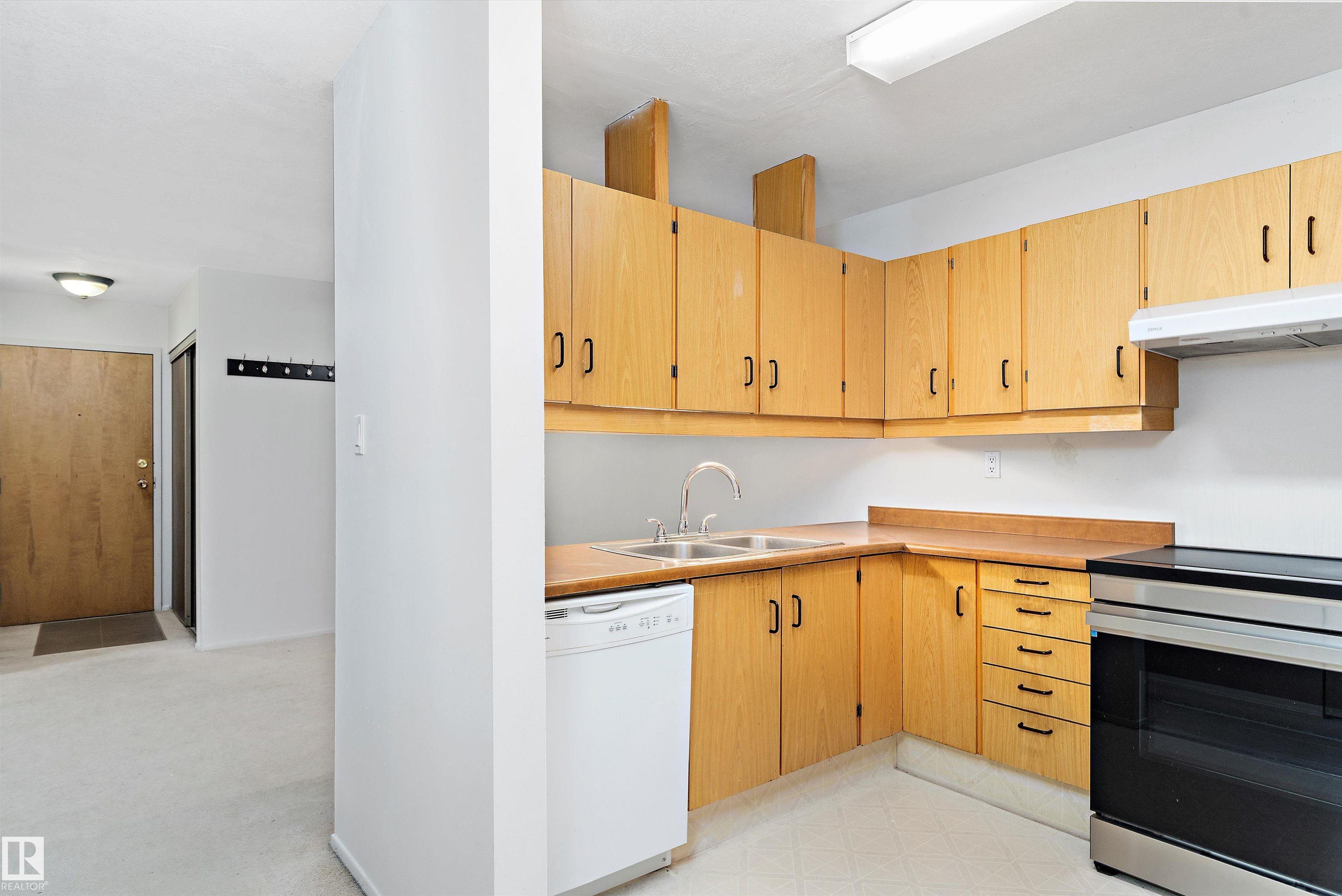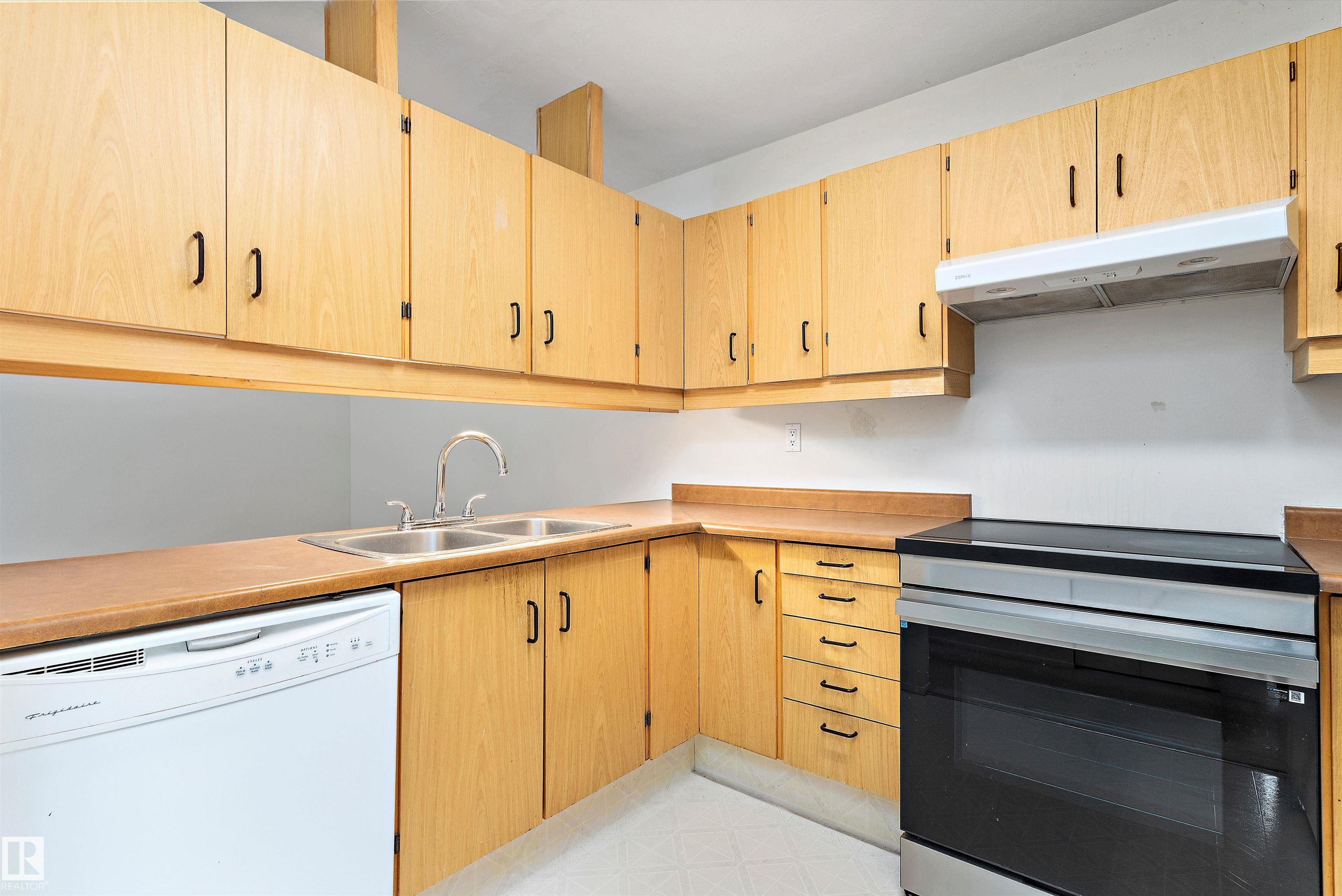 Welcome to Alpine Estates in the desirable community of Akinsdale! This bright and well-maintained ground-floor condo offers over 860 sq. ft. of comfortable living. The open-concept layout features a spacious living room with large windows that fill the space with natural light. The functional kitchen offers ample cabinet space and a convenient dining area. You’ll find two generously sized bedrooms, a full bath, and in-suite laundry for added convenience. Enjoy your morning coffee or evening sunsets on the private patio surrounded by mature trees. Condo fees include water, sewer, exterior maintenance, and more—making ownership easy and affordable. Located close to schools, parks, shopping, and public transit, this home is ideal for first-time buyers, downsizers, or investors. Move-in ready—don’t miss this fantastic opportunity in beautiful St. Albert!