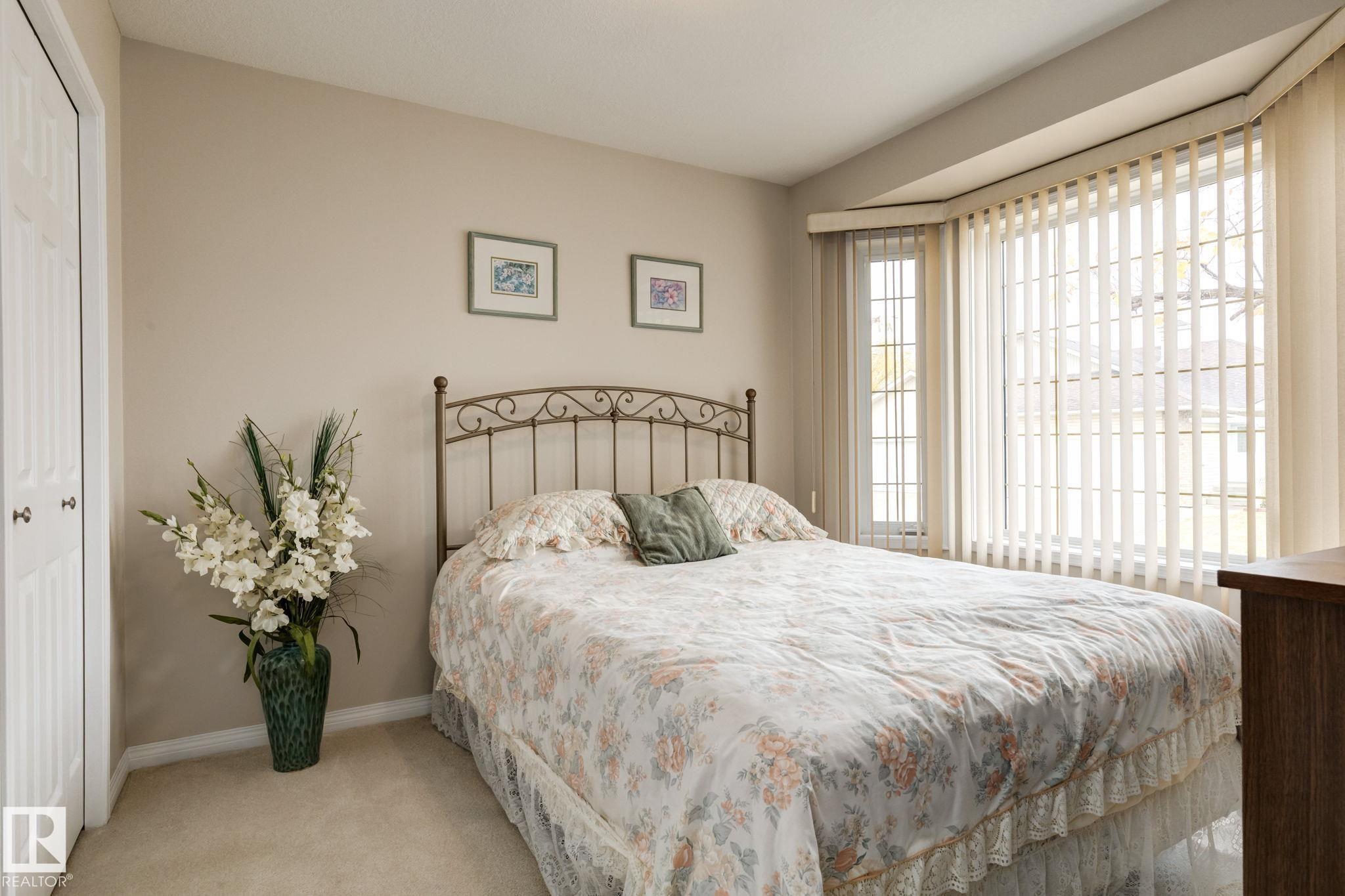 Welcome to this beautifully maintained home in a sought-after 45+ community. The spacious kitchen features crisp white cabinetry, sleek black counters, and a stylish tile backsplash. Enjoy cozy evenings by the living room fireplace or take in the natural light from the bay window. The primary suite offers a walk-in closet and private ensuite. A versatile front flex room can serve as a bedroom, dining area, or home office. Step out onto the expansive south-facing deck overlooking a serene green space with mature trees and no direct rear neighbours. The mostly finished basement includes a second fireplace, large rec area, guest bedroom, full bath, and ample storage. Double attached garage and thoughtful touches throughout make this home move-in ready.