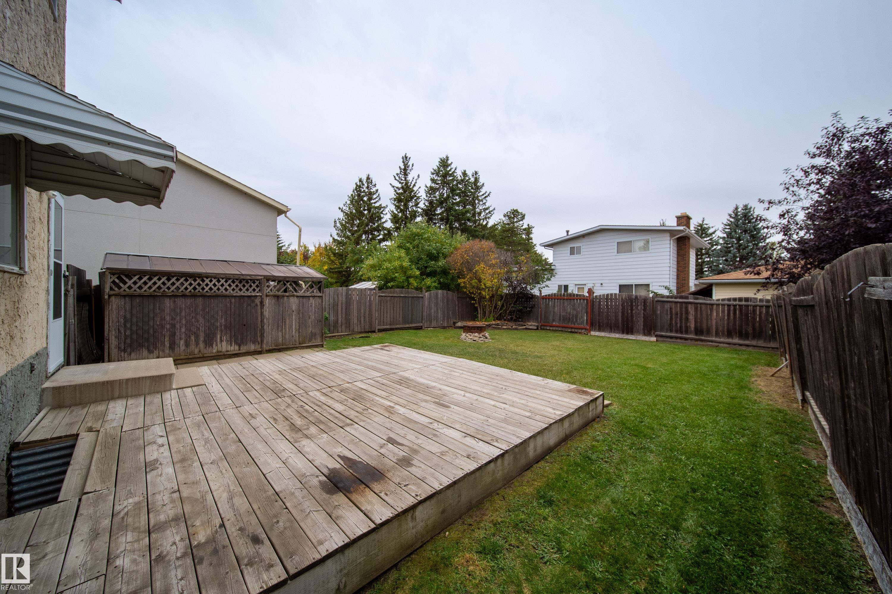 A perfect starter home or investment opportunity in the heart of Lymburn! This bright, well-kept home offers incredible value in a family-friendly west-end location, just minutes from West Edmonton Mall, parks, schools, public transit, and the YMCA. The main floor features a spacious open-concept living and dining area, perfect for family gatherings and entertaining. The refreshed kitchen shines with newer stainless steel appliances (2019+), plenty of cupboard and pantry space, and access to a large fenced backyard complete with a deck, fire pit, and storage shed. Upstairs, you’ll find three generous bedrooms, including a large primary suite with a full wall of closets. The partially finished basement offers a rec room, laundry area, rough-ins for a future bathroom, and plenty of storage. A long front driveway provides ample parking, including space for an RV. Recent updates include a new roof (2020) and a new hot water tank (2024). Affordable, functional, and move-in ready!