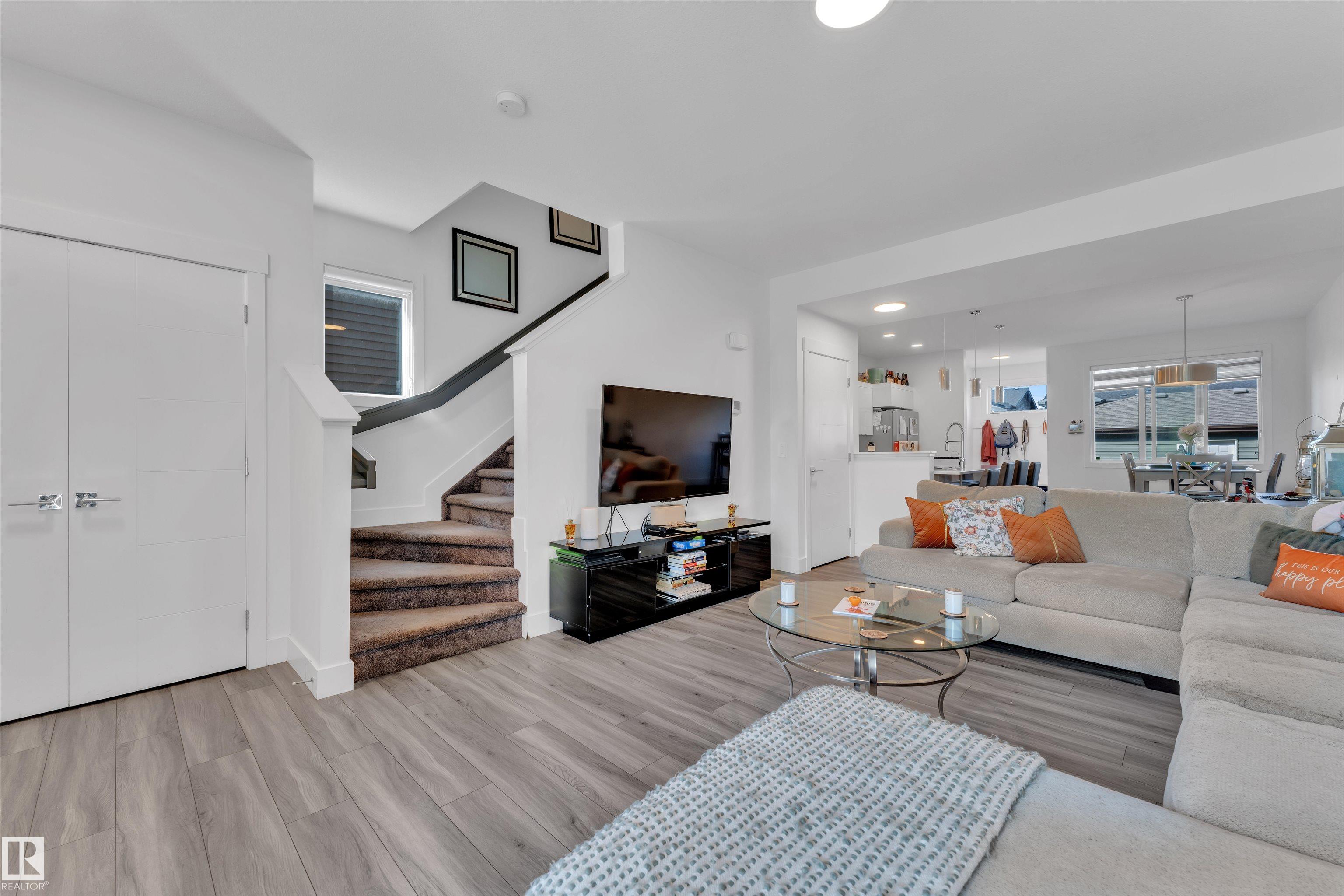 Welcome home to the vibrant community of Keswick! This upgraded 3 bedroom, 2.5 bath townhome built in 2022 offers over 1,531 sq.ft. of living space with NO CONDO FEES. The main floor features an open-concept design with a modern kitchen boasting quartz countertops, upgraded cabinets, stainless steel appliances, and a large island with seating for 4. The rear entry includes a built-in bench and coat hooks, while a SEPARATE SIDE ENTRY leads to the basement with 2 windows, ideal for future suite development. Upstairs you’ll find a spacious primary suite with walk-in closet and private ensuite, 2 additional bedrooms, a central flex room, and convenient upper-floor laundry. The basement is ready for your personal touch, with 2 WINDOWS and outside enjoy a double detached garage plus a large backyard perfect for family gatherings. Steps from parks, trails, schools, transit, and amenities, this home offers the perfect blend of style, comfort, and convenience in Keswick.