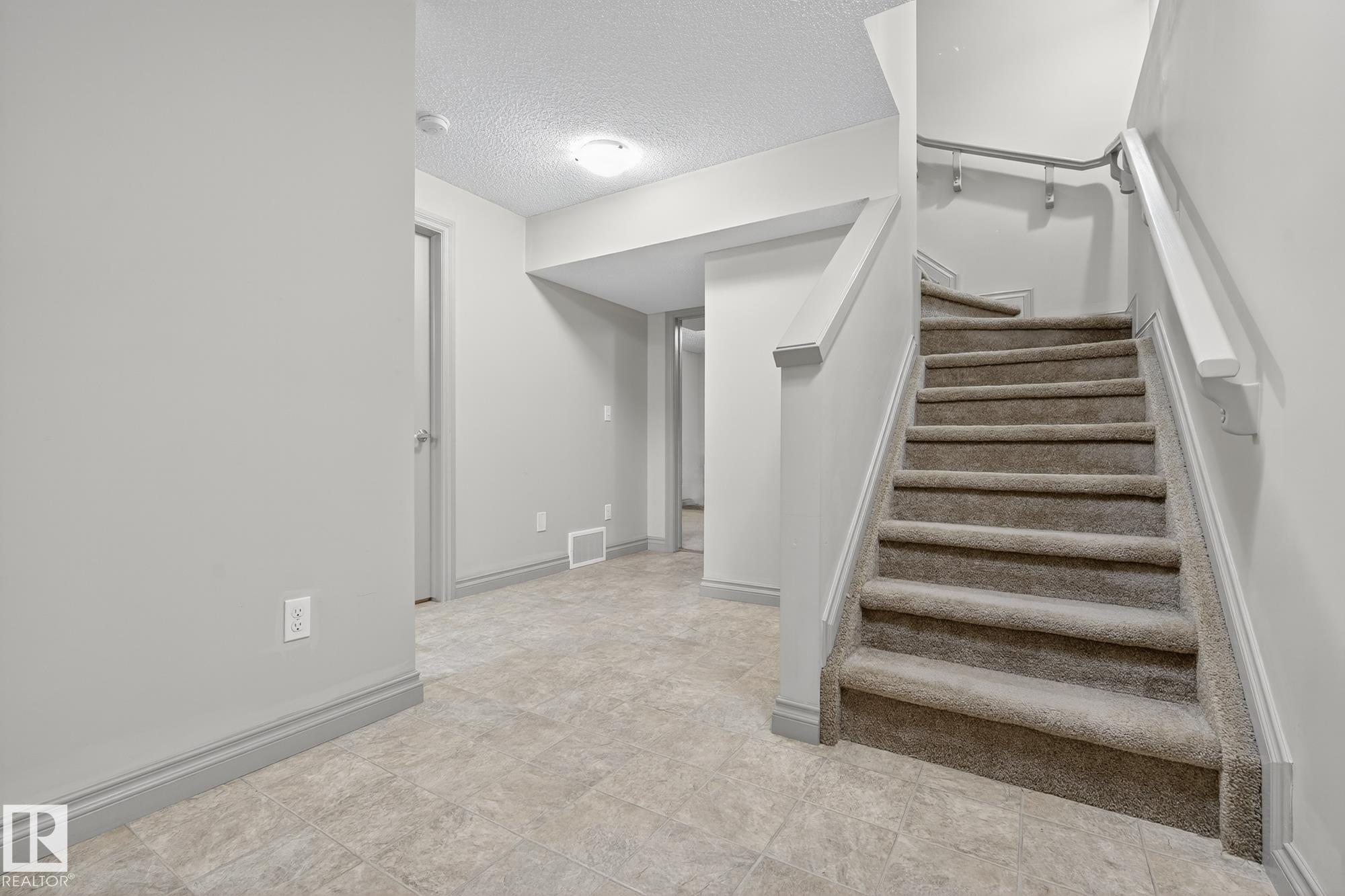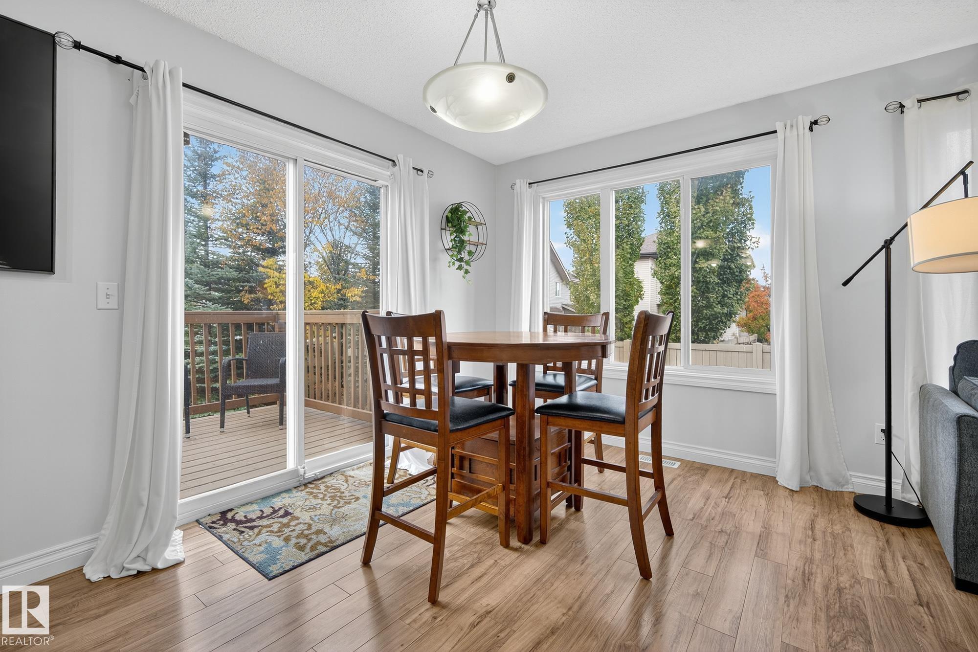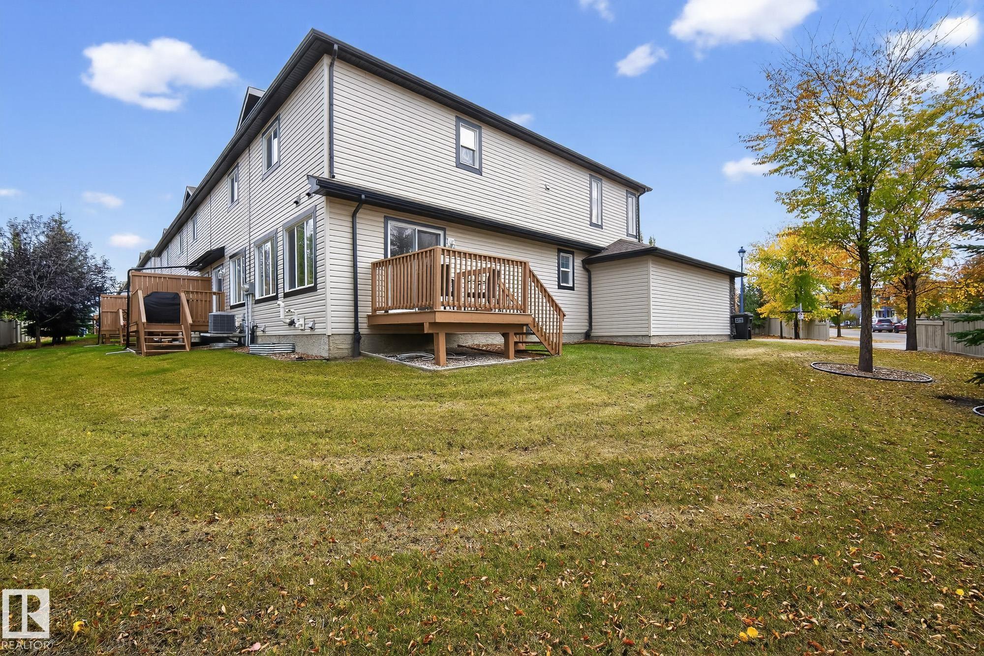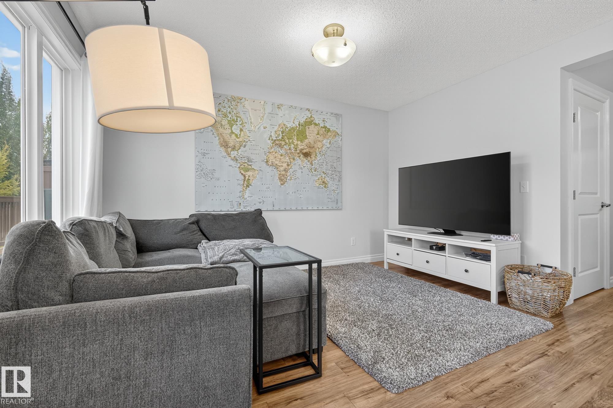 Bathed in natural light from its many side windows, this end-unit townhouse in Summerside Pointe blends comfort with low-maintenance living. The open-concept main floor feels airy and connected, featuring a modern kitchen with espresso cabinetry, a breakfast bar, and a spacious dining area that flows into the living room, perfect for relaxing or gathering with friends. Step out onto your private side deck for morning coffee or an evening unwind. Upstairs, three generous bedrooms, a full bath, and laundry keep daily life simple and organized. The finished basement extends your space with a fourth room and another full bathroom, ideal for guests or a home office. With a double attached garage, stylish design, and quick access to the Henday, schools, and shopping, this bright corner unit offers a balanced lifestyle of convenience and ease in one of Edmonton’s most welcoming communities.