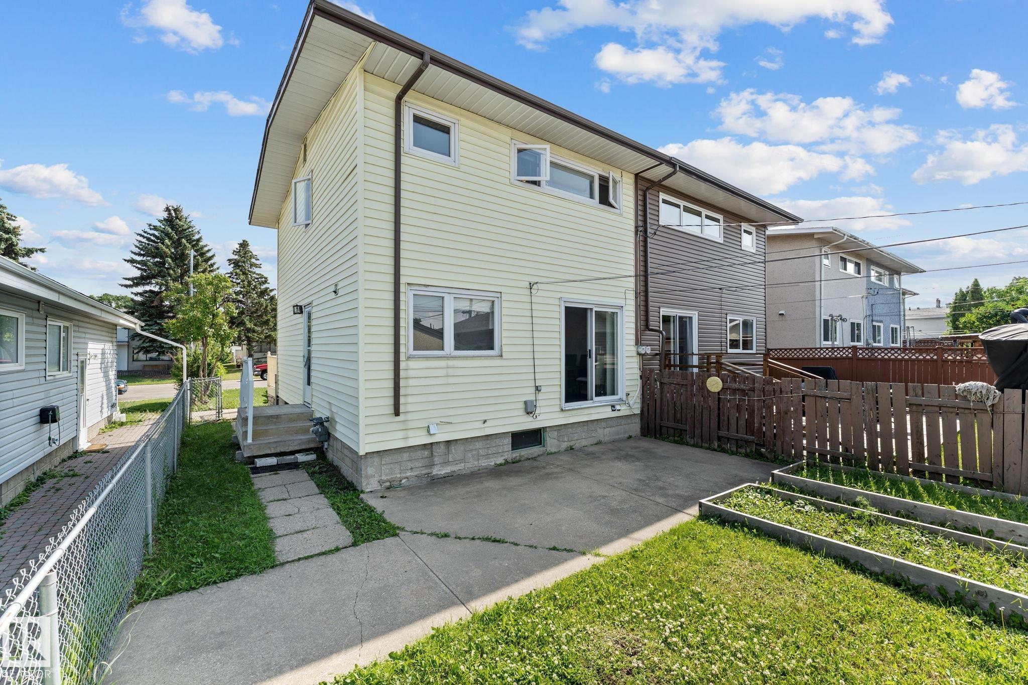 Welcome to this beautifully renovated 3-bedroom, 2-bathroom duplex located in the heart of Glengarry. Newly painted, newer appliances, newer hotter tank and lighting. Main level has a large living room private and plenty of natural light. Kitchen offers ample counter space. Make your way upstairs and find three spacious bedrooms plus a full bath. The property features a double detached garage. The home also has a separate side entrance, ideal for future suite potential. The finished basement provides large rec room, a new full bathroom, home office. Conveniently located close to public transportation, schools (elementary and high school just blocks away), and a wide range of amenities including shopping, restaurants, and more. Enjoy a short, easy commute to Downtown Edmonton, making this a great spot for working professionals and families alike.