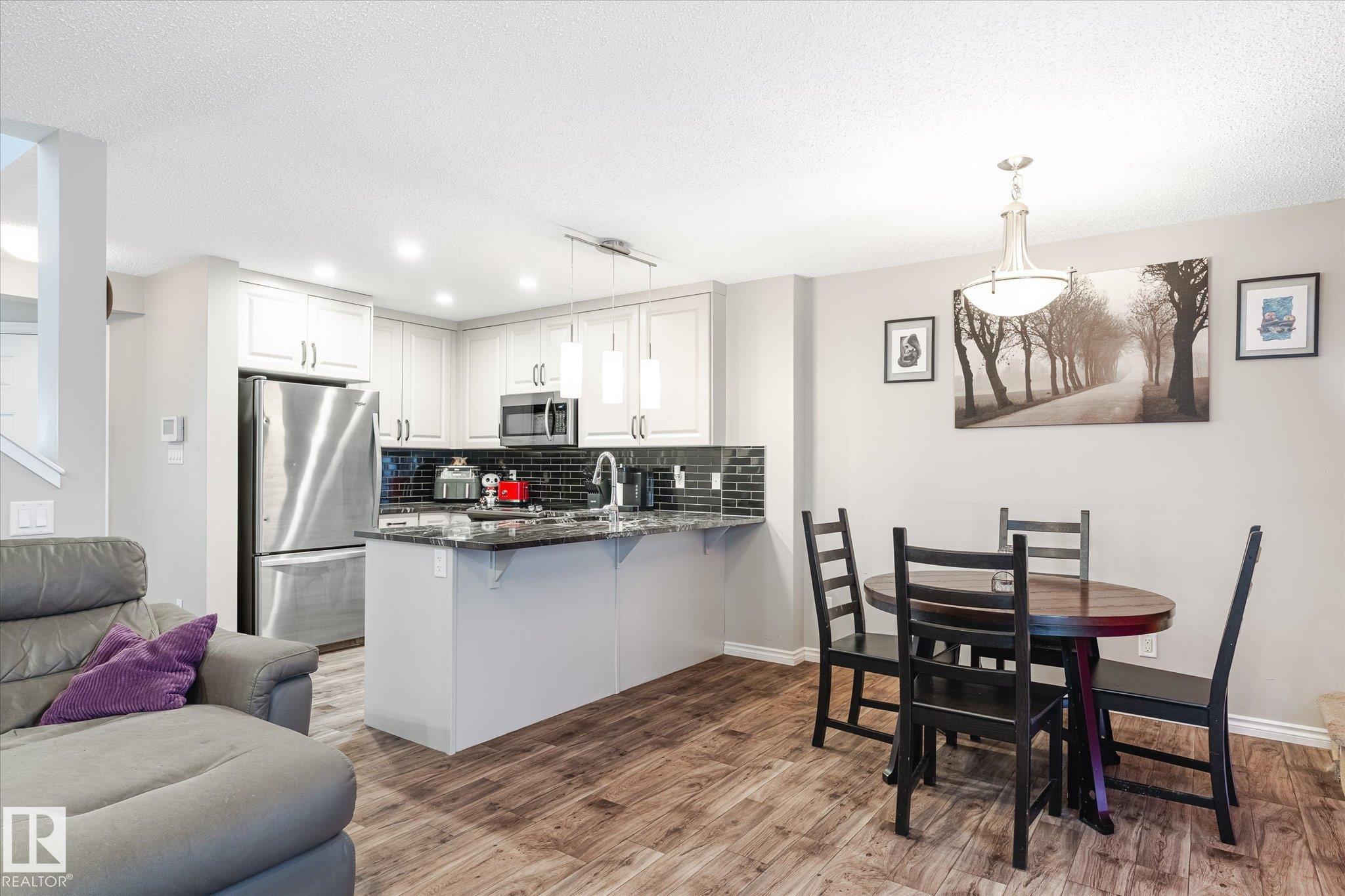This quality built half duplex features a very functional floor plan that offers 1403 sqft of living space, 2 Bedrooms, 3 bathrooms, and a single car attached garage. The feature of this home is the updated kitchen.The modern chef package includes: granite counter tops, stainless steel appliances, cabinets extended over the fridge and full height to the ceiling and an extended eating bar. The main floor also includes a living room with large windows, an eating nook just off the kitchen, and access to the oversized backyard deck with a 2 pc. bathrm conveniently located close to the foyer and garage access. You'll love retreating to the upper loft that can be a tv rm or office then the cozy master suite complete with an ensuite and a walk-in closet with an additional bedroom and another ensiute bathroom complete the upper level. All the luxury with a fenced backyard, single attached garage and a concrete single drive way. The basement is ready for completion with a rough in bathroom and one large window