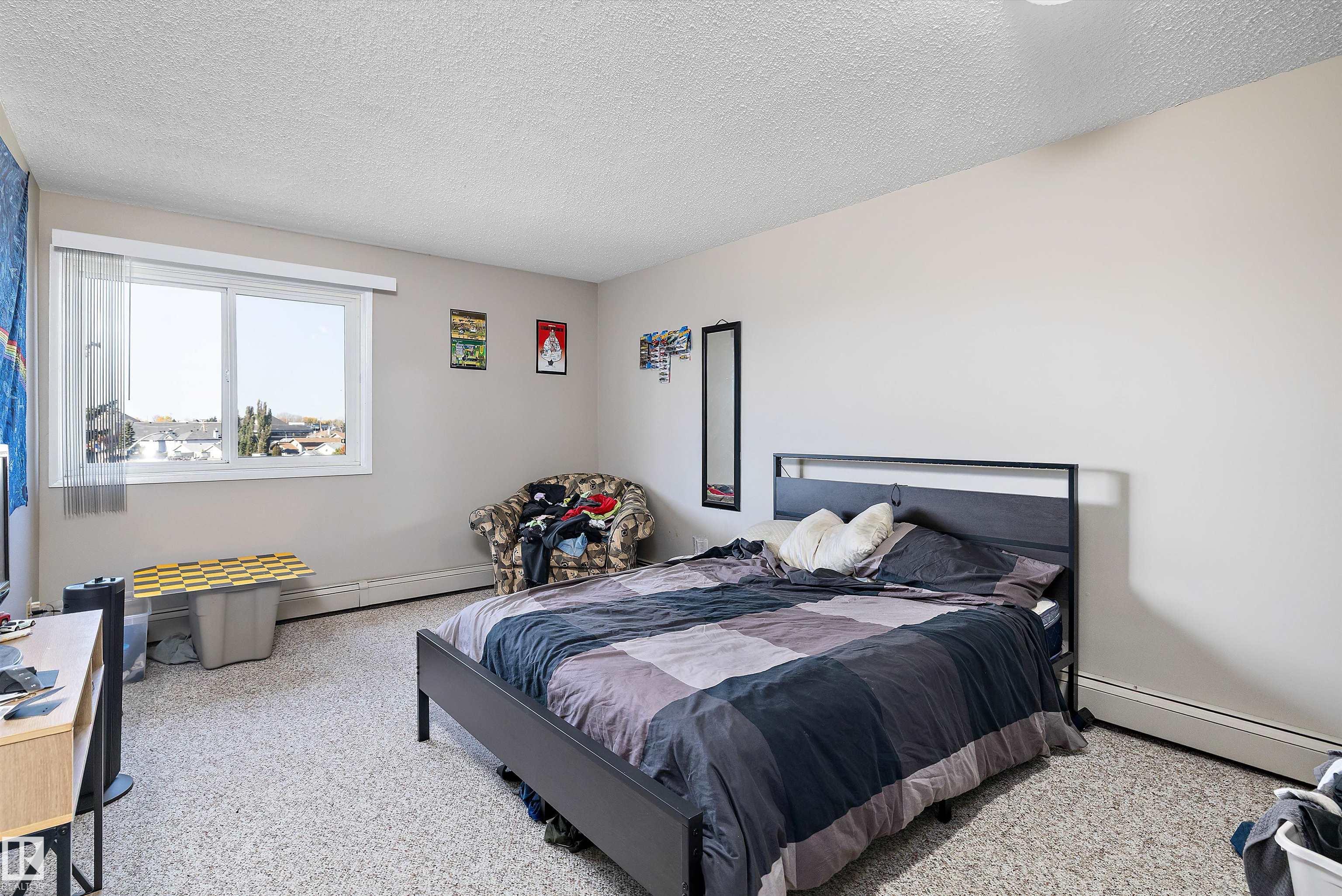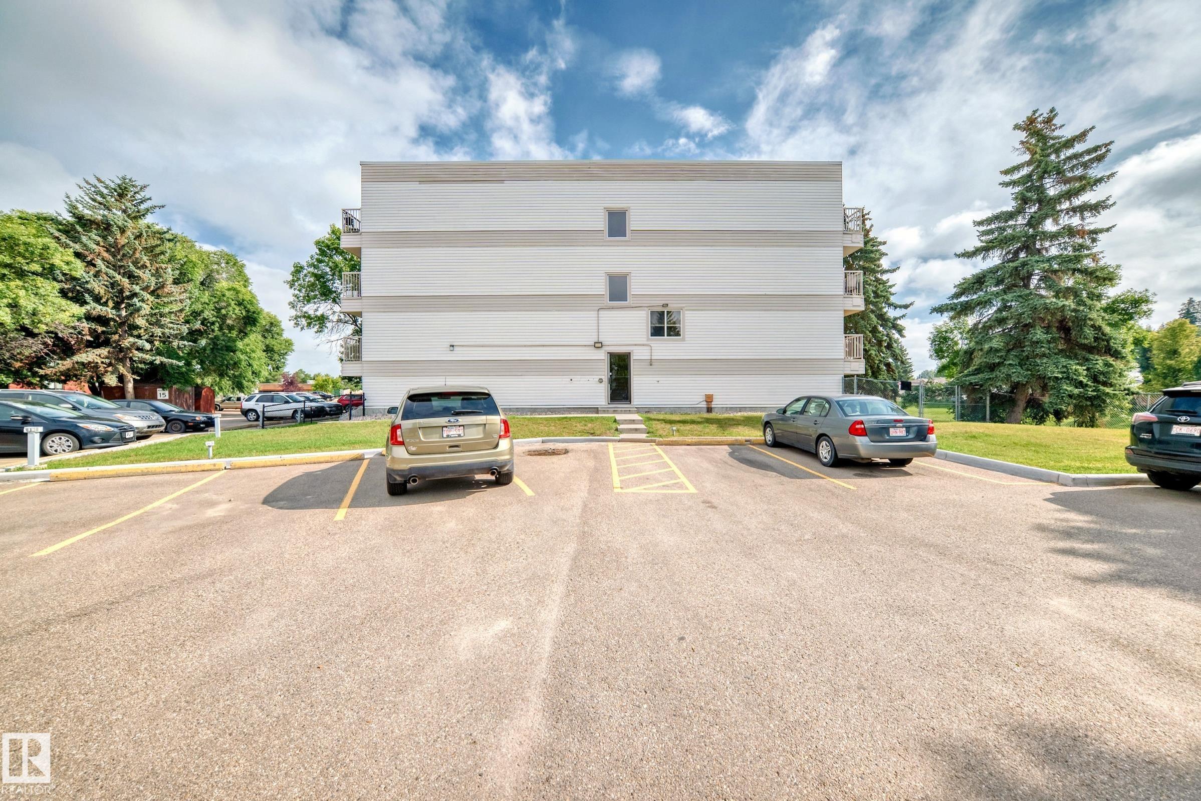 Welcome home to Meridian Pines! This updated 1-bedroom condo is a fantastic opportunity for all buyers or investors. Featuring vinyl plank flooring throughout, a large patio door and more windows makes for a bright, functional layout. The kitchen has white cabinetry, includes a dishwasher and flows into the spacious dining and living areas, perfect for relaxing or entertaining. Step out onto your west-facing balcony and enjoy peaceful views and great sunsets. The king-sized bedroom with ample closet space, a 4-piece bath and tons of in-suite storage add to the comfort. Laundry is just down the hall, and an assigned powered parking stall is included. This well-managed building offers great curb appeal in a quiet residential area, with easy access to shopping, dining, and more. A rental pool program is available, and the unit is currently tenant-occupied at $1,150/month—ideal for hands-off investors. Don’t miss this affordable and move-in-ready opportunity!