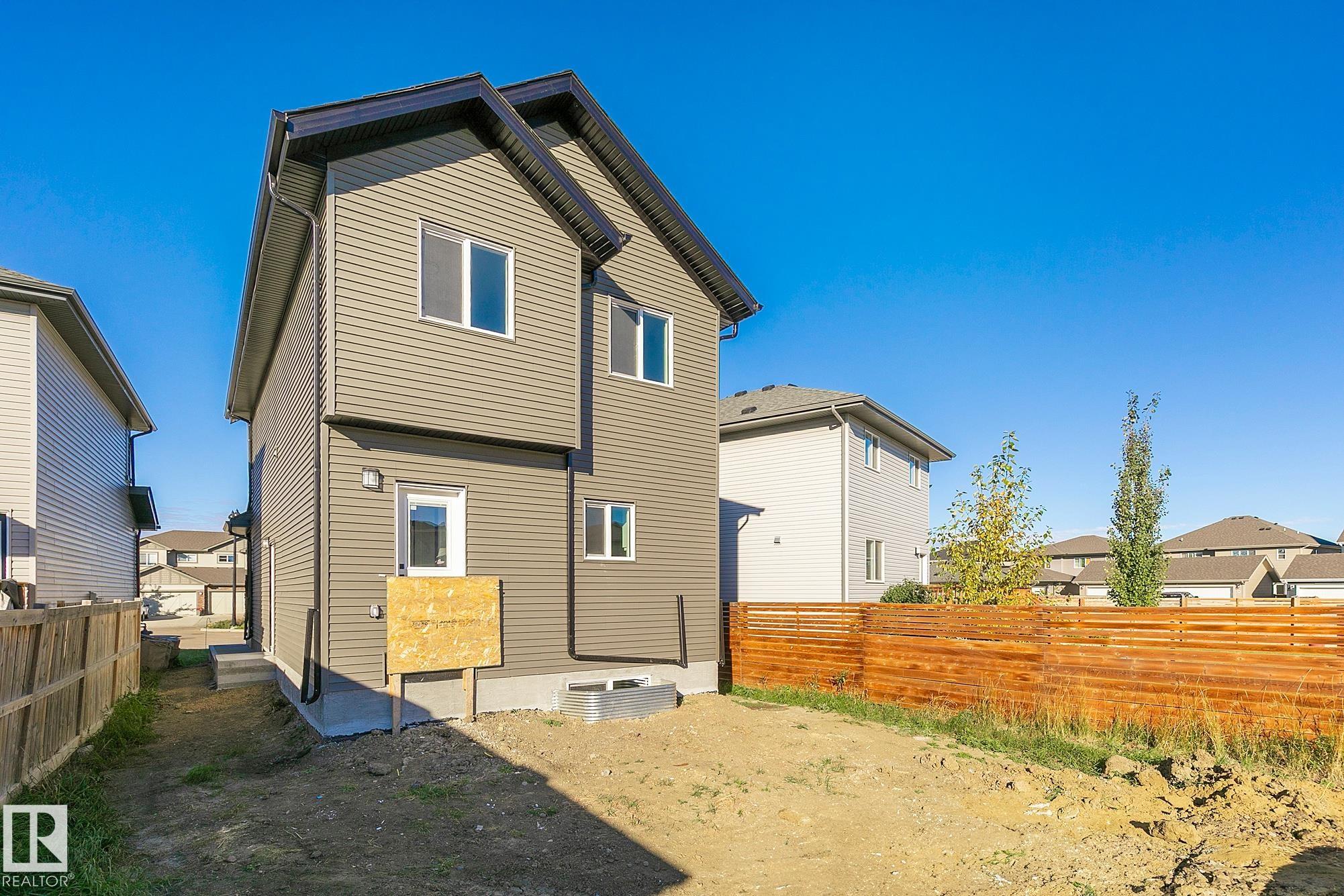 Vibrant, Versatile, Valuable! Welcome to fast growing community of Morinville! If looking for a small town feel but want to take advantage of big city amenities; this affordable &upcoming spot will not disappoint! Located fronting a pocket park on a lot with a considerable yard &ovrszd potential garage, this new home will leave you exhilarated! Lrg windows, main flr den, side entrance, versatile mudroom area with large walk in pantry/storage facilities in addition to a customized living space anchored by an upgraded fireplace! Stunning kitchen with abundance of space to add a moveable islnd or just enjoy any culinary adventure without feeling cramped! All this while still having enough room for a designated dining area! Upper level boasts upper laundry &generous primary suite with w/i closet boasting custom built ins & well appointed ensuite inclusive of dual vanities, tub & separate shower! With growing infrastructure &amenities, glorious rec centre &strong rooted community; Morinville awaits only you!