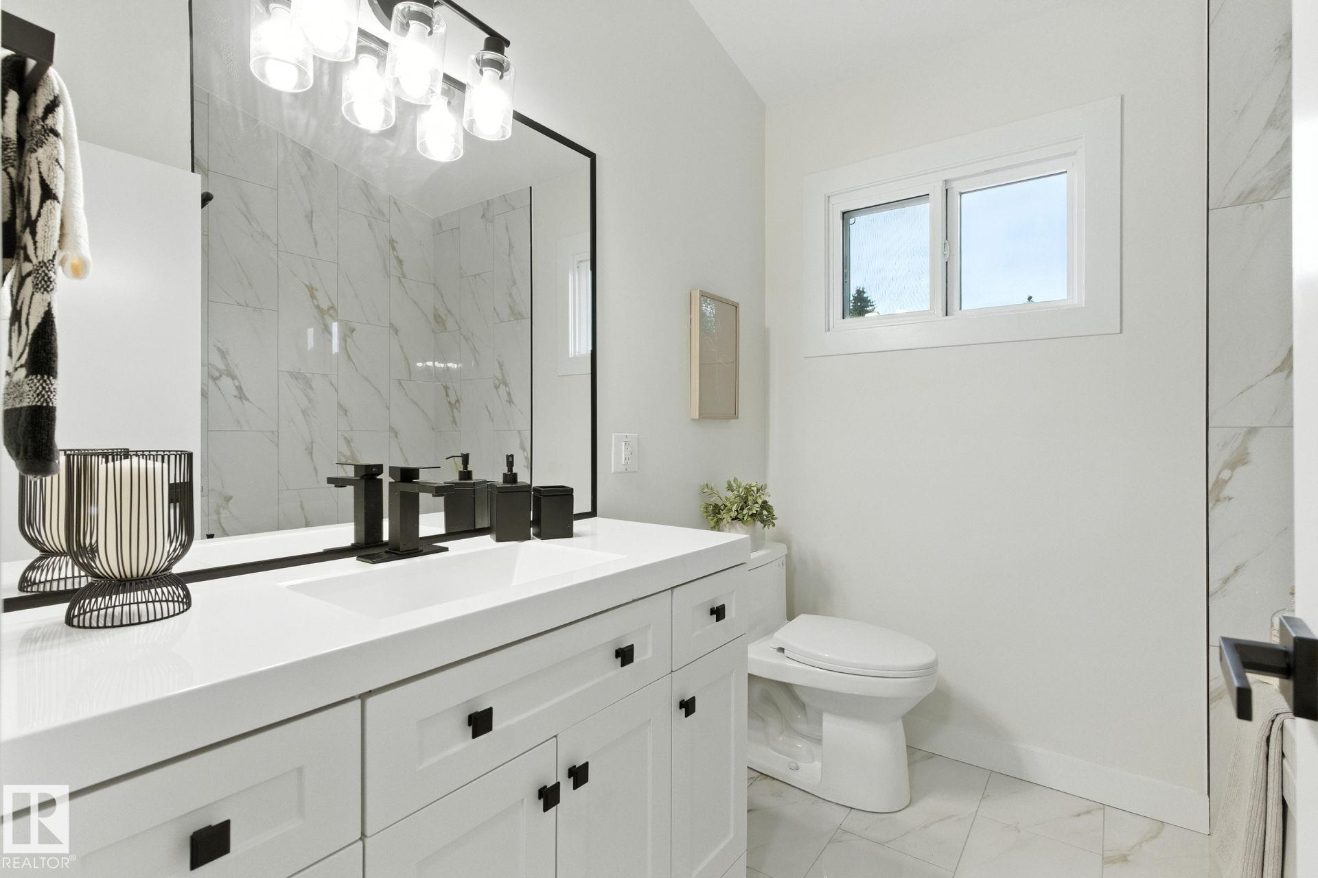 This Sturgeon Heights beauty has it all with $150,000 worth of renovations! Massive 75x110 lot, 4 beds and 2 full baths, heated oversized attached garage, and a total of 2423 square feet of living space! Cozy wood stove, incredible games room, and a showstopper backyard with firepit. Walk to all school levels, and the St. Albert Farmers' Market. Upgrades include new shingles, soffit, fascia, gutters, downspouts, vinyl windows, kitchen with quartz countertops, new appliances, fully renovated bathrooms with jacuzzi tub, basement with dry bar, vinyl plank flooring, new lighting & plumbing fixtures, rubber-paved driveway, fence, landscaping, and more! Need anything else done? We can make it happen before possession!