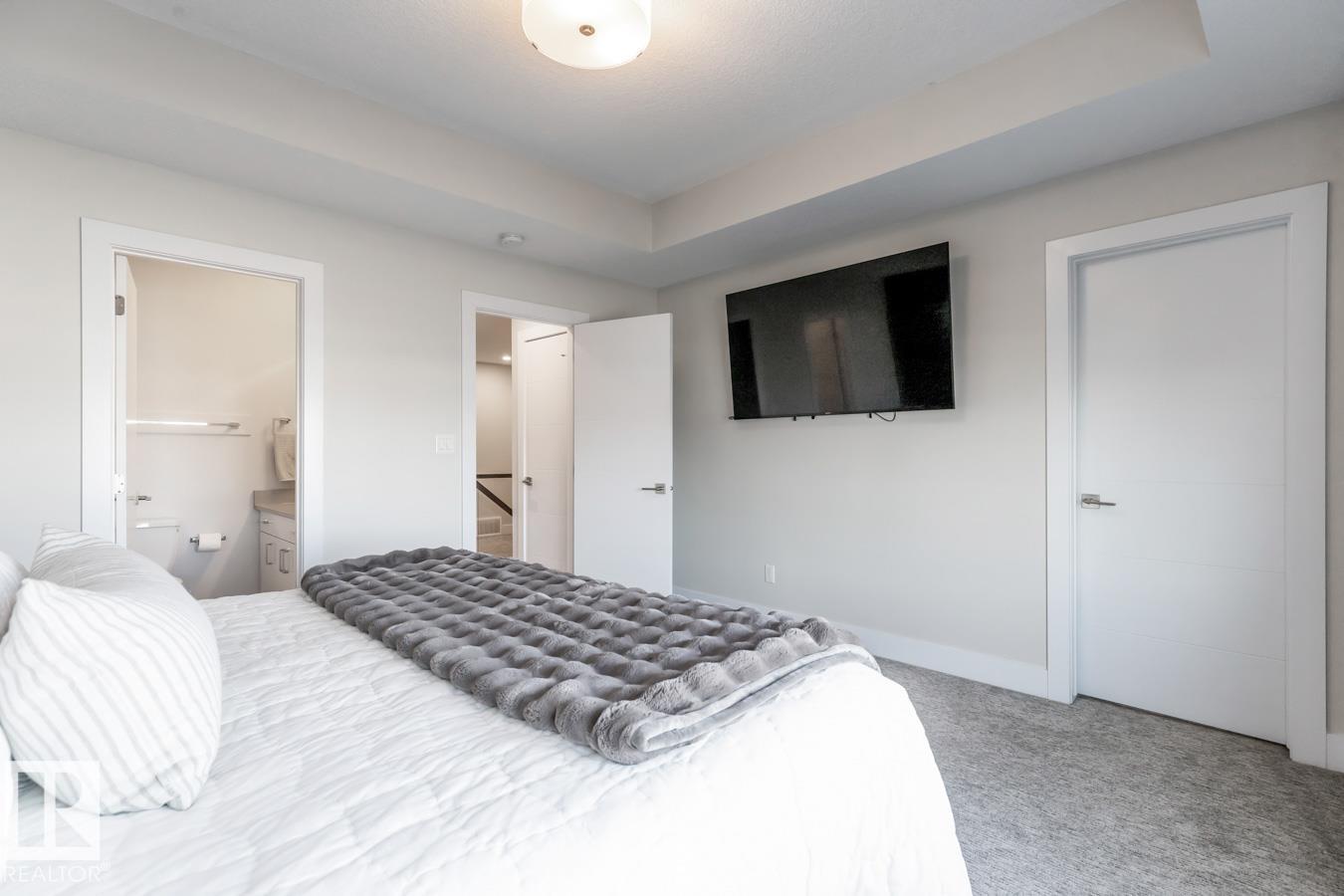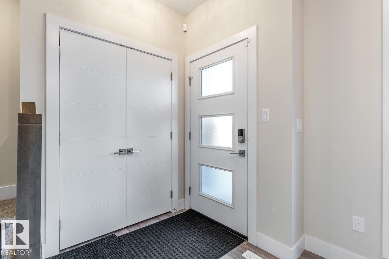 Modern and stylish 1,651 sqft home in South Fort Meadows is a must-see. “Wow” factor from the moment you walk in — open and bright with 9 ft ceilings, designer lighting, and a sleek electric fireplace that anchors the main living space. The kitchen steals the show with quartz counters, a massive 4-seat eat-up island, black stainless steel appliances, and plenty of cabinet space. Upstairs offers 3 bedrooms plus a cozy bonus area — perfect for an office set up or child's play space. The primary suite features a spacious walk-in closet and a private ensuite with a glass shower. You’ll love the extras like A/C, upper-floor laundry, custom shelving, and a fully fenced and landscaped backyard with deck and BBQ gas hookup. Complete with a double detached garage and surrounded by walking trails and nearby amenities. This home shows 10/10 — modern, move-in ready, and designed to impress!