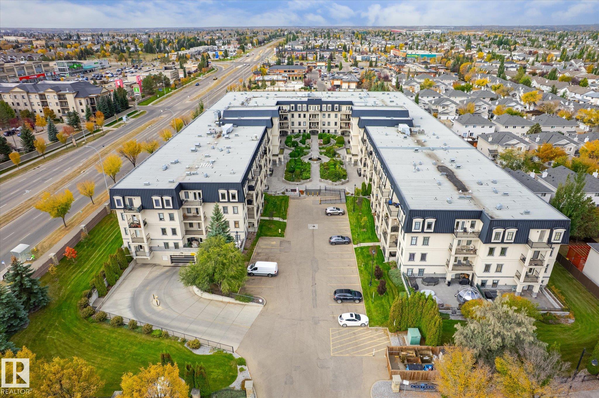 Welcome to Chateaux at Whitemud Ridge located in Edmonton's presteigous SW community of Hodgson. This 2 bedroom, 2 bathroom condo comes with 9' ceiling, 1 titled underground parking stall and a storage cage. This building has an European flare and the courtyard is nestled in the heart of the grounds and a fountain can be enjoyed. The large balcony can be accessed from both the master bedroom or living room doors, and is complete with a gas hook-up. Offering in-suite laundry, quality appliances, granite countertops, and high-end cabinets. The living room is large and open to the deck, dinette and kitchen. This quiet adult building has an age restriction of 21 years old and up, and is wonderfully equipped with amenities including gym, swirl pool, steam room, sauna, party room with barbecue area, media room, and theatre. Walking distance to ravine trails, and easy driving access to the Anthony Henday, Whitemud Drive, and the airport. Enjoy the luxury and comfort of maintenance-free living.