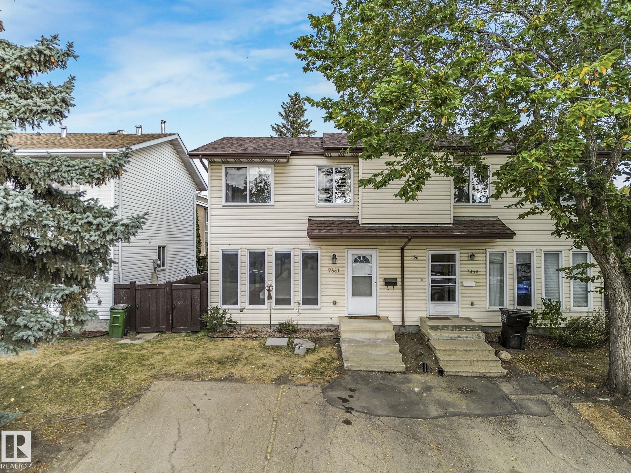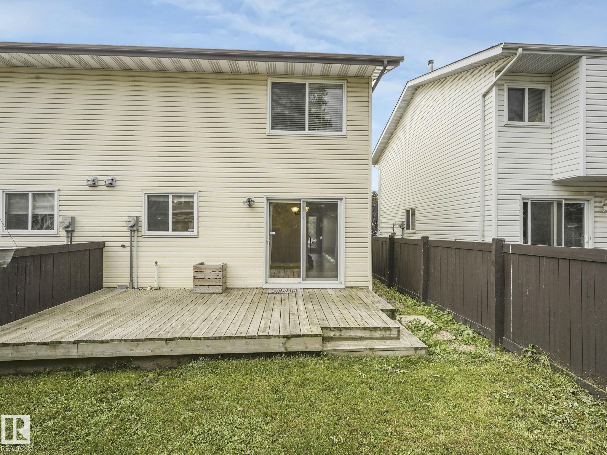 Pride of ownership shines in this well kept half-duplex, ideally located near schools, parks, shopping, transit, and the YMCA. The bright main floor features large windows, a spacious living area, and an functional kitchen with newer dishwasher, fridge and pantry. The dining area opens to a large deck in your private backyard, perfect for summer BBQs. Upstairs offers a generous primary bedroom with walk-in closet, two additional bedrooms, upper-level laundry, and fully renovated 4-piece bath. The finished basement adds a family room with built-in bookcases, a fourth flex room, and smart storage. Recent updates include HE furnace (2012), deck and shed (2013). With two parking stalls at the front door and visitor parking nearby, this home blends comfort, convenience, and value.