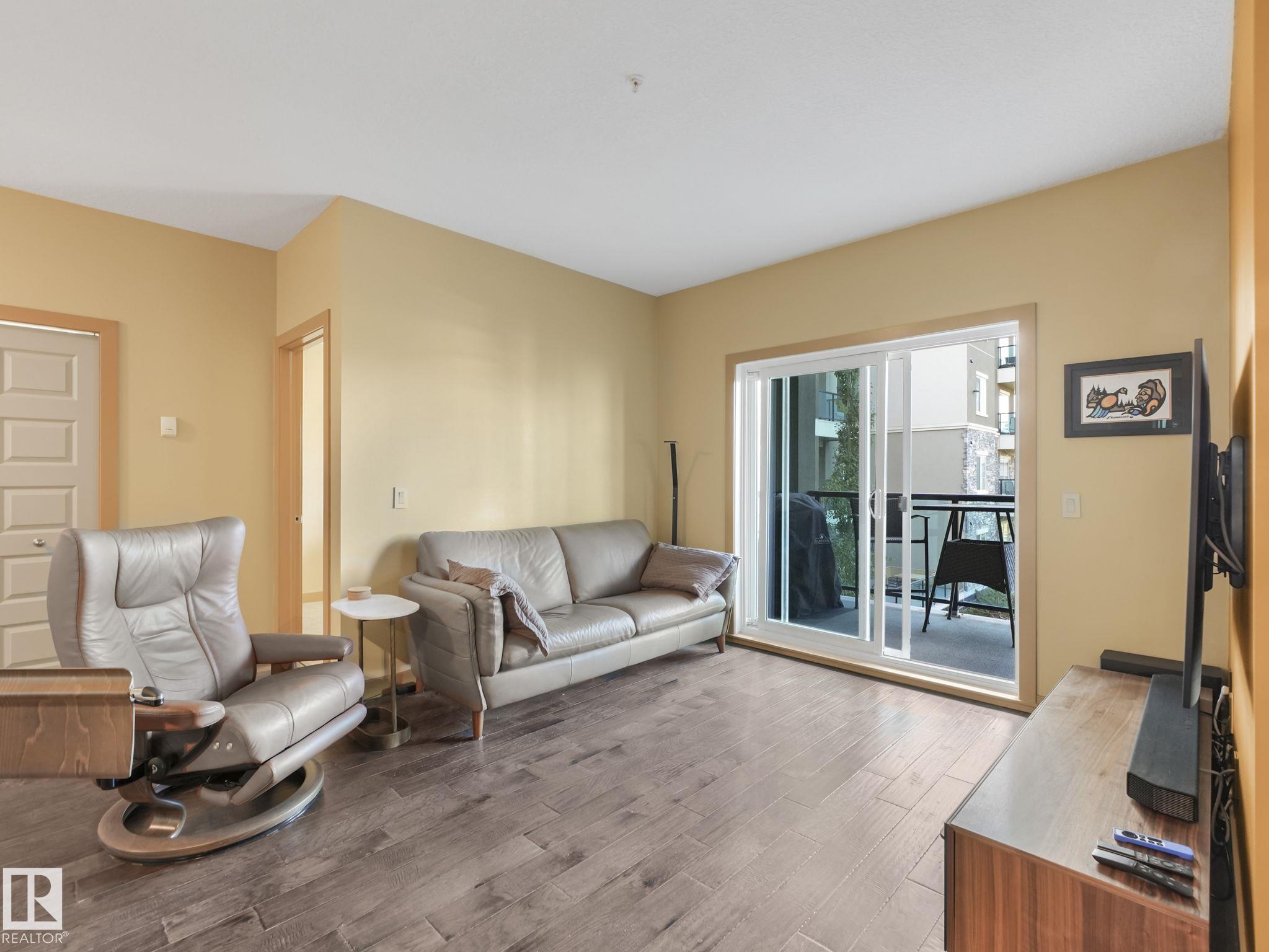 Super Stylish & Updated 2 bdrm, 2 bath condo in very desirable Windemere Waters condo! Nothing to do but move in and enjoy! Feel confident living in this Steel & Concrete Bldg! Features Open Concept with dark wood kitchen with Granite Countertops, Stainless Steel appls. Hardwood Floor in Living rm & Hall! Master Bdrm is spacious & features a walk through closet with organizers & 3 pce ensuite. 2nd bdrm & full 4 pce bath. Great for sharing! Both baths feature granite countertops. Laundry & storage rm completes unit. Upgrades include Fridge, with ice & water & Stove (2021), Microwave Hood fan (2022), Washer & Dryer (2023), Dishwasher (2023). New paint throughout, New Carpet, New cork floor (2021).This unit is perfectly located facing west with lovely view of courtyard, pond & fountain. Watch sunsets from cozy balcony! Tuck your car in to heated underground parking with storage! Steps to shopping, walking paths, bus route. Immaculate Bright unit with large West Windows! Enjoy Carefree Living!