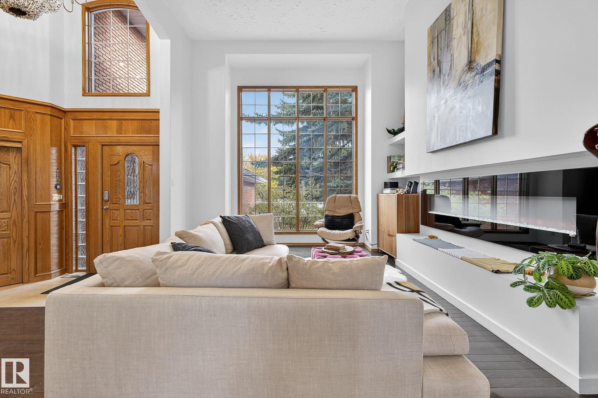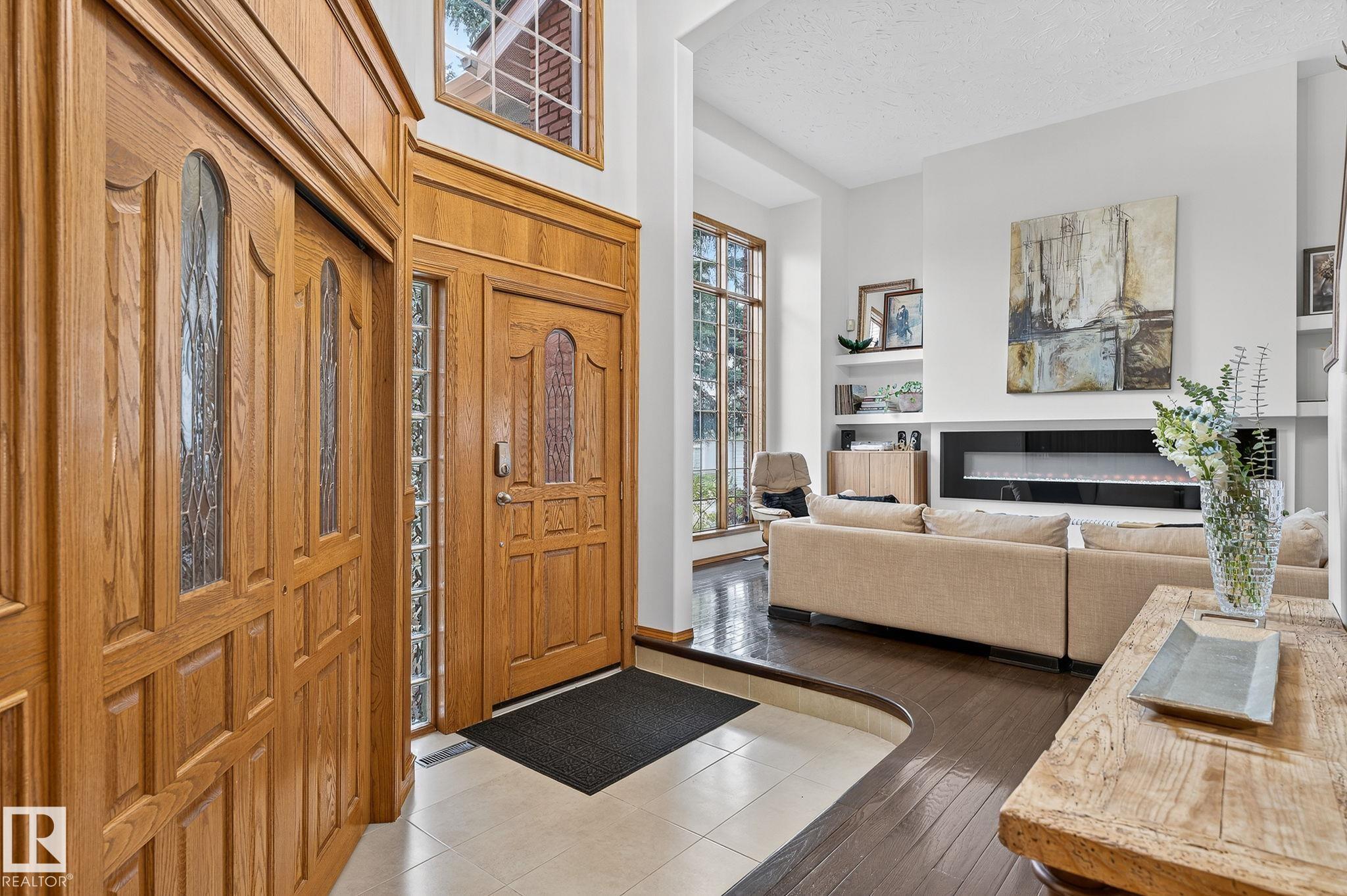 Welcome to Prestigious Wedgewood Heights! This executive 4+2 bedroom home blends timeless elegance with modern upgrades in one of West Edmonton’s most sought-after communities. Soaring vaulted ceilings, custom oak wainscotting, and open-to-above living create a grand first impression. The chef’s kitchen features ultra high-end appliances, quartz island, and flows seamlessly to the cozy family room with fireplace—perfect for entertaining. Upstairs, the primary suite offers a spa-inspired ensuite and dual walk-in closets. The fully finished basement includes a home theatre, games area, two bedrooms, and full bath. Outside, the west-facing backyard is an entertainer’s dream—covered patio with built-in BBQ, stone fireplace, raised garden beds, and play area. Enjoy a quiet crescent backing a lighted walkway, close to parks, trails, and racquet courts. With newer A/C, upgrades, heated Triple garage, this move-in ready home is a rare find in Wedgewood!