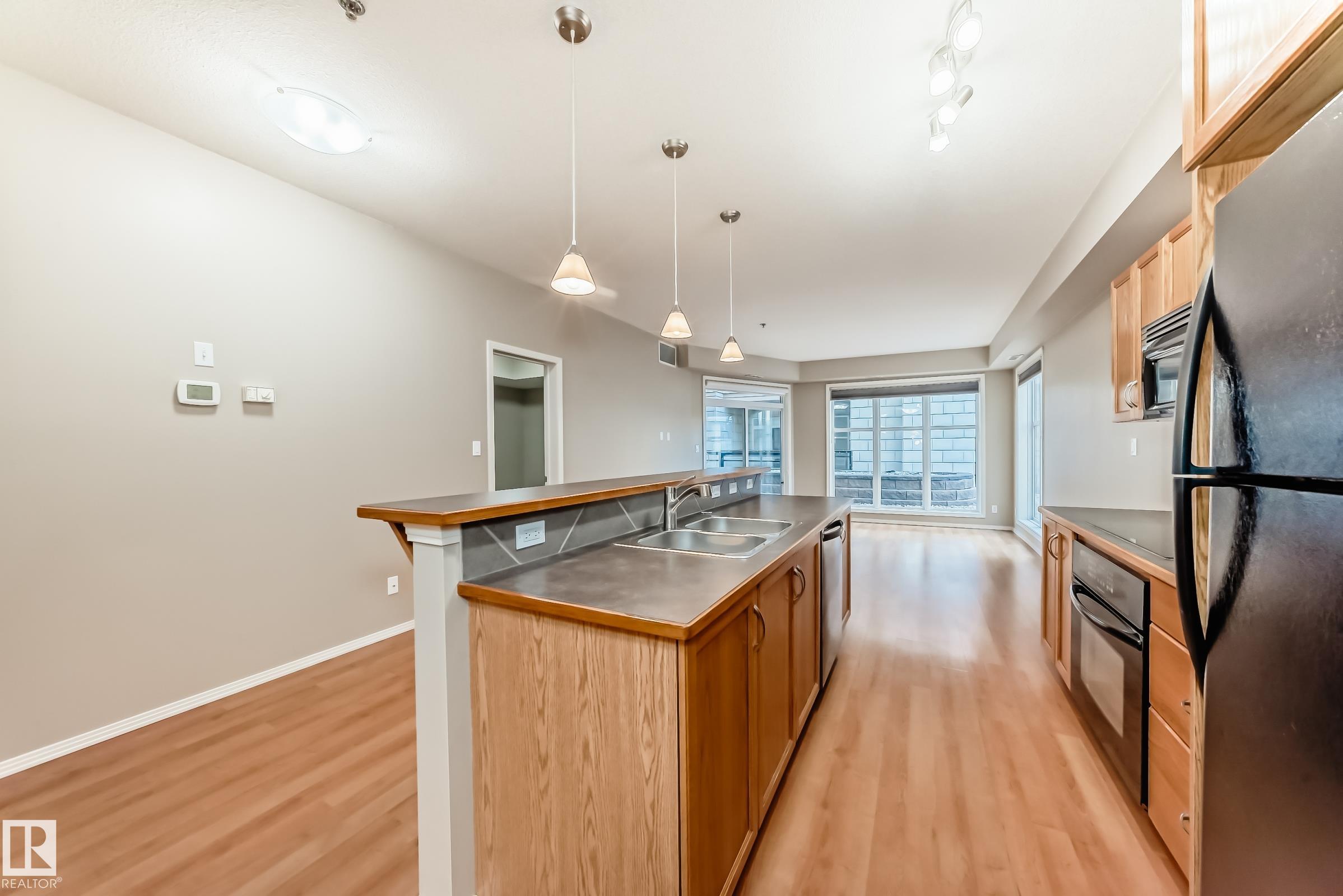 Gorgeous, Stylish, Modern, Move in Ready - End Corner Unit in Southview Court !! Titled Underground Heated Parking w storage locker is perfection. Must View Amazing Design, Very Spacious Open Concept, abundance of natural light, very large windows corner unit features 2 full washrooms, large primary bedroom w super ensuite, separate den, flex, or 2nd bdrm opt. Nook & formal eating areas flow seemlessly from a Fabulous Kitchen w work eating island. High celings, upgraded appliances, newer stove top, dishwasher, garburator, window coverings, new carpets 2025, updated painting, very clean, quick possession is moving exciting. The Perfect Covered Patio from the great room area has concrete floor, glass railings, timeless Stucco, Tile Stone ext and is truly best with built in gas line for bar be que heaven year round. The Covered Patio is surrounded by landscape block flower bed gardens providing character, ambience. Walk to all amenties, services, Italian Store. Ideal South Location, QUALITY LIVING HERE !!!