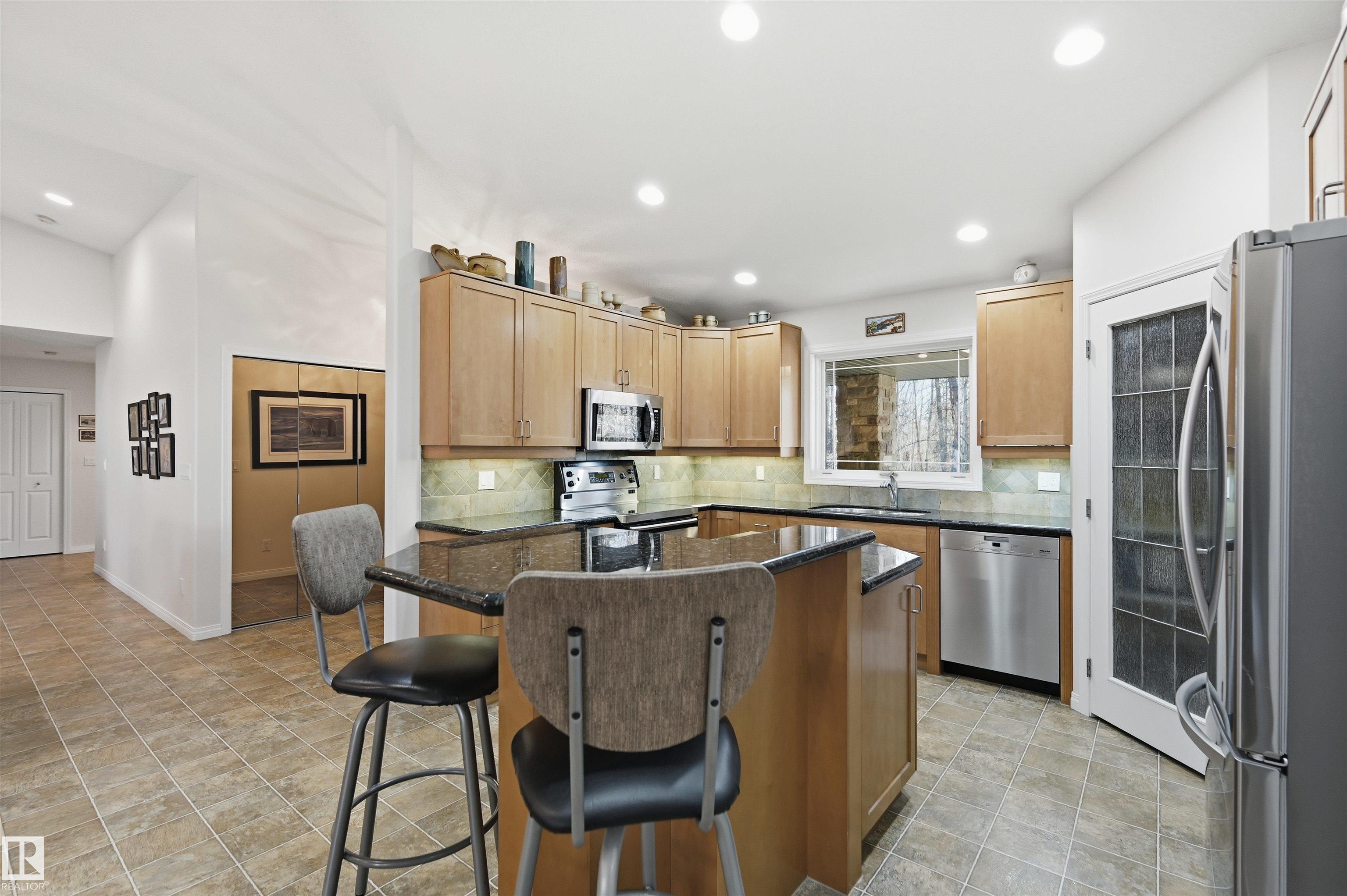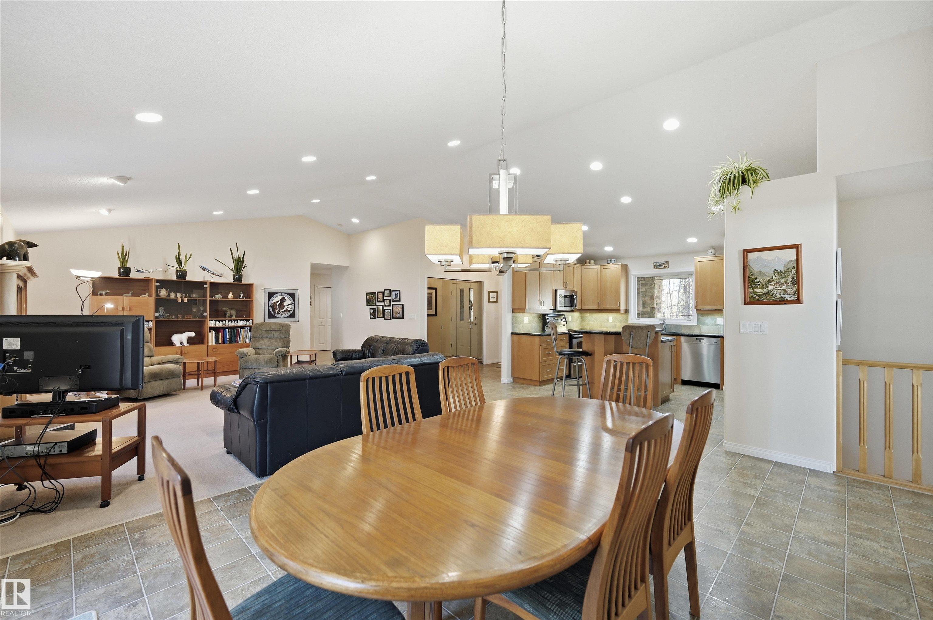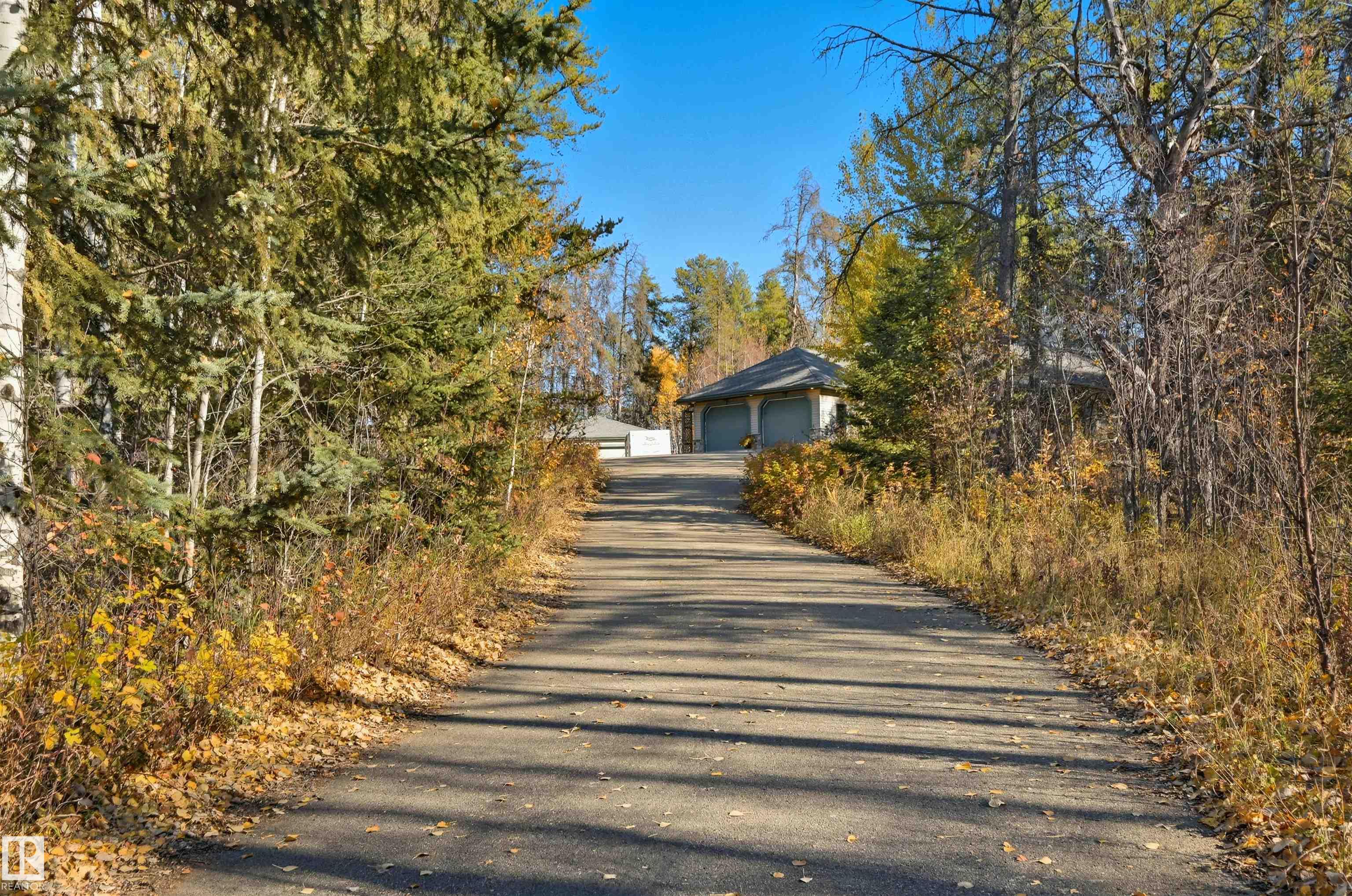 Nestled on 3 acres of complete privacy just minutes from Devon and only 10 minutes to Edmonton, this 2,185 sq ft bungalow offers the perfect blend of space, comfort, and seclusion. A welcoming foyer opens to a massive living room with a cozy wood f/place, a bright dining area, and a granite-clad U-shaped kitchen with newer stainless appliances, loads of cabinet space, and a functional layout perfect for family meals or entertaining. The main floor also features a spacious primary retreat with walk-in closet and 4-pc ensuite, two additional bedrooms, a full bath, den overlooking the yard, 2-pc bath, and a huge laundry room with extra storage. The fully finished basement is designed for fun and relaxation with a home theatre/rec room, games room with fireplace, 2 oversized bedrooms, and another 4-pc bath. Outside, enjoy your own private oasis with a large deck stunning mature trees, room for kids to play, no neighbours in sight, and an oversized double detached garage—ideal for a shop, vehicles, or storage.
