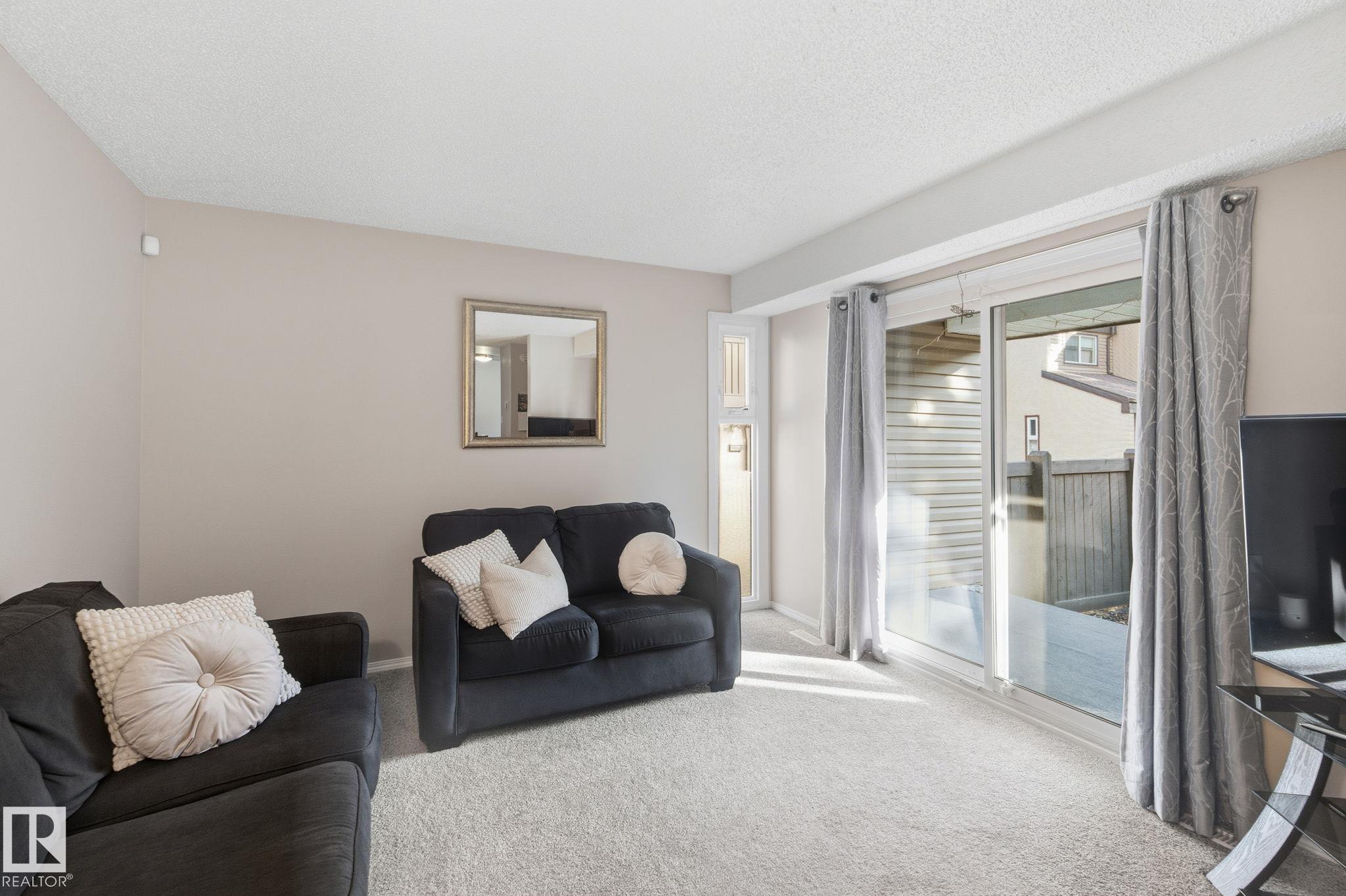 IMPECCABLY MAINTAINED 3-BEDROOM, 1000 SQ. FT. TOWNHOUSE IN WILLOWBRIDGE, near Jamie Platz YMCA and within walking distance to shops, grocery store, farmers market and transit. Features include laminate flooring on the eat in kitchen, carpet the rest of the main floor, upstairs and in the basement, newer windows, exterior doors, fences, and shingles. The bright kitchen has ample cabinets, the living room opens to a patio and fenced yard. Upstairs offers a spacious primary suite with large closet, two additional bedrooms, and a updated 4-piece bath. There’s also a 2-piece bathroom off the kitchen. The finished basement includes a rec room, den/storage, and laundry. Enjoy the south-facing deck and convenient energized parking. Close to West Edmonton Mall, schools, and Whitemud.
