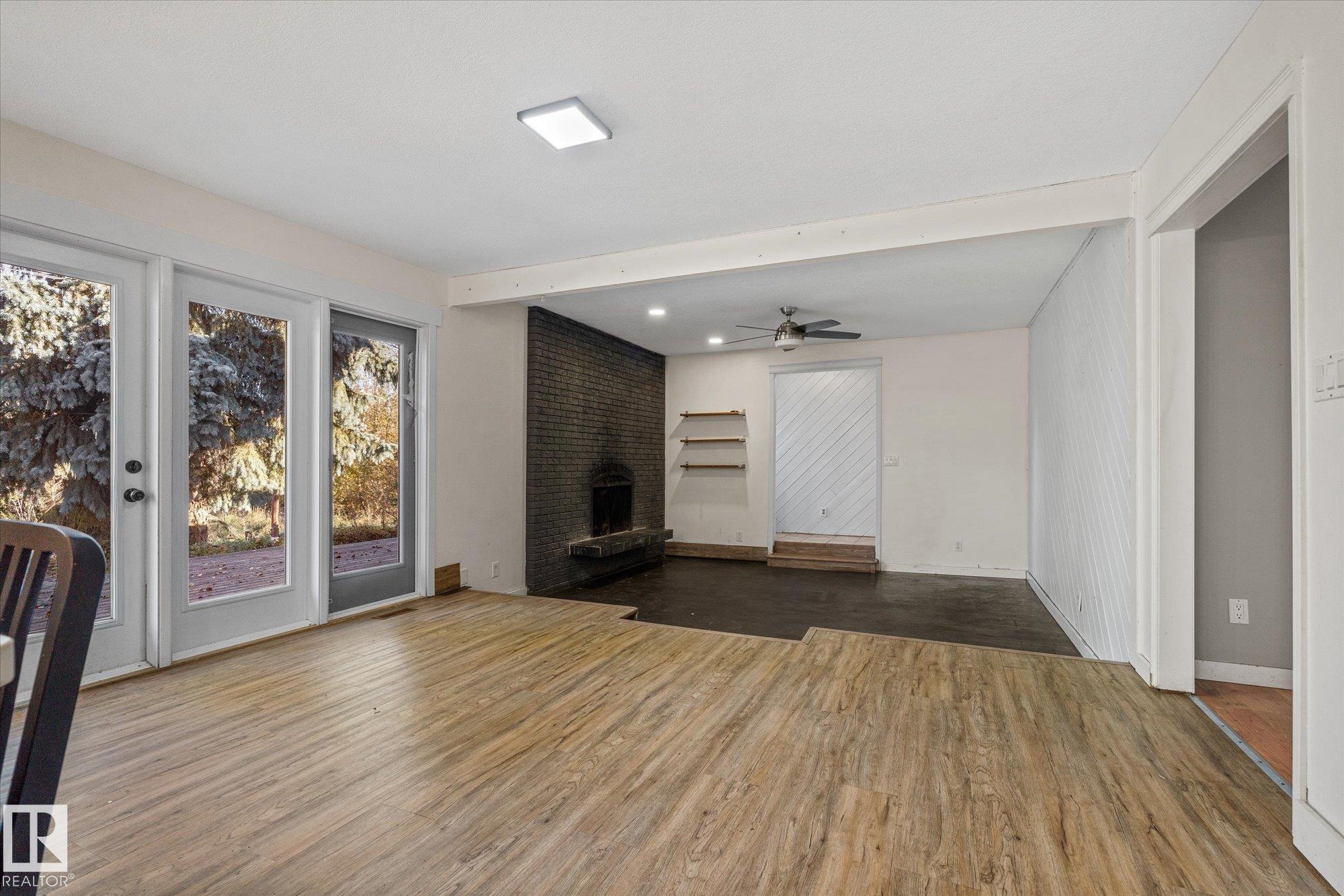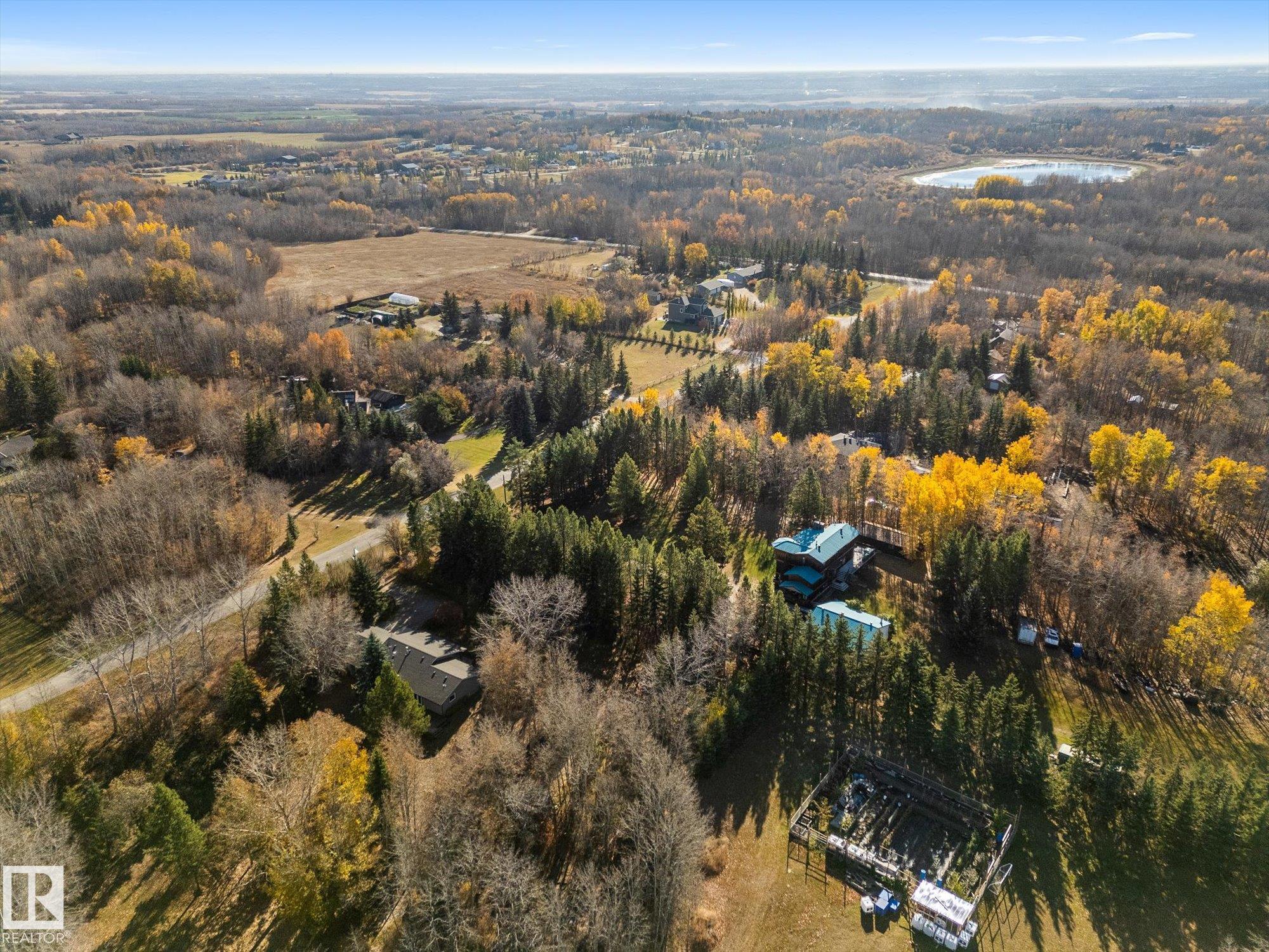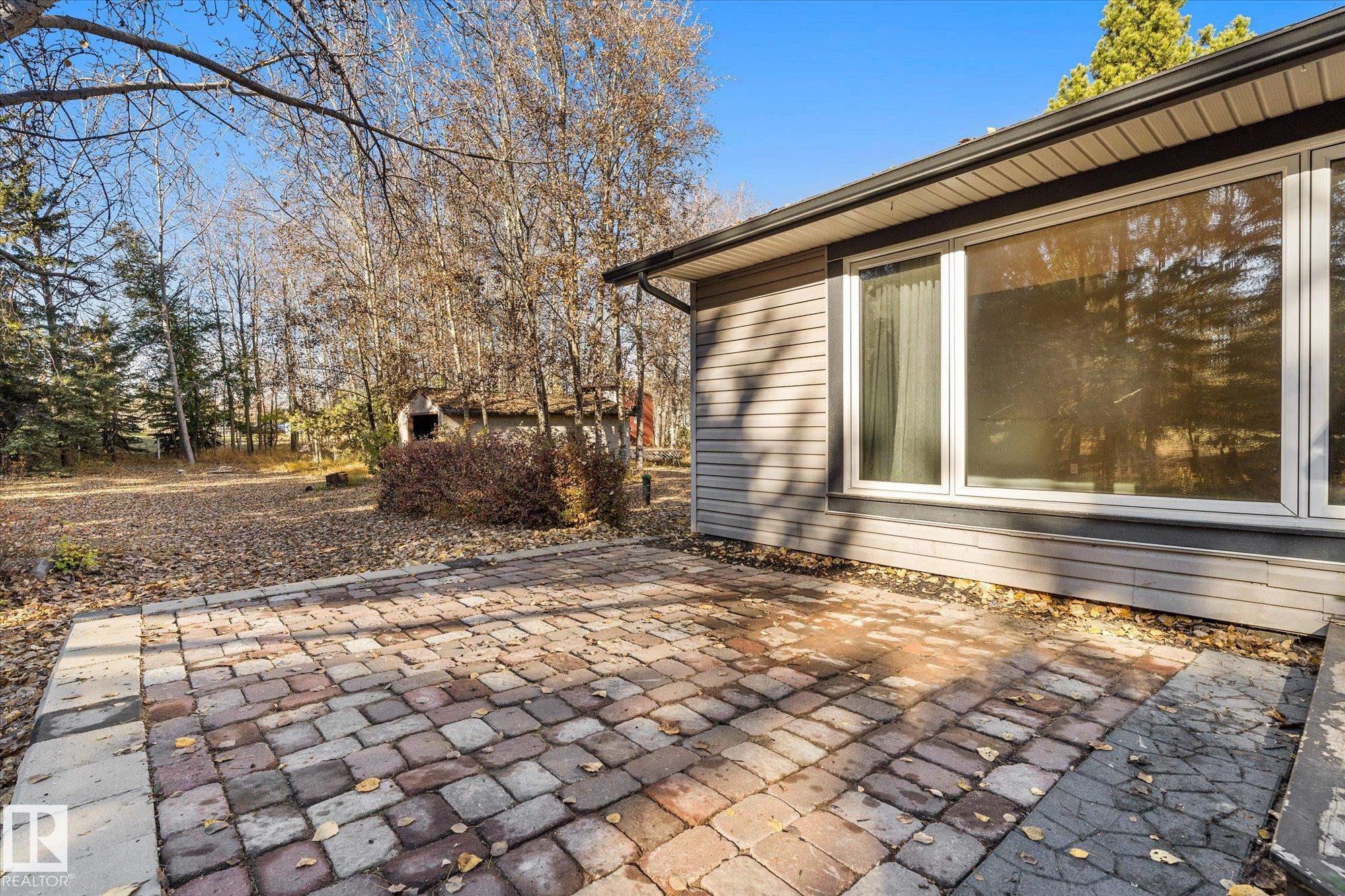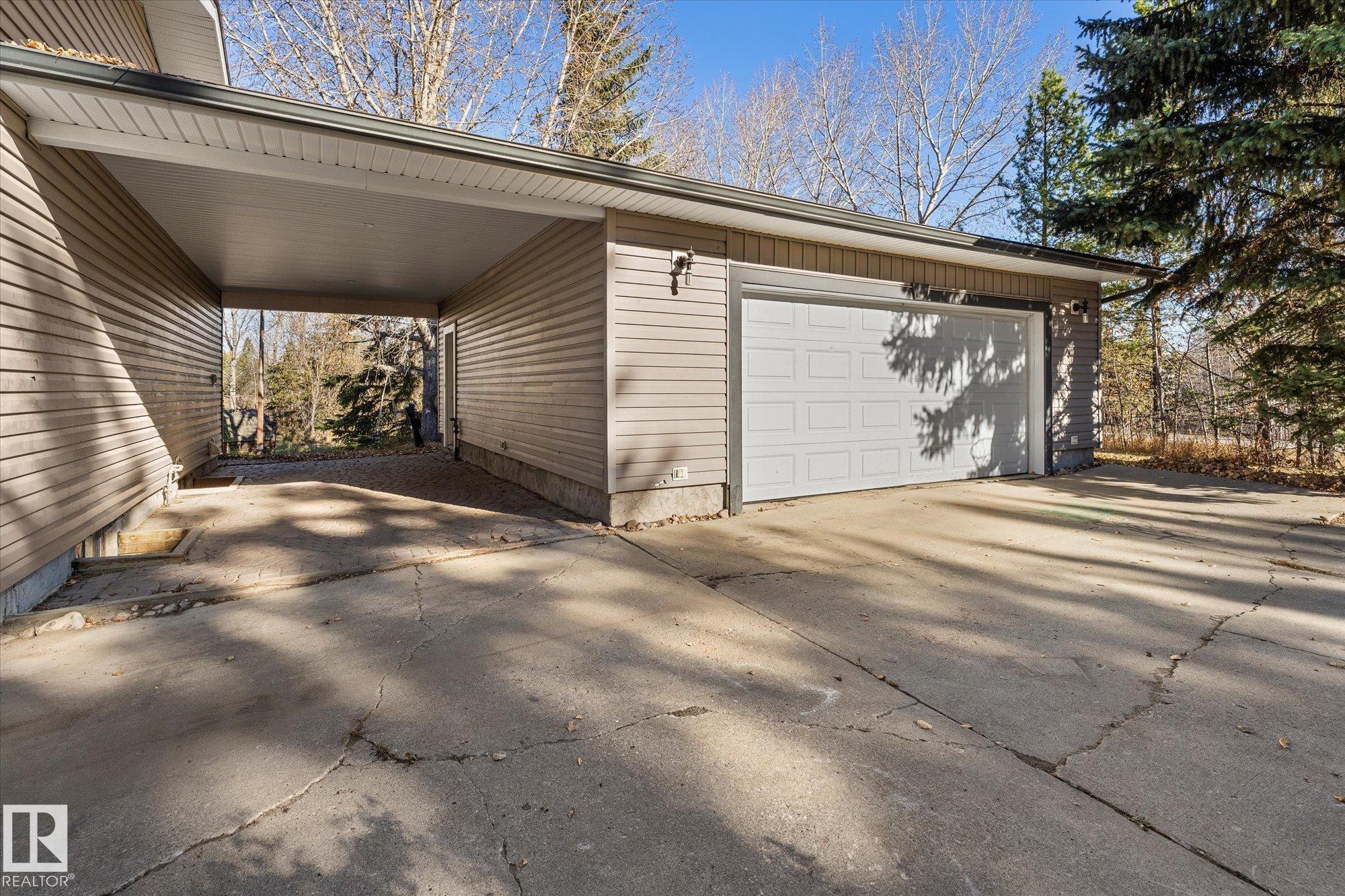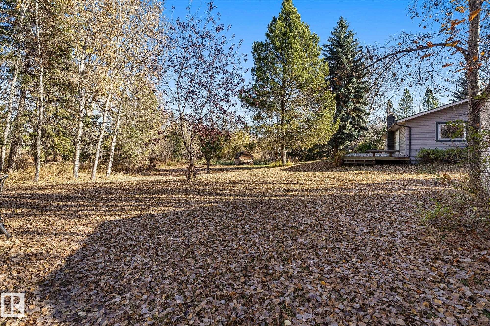 Welcome to this prime location 2.99 acre private tree lined bungalow in Grandmuir Estates just minutes north of spruce grove. Major updates include furnace (15), roof (16), and windows (14) The modern kitchen features white cabinetry, spacious quartz countertops, updated lighting, and a black stone farmhouse sink. The updated 4 pc bathroom mirrors this sleek style. The dining area opens to a spacious deck perfect for entertaining overlooking a landscaped yard w/ space to expand. 3 bedrooms, a large living room, & a cozy family room with a wood-burning fireplace complete the main floor. The partially finished basement awaits your finishing touches w/ space for a rec room, laundry area, and extra storage. The garage is oversized 26 x 24 ft, w/ breezeway attached for added charm and storage With some fresh paint and sweat equity this home can be restored to its full potential. Located walking distance to Muir Lake and a short drive into the city. Come discover country living, with city convenience!
