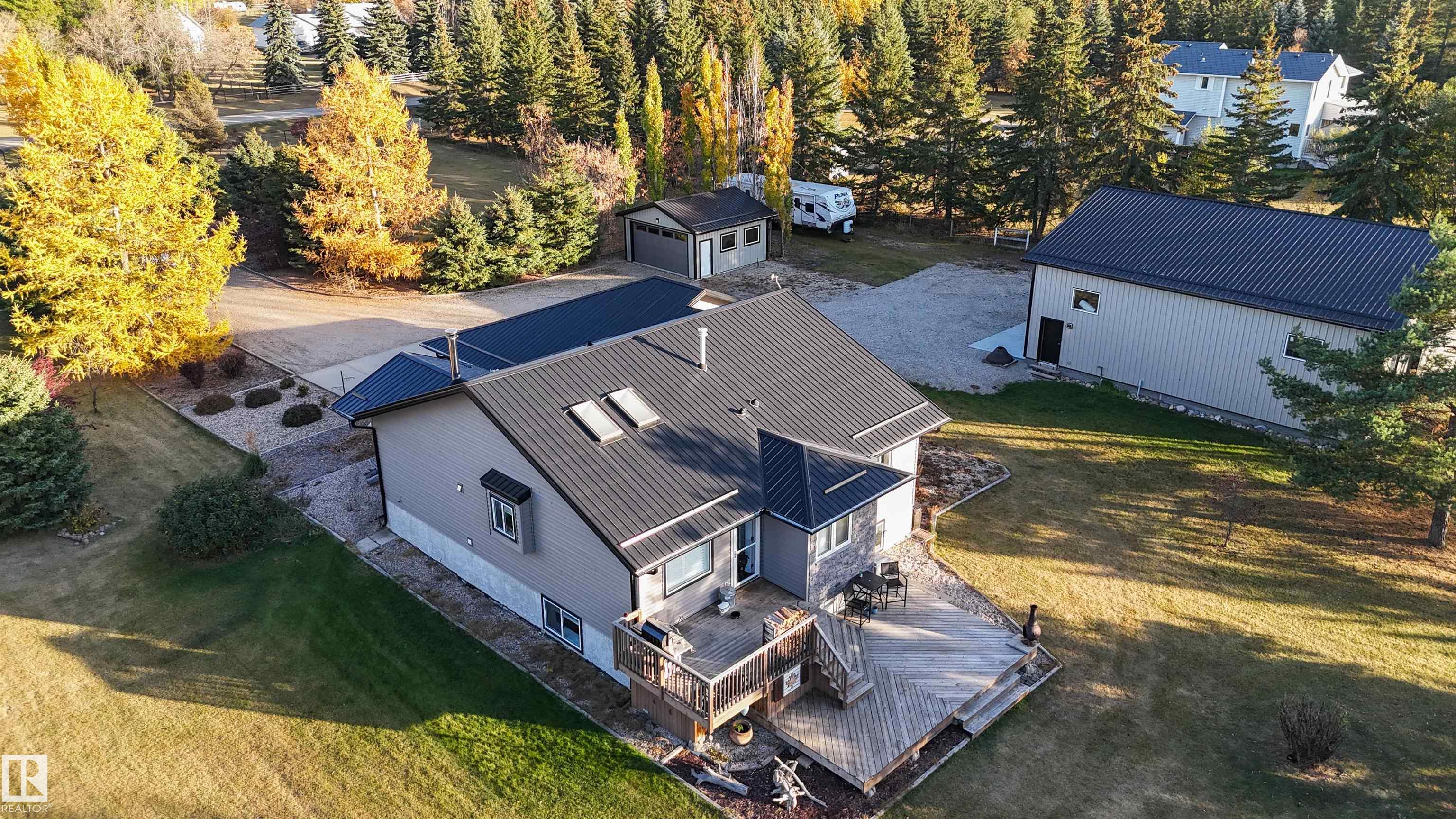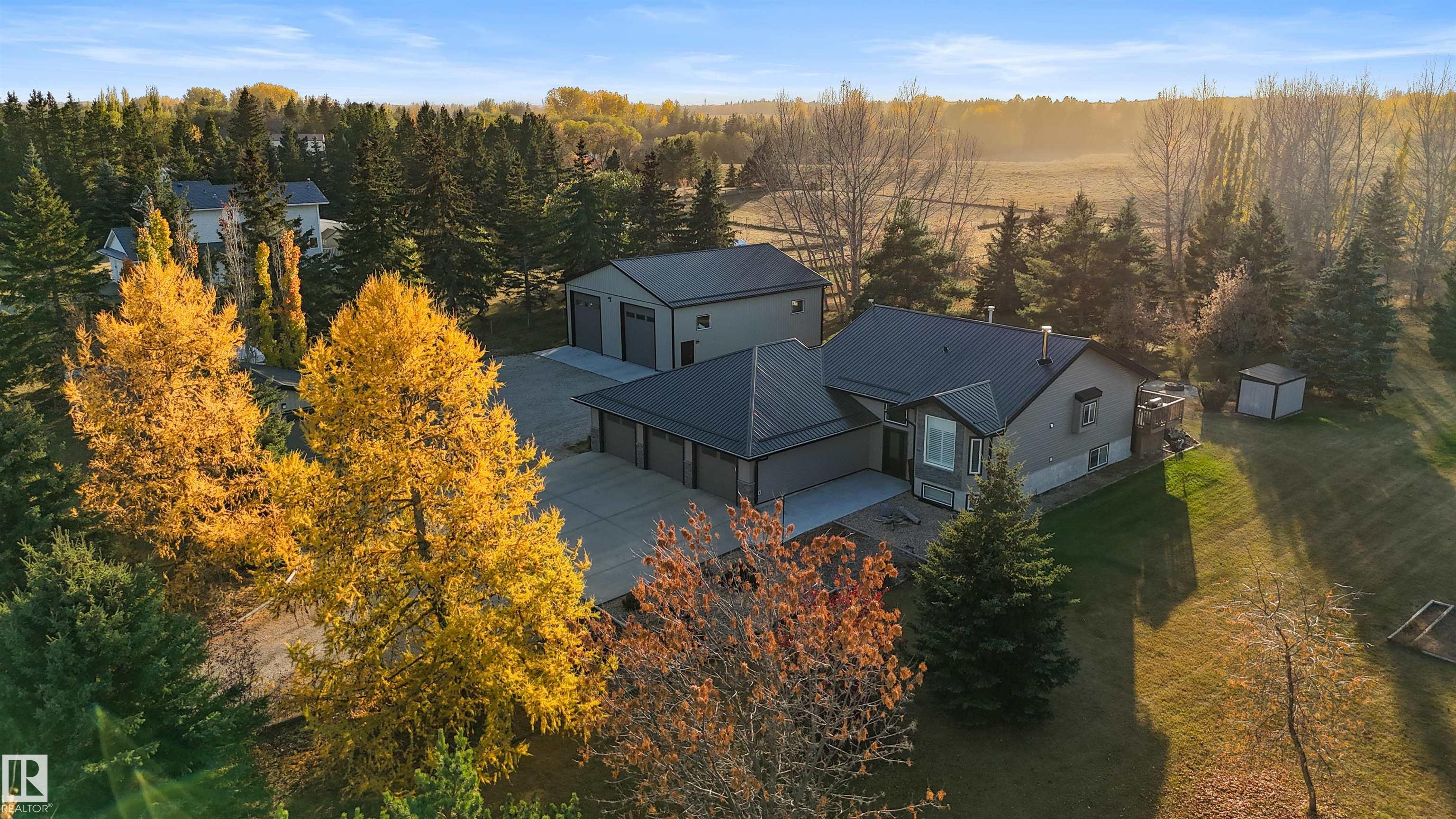 Welcome to 4 Chelsea Estates—an exceptional acreage located minutes from Graminia School, Devon, and the river valley. This 3.39-acre property is fully fenced with a powered gate and features a beautiful tree-lined driveway. The home has been recently renovated beautifully throughout. The main living area is open-concept with the kitchen at the heart of the home, showcasing a massive island with gas stove, two-tone cabinetry, and quartz countertops. The living room has large new windows and a cozy wood-burning fireplace. The main floor includes the primary suite with walk-in closet and ensuite with soaker tub and separate shower, plus two additional bedrooms and a second full bath. The basement features a spacious family room, fourth bedroom with attached 3pc bath, bar rough-in, laundry, and storage with access to the attached triple garage. Outside you’ll find a 44' x 40' heated shop (220v, 15' ceilings, 2-13'6" doors, 1-10' door with powered air flow screen) and a detached 20' x 20' ATV garage.