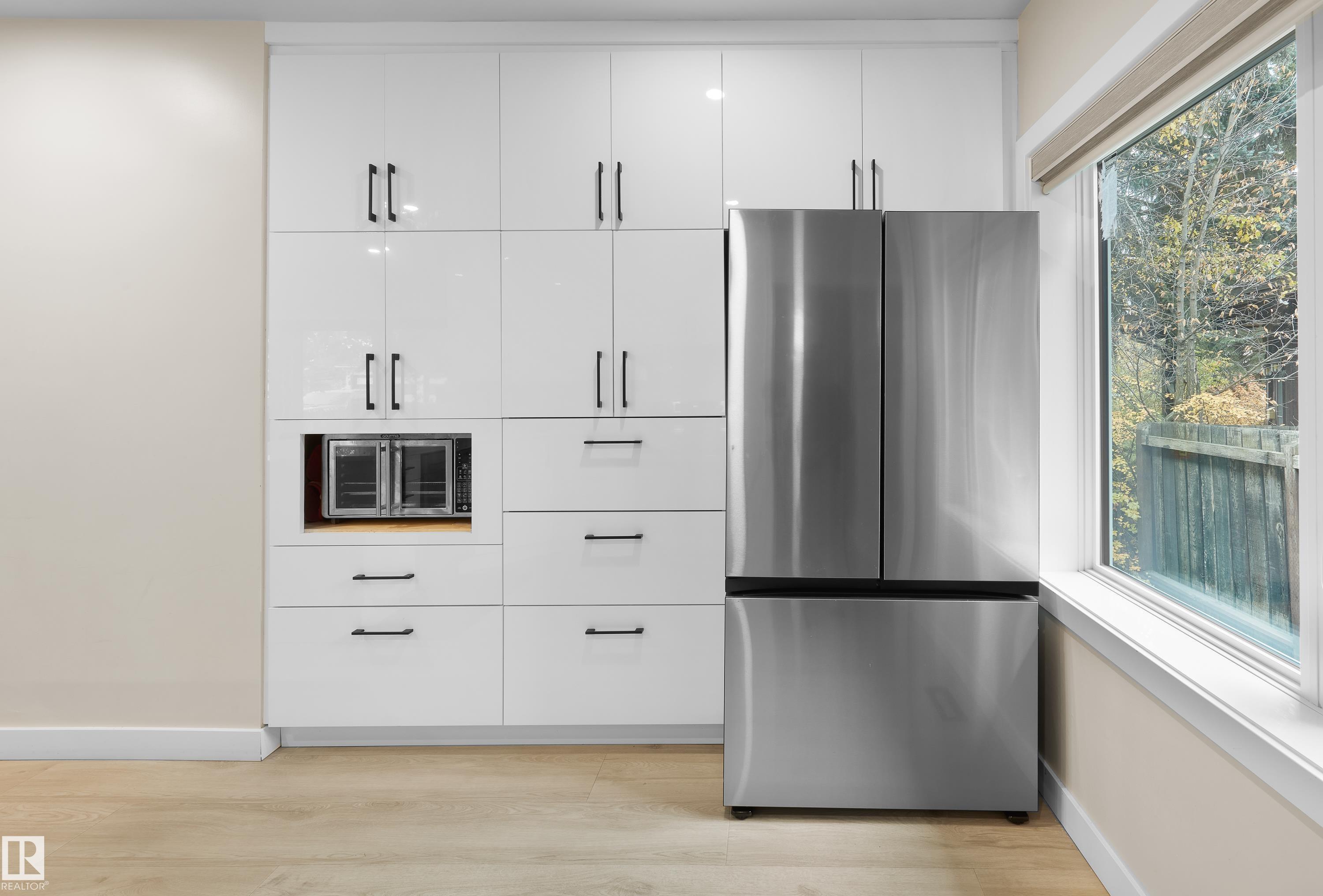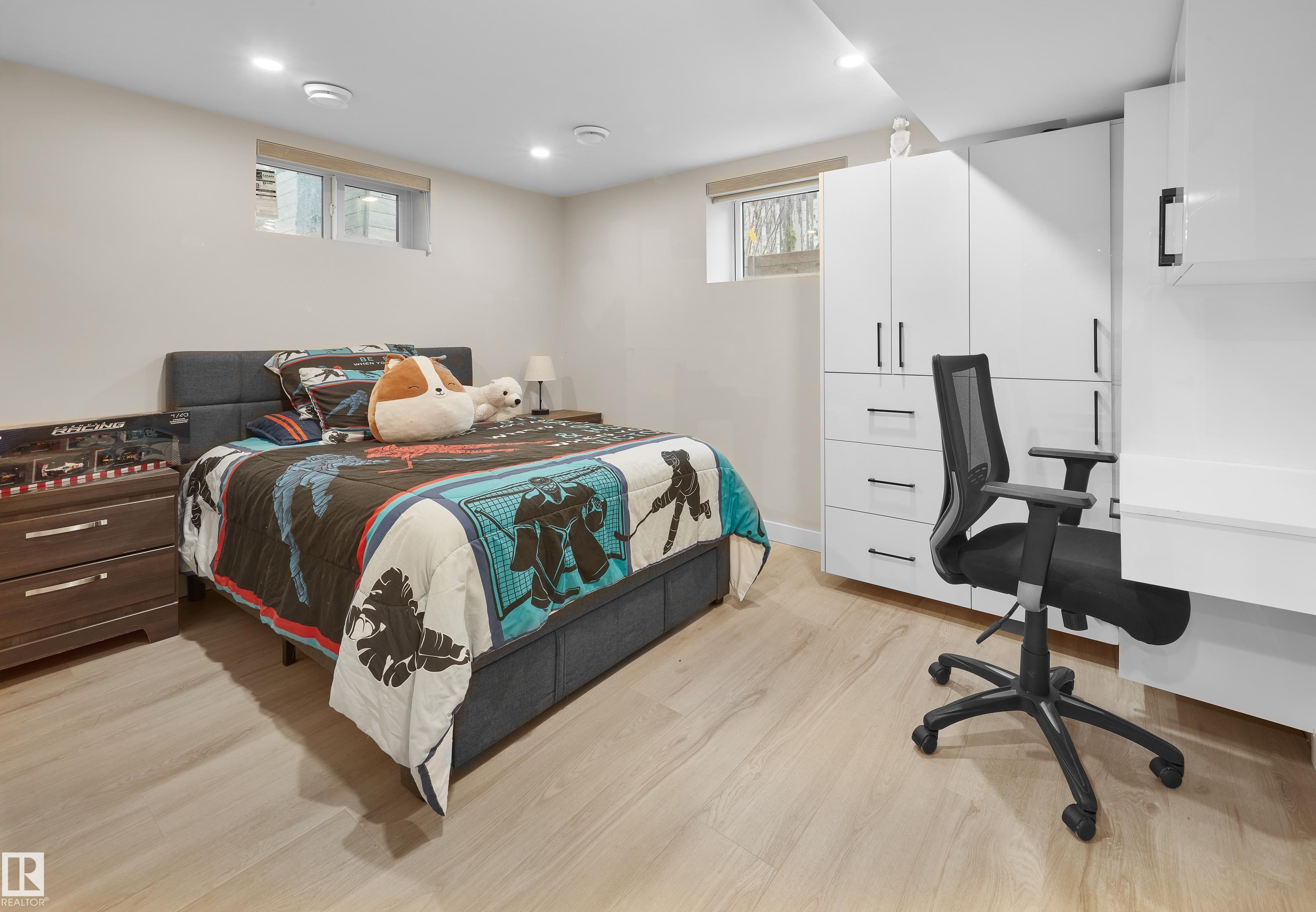 Nestled near Edmonton’s scenic river valley trail system, this beautifully renovated 1,436 sq. ft. bungalow perfectly balances modern comfort and exceptional convenience. Featuring four spacious bedrooms, three full bathrooms, and a private main-floor office, this home offers a functional layout ideal for families and has a fabulous mudroom! The finished basement expands the living space with a large family room, additional bedrooms, and ample storage—providing flexibility for guests, a home gym, or a media area. The open-concept design showcases contemporary finishes, a bright, inviting kitchen, and patio doors leading directly to the backyard—perfect for entertaining or quiet evenings outdoors. Located just minutes from the University of Alberta campus & hospital, with easy access to the LRT system, this home also sits close to premier recreation facilities at the Saville Centre. Combining urban accessibility with the tranquility of nearby nature trails, this property is great value!