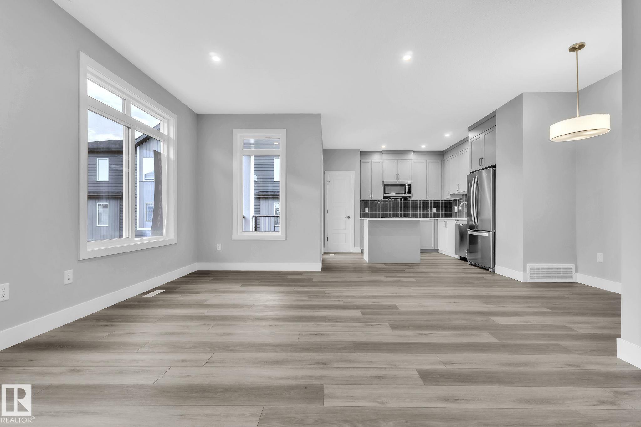 Welcome to the Everly Townhomes,a refined development by Brookfield Residential,where contemporary living meets suburban charm.This UPGRADED “Armstrong” three bedroom townhome will leave you breathless!The modern kitchen has grey cabinets,stainless appliances(w/gas range),quartz,tile backsplash,dining area+garden door to the balcony.The open concept living room boasts vinyl plank floors+wall to wall windows.The upstairs level offers a primary bedroom(w/4pc ensuite,walk-in closet+balcony),two more bedrooms,a 4pc bath+laundry.Other Features:Double Garage,Main 2pc Bath,Full Height Kitchen Cabinets,Smart Home System...The list is endless!Enjoy the year round events+amenities the Orchards has to offer w/access to the private club house boasting a spray park,skating rink,playgrounds,tennis+basketball courts.Conveniently located only steps to shops,restaurants,schools,parks,trails+a short drive to major freeways+the airport.*Builder Bonus-2yr FREE Condo Fees+a $4K Brick Gift Card.Welcome to your Dream Home!