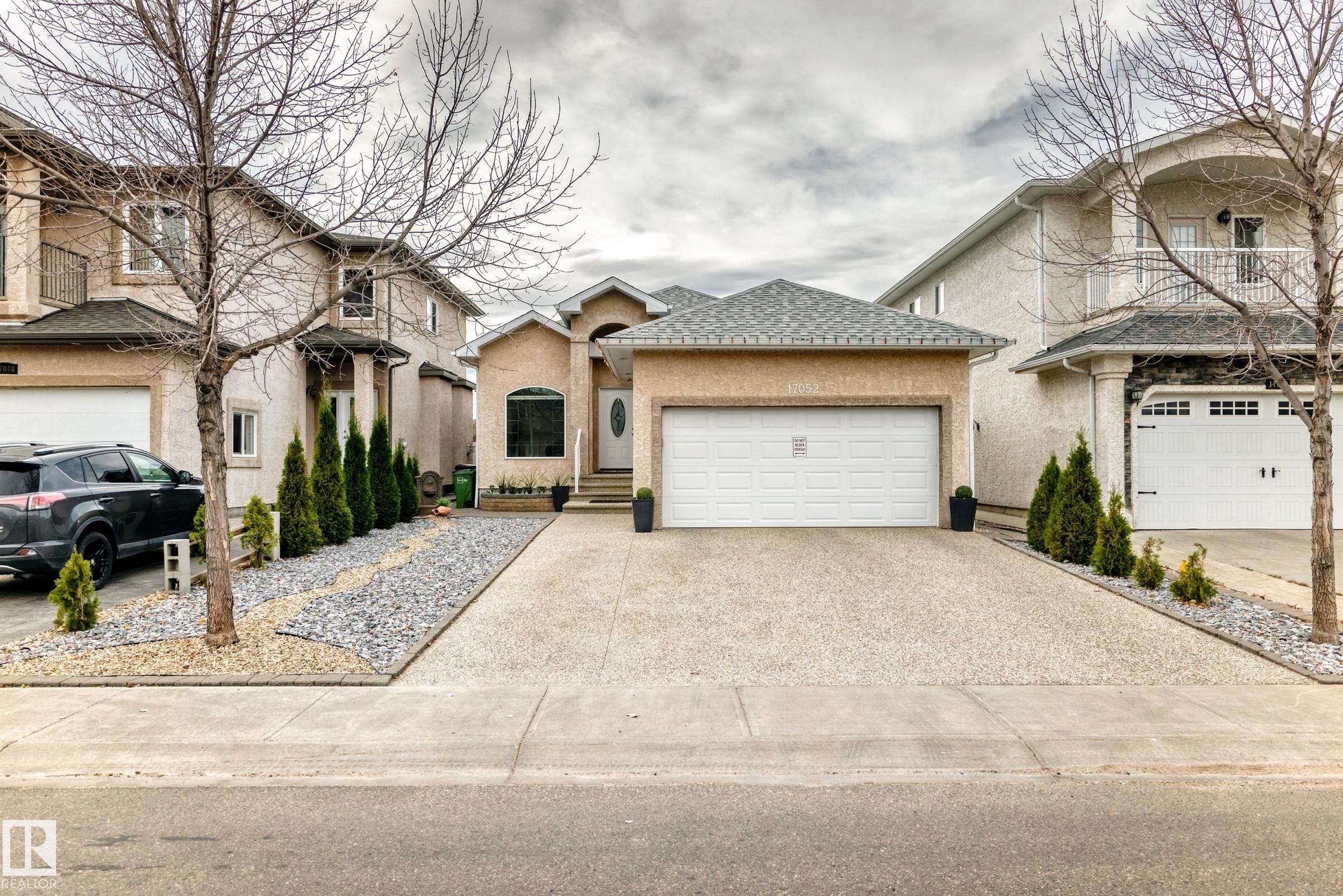 Absolutely STUNNING! This executive bungalow offers an impressive 2770 sqft of living space, showcasing exceptional craftsmanship & elegance throughout. Open-concept main floor that welcomes you w vaulted ceilings/walnut hardwood floors/elegant architectural pillars & a cozy fireplace w TV niche—perfect for relaxing or entertaining. The gourmet kitchen is a chef’s delight/featuring granite countertops/maple cabinetry/SS appliances/walk-in pantry/5large island w granite countertop. The dining area, enhanced by a striking stone feature wall, patio doors to your private outdoor oasis—completes w landscaped/stacked-stone flower beds/concrete patio. Master bedroom is a luxurious retreat w a walk-in closet/4pc ensuite/granite counter & jetted soaker tub. A den & 2nd bedroom complete the main floor. Fully finished basement offers a huge family room/2 large bedrooms w Jack & Jill bathrm/laundry & utility rm. Exterior incl stucco finish/extended exposed aggregate driveway. Easy access to all amenities. Don't miss!