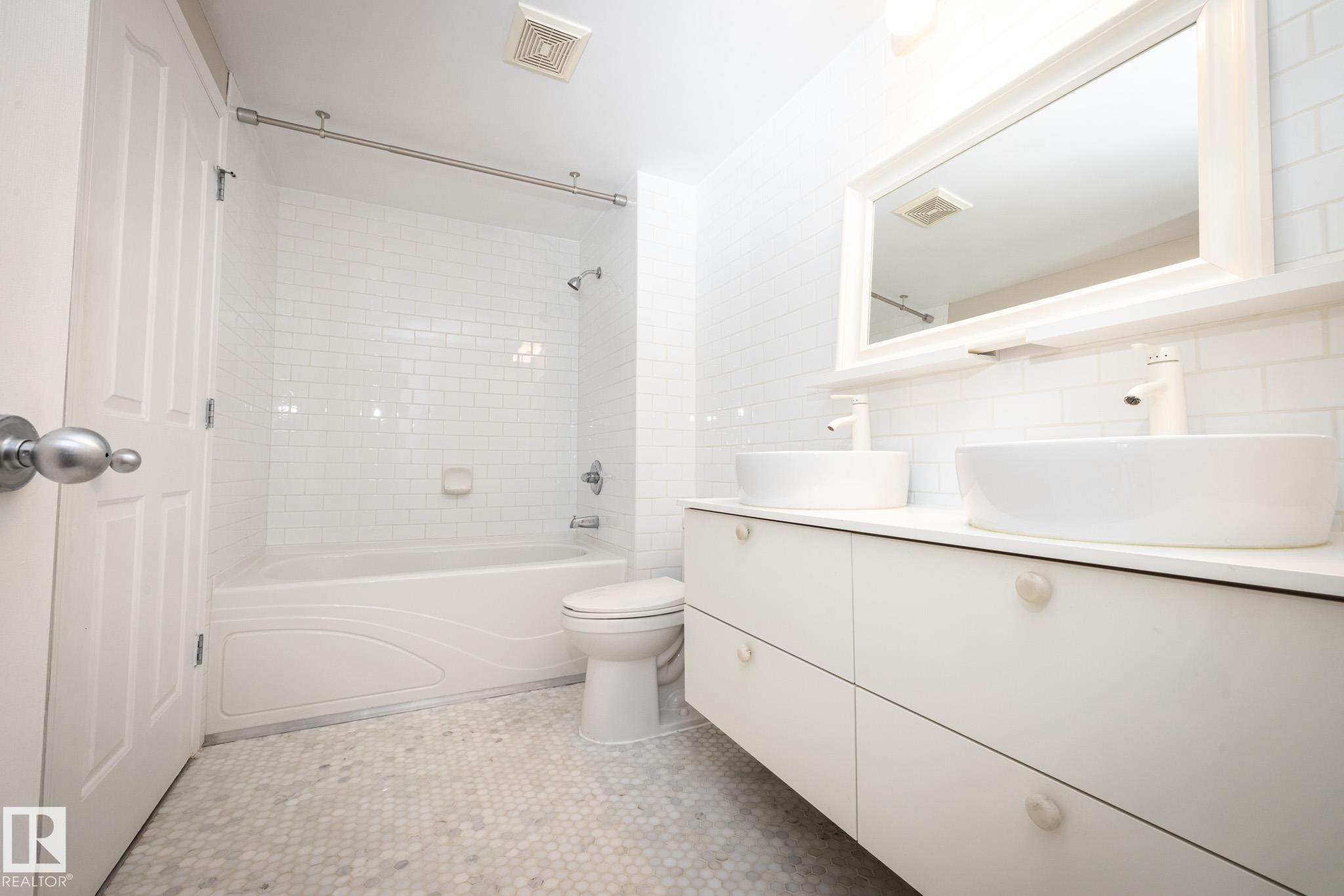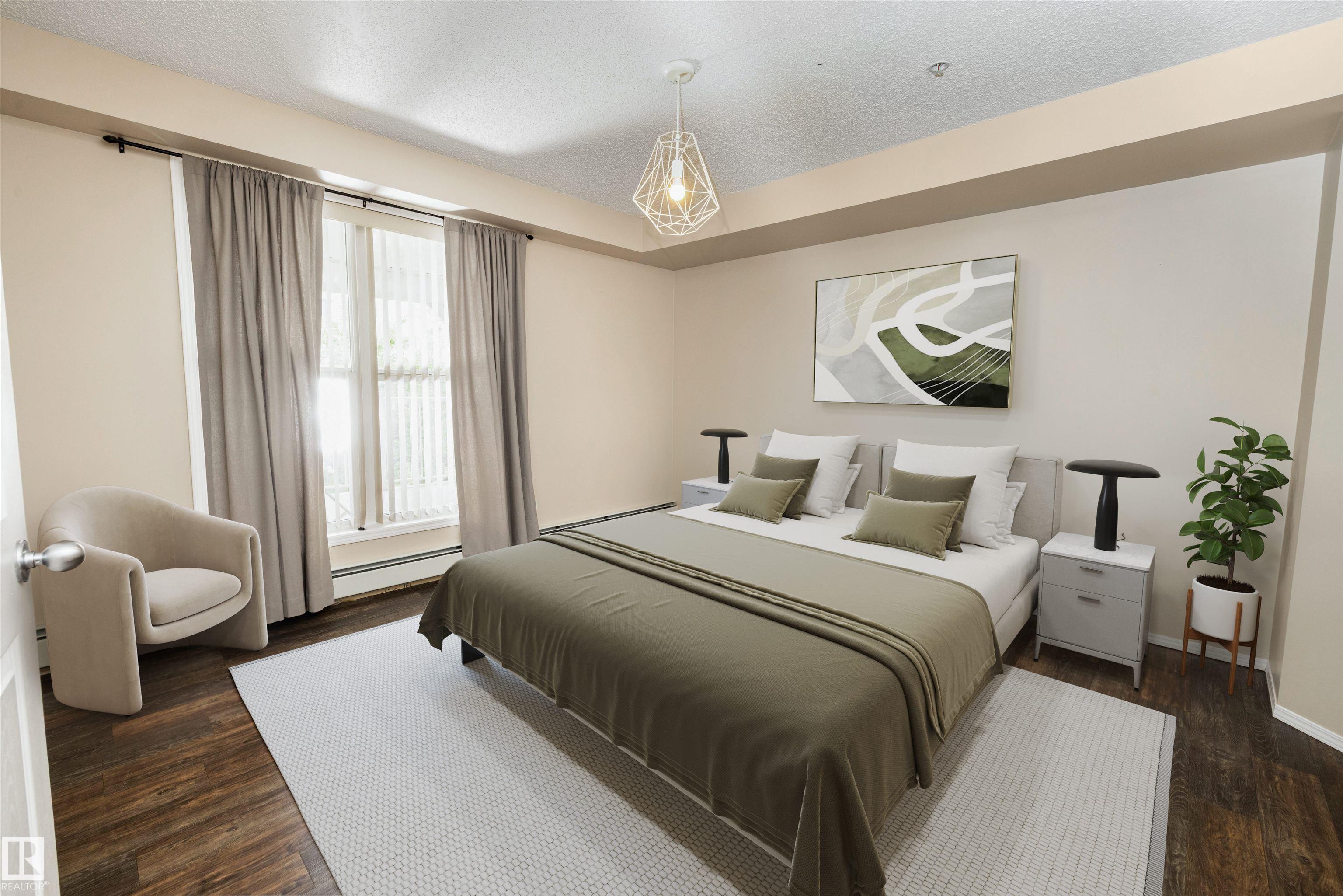 Welcome to Railtown on the Park, where vibrant downtown living meets tranquil green space. This spacious 1 bedroom plus den unit offers stunning views of the Railtown Promenade and Edmonton’s iconic skyline. Step into a bright, open concept layout featuring a modern kitchen with a central eat-up island, seamlessly flowing into the living area perfect for entertaining or relaxing. The generous primary bedroom includes his and hers closets and a beautifully upgraded 4 pcs ensuite. A versatile den, convenient 2 pcs powder room, and in-suite laundry with storage complete the floor plan. Recently painted and updated with newer laminate flooring, this well-maintained unit also includes a large private covered patio overlooking park space and walking trails, your personal downtown retreat. Extras include one heated underground parking stall with a storage cage, building fitness centre, and a guest suite for visitors. All of this just steps from Starbucks, shops, restaurants, Grant MacEwan and Rogers Place!