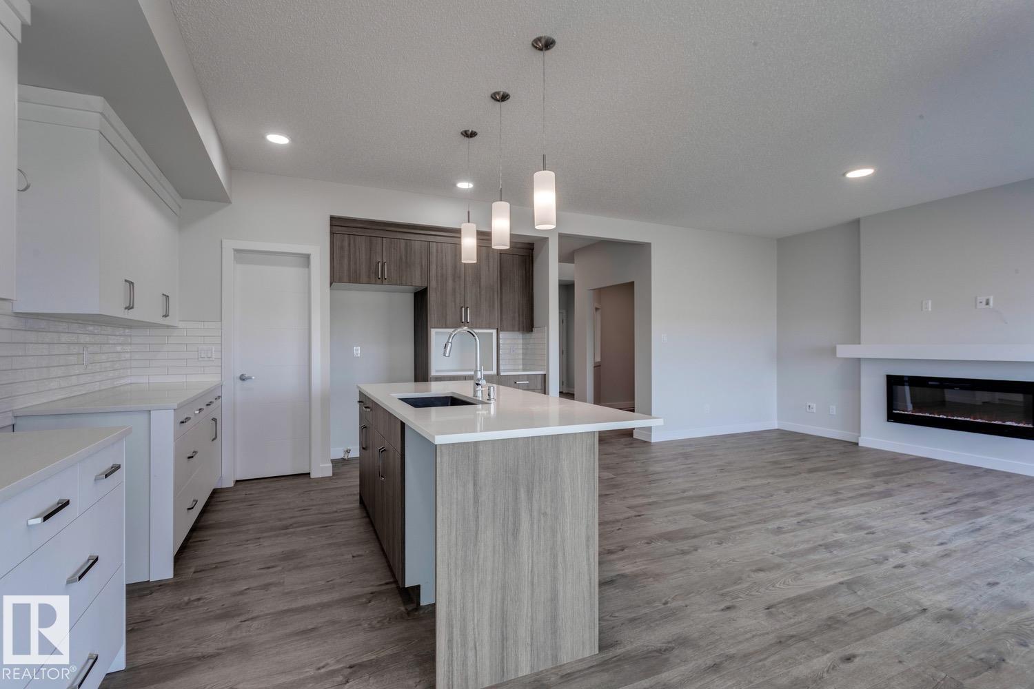 Welcome to the Apparition by Look Master Builder! This stunning 3-bedroom, 2.5-bath two-story home sits on a large pie-shaped lot in a quiet cul-de-sac in Rivers Edge. Features an open-to-above foyer, main floor den, stylish kitchen with island and walk-through pantry, and a cozy great room with electric fireplace. Upstairs offers a bonus room and a luxurious primary suite with raised sitting area, vaulted ceiling, double sinks, tiled shower, and freestanding soaker tub. Added upgrades include 9’ foundation walls, 2 basement windows, railing with metal spindles, window coverings, 200 AMP electrical panel, and an extended garage. Modern design and thoughtful details throughout! Quick possession available!