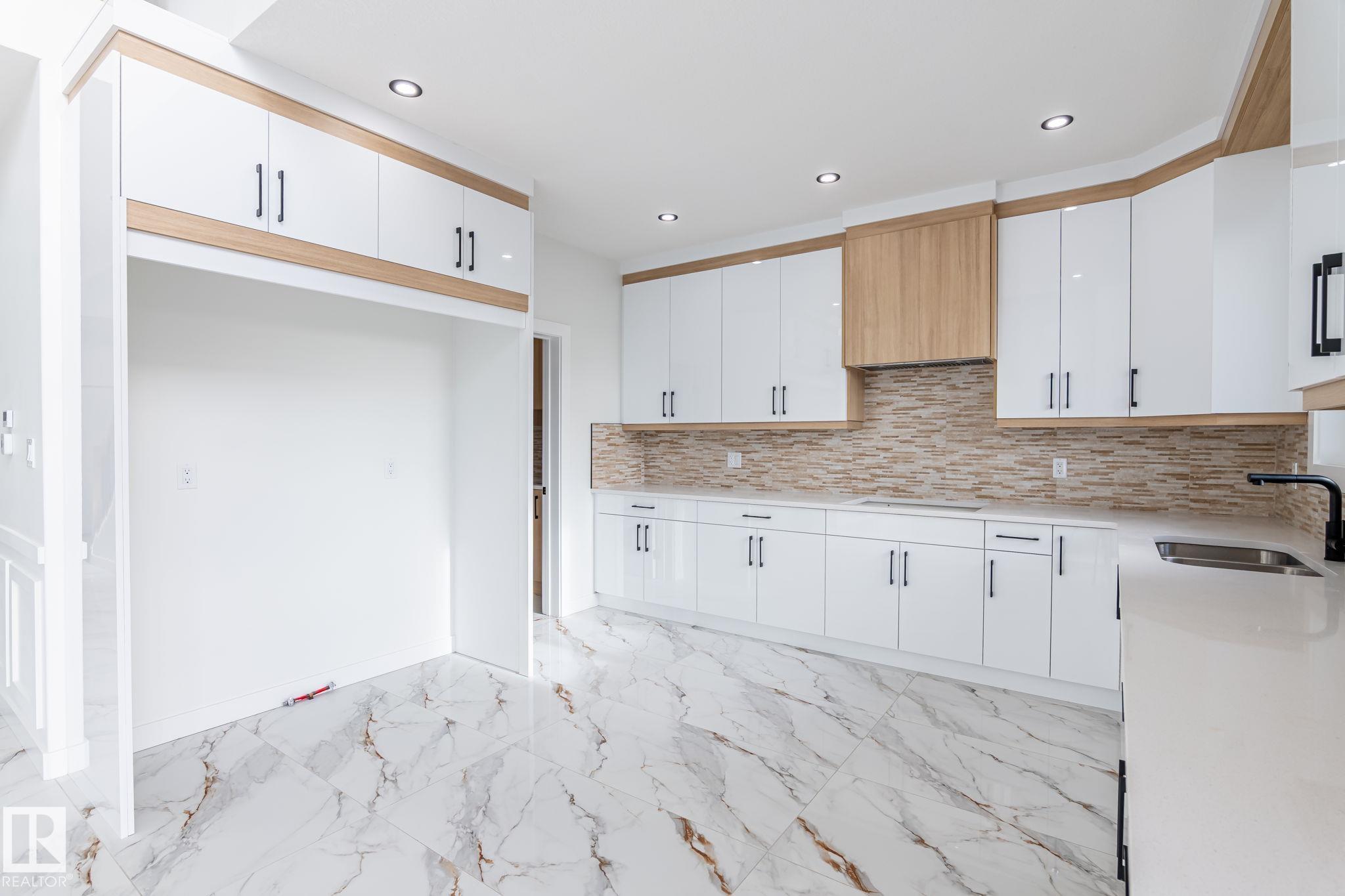 Welcome to an executive masterpiece in Gorman, where high-end custom finishes and intelligent dual-family design redefine modern living. This stunning, carpet-free home boasts high-quality tile and 7-inch vinyl plank throughout. The gourmet kitchen features custom cabinetry, elegant quartz countertops throughout, and a unique, fully ventilated spice kitchen—perfect for the passionate chef. This dual-family design features two distinct living areas, a main floor bedroom with 'cheater' ensuite, and main floor laundry, purpose-built for multi-generational comfort. The luxurious primary suite is a true sanctuary, with a dressing closet, custom lighting, and a private balcony overlooking the large, pie-shaped backyard. A separate entrance leads to the bright, 2-bed plus den basement suite, offering exceptional versatility and income potential. Situated near Anthony Henday Drive, your commute is effortless. Experience a space designed for the way you live today.