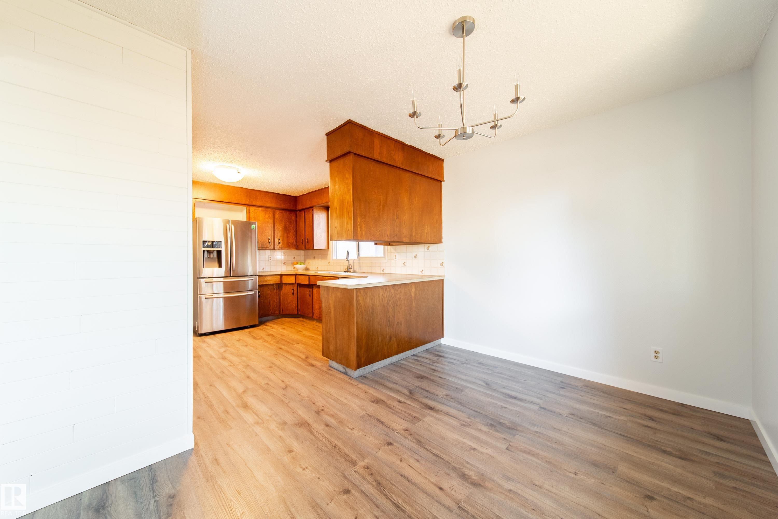 Welcome to this well-maintained 4-bedroom bungalow offering over 1,200 sqft of comfortable living space. Step inside to discover new flooring throughout the main floor, fresh paint, and several new windows and exterior doors that enhance the home’s natural light and energy efficiency. The spacious living room is ideal for relaxing or hosting guests, while the dining area flows into a kitchen featuring stainless steel appliances and plenty of potential to make it your own. At the rear of the home, you'll find the primary bedroom with a walk-in closet and private 2-piece ensuite, plus two additional bedrooms and a full main bathroom. The partially finished basement offers even more space with a large rec room with a fireplace and bar, a fourth bedroom, a second full bath, a laundry room, and generous storage. Outside, enjoy the fully fenced backyard and an oversized double detached garage. Located minutes from the Henday, Victoria Trail, parks, and schools, this home is perfect!