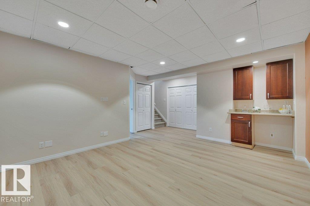 Location!Location in Terwillegar South 2 doors to WALKING TRAIL leading to PLAYGROUND with SPLASH PARK! Recently RENOVATED with LUX VINYL PLANK flooring throughout 90% of home on 3 levels! Freshly PAINTED with LIGHT & BRIGHT WHITE neutral decor on the upper 2 levels with NEW QUARTZ countertops in the Kitchen with big PENNISULA providing overhang for stools & includes W/I PANTRY, abundance of cabinetry and some new lighting. All OPEN to the Great room with GAS FIREPLACE and Dining area with PATIO Doors leading to the REBUILT DECK and MASSIVE BACKYARD!Upstairs is a DEN/FLEX room and 3 Spacious bedrooms and 2 FULL 4 pce Bathrooms.The FULLY FINISHED BASEMENT has WETBAR, Family room, 4th BEDROOM, 3rd Full BATHROOM and Laundry. Great space for the kids or game days. Quiet crescent yet close to ALL AMENITIES, SCHOOLS, PARKS, Anthony Henday and Public transportation. With 4 bedrooms, 4 Bathrooms, Front ATTACHED DOUBLE garage with work benches, fully fenced and landscaped HUGE yard makes this a perfect family home
