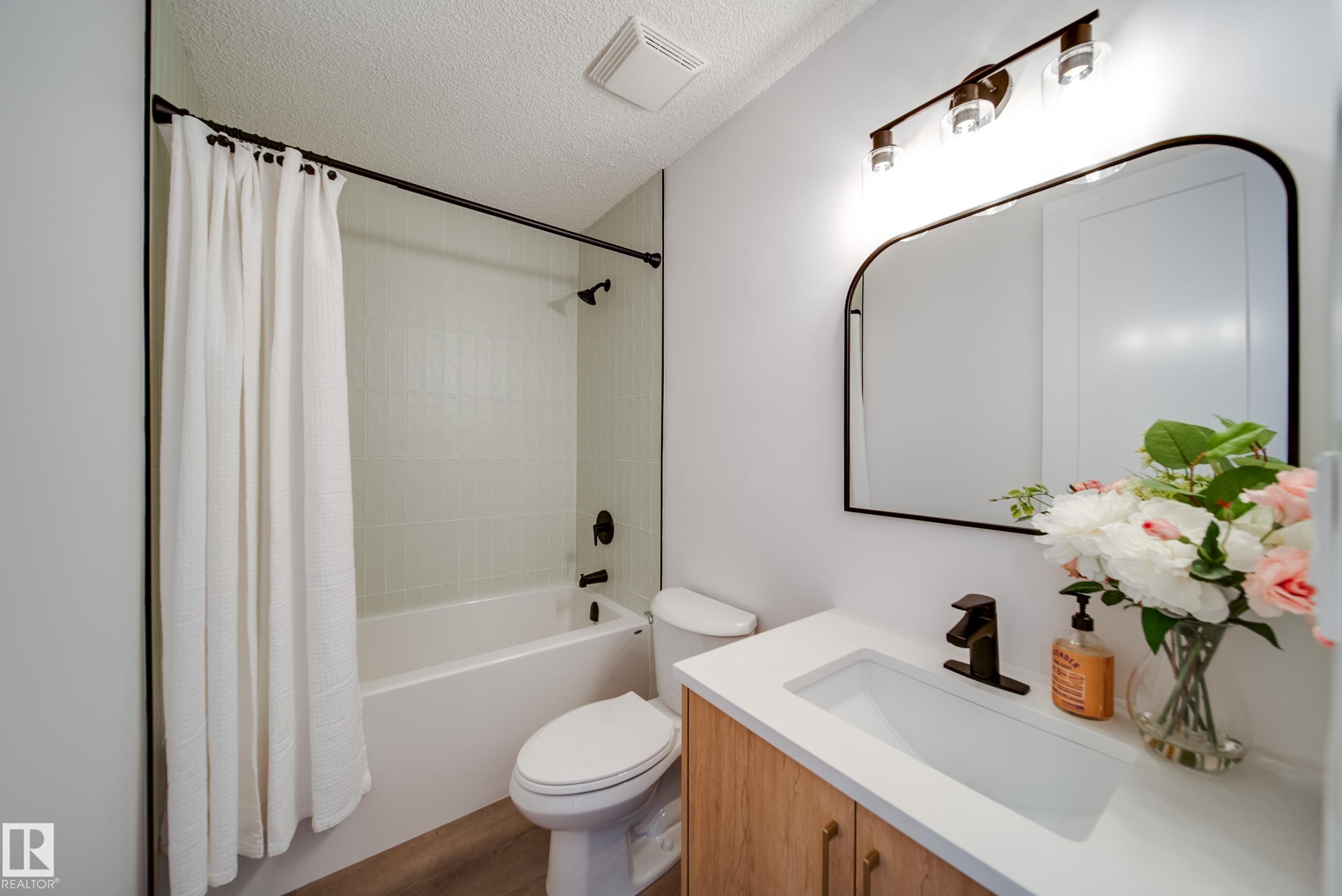 Welcome to 9949 171 Avenue, a beautifully updated townhouse nestled in the desirable Baturyn community. This home offers modern style and comfort with a bright BRAND NEW KITCHEN featuring QUARTZ countertops, sleek cabinetry, gold hardware, and stainless steel appliances. Fresh flooring, updated lighting, and contemporary feature walls add warmth and character throughout the open living and dining areas, while large windows and patio doors let in plenty of natural light. Upstairs you’ll find spacious bedrooms and a renovated bathroom with stylish vanity, new fixtures, and tiled shower/tub. The FULLY FINISHED basement provides additional living space perfect for a rec room, office, or gym with ANOTHER FULL BATHROOM. Outside, enjoy a serene complex with a welcoming front path. Located close to schools, parks, shopping, public transit, and with easy access to the Anthony Henday, this move-in-ready home combines convenience and thoughtful stylish upgrades. There is an additional stall for $25 monthly