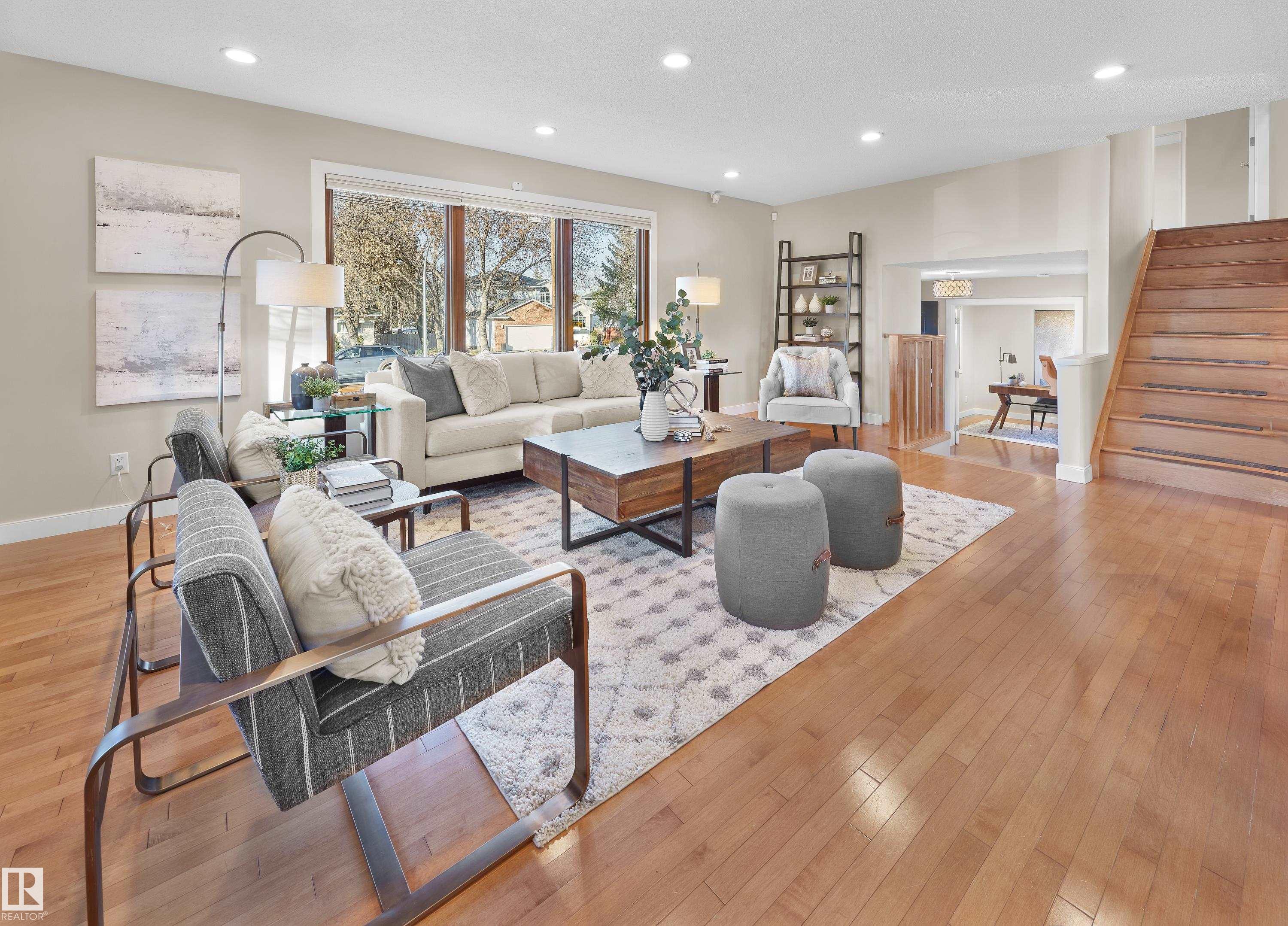 Beautifully maintained 4-level split in desirable Pleasantview! Offering 1,652 sq ft of living space above grade on a stunning 725 sqm lot with gorgeous landscaping. Numerous upgrades include Loewen triple-pane wood windows (2007), shingles (2020), air conditioning (2015), and electrical upgrades (2015/16). The renovated kitchen features JennAir appliances, quartz counters, and bright white cabinetry—perfectly suited for modern living. The layout is excellent for families or professionals, featuring 3 bedrooms upstairs, a main floor office, and a convenient powder room for guests. The third level offers a cozy family room, while the basement provides great storage or development potential. Enjoy the fenced yard—ideal for kids or pets—and a 23x20 double garage. Walking distance to Southgate, Sunterra, Italian Centre, top schools, and the LRT. A rare opportunity in a fantastic neighbourhood!