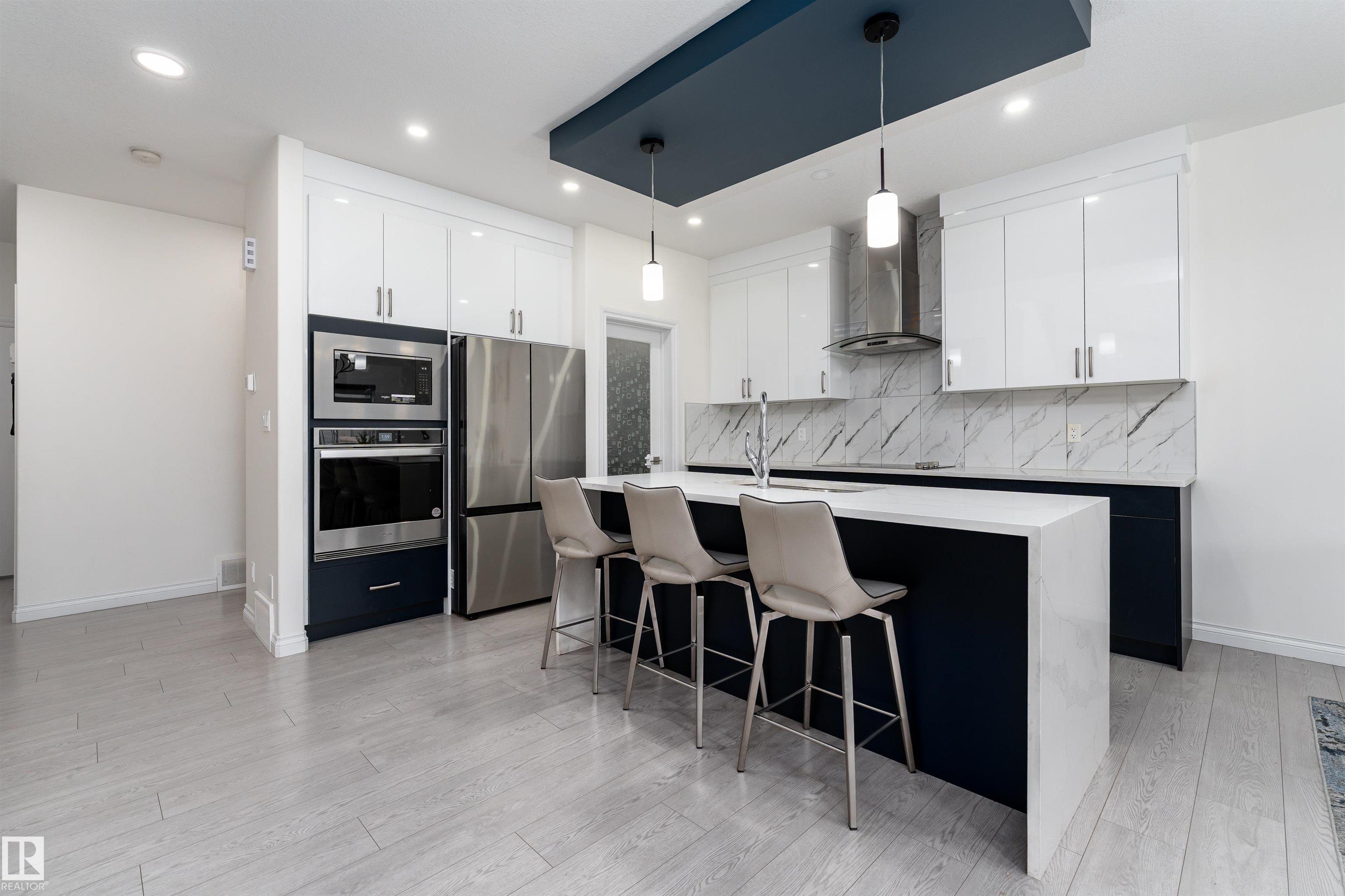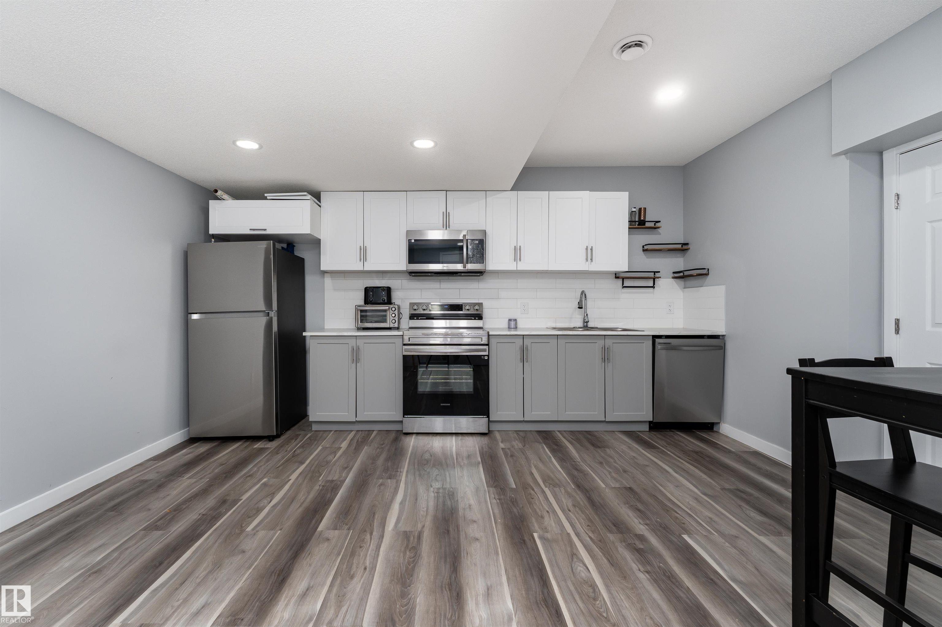 Prepare to be impressed! This 2,200 sq ft modern home with a LEGAL BASEMENT SUITE features bright, open spaces, elegant finishes, and stylish touches. Enjoy the HIGH CEILINGS, light colours, and blue accents creating a clean, new look. The OPEN-TO-BELOW main floor features a bright living area with a sleek fireplace, an ISLAND KITCHEN with UPGRADED APPLIANCES, and a WALK-THROUGH PANTRY for everyday convenience. Upstairs, cozy carpet flooring leads to a spacious primary suite with a 5-PIECE ENSUITE and WALK-IN CLOSET. With 3 BEDROOMS and 2.5 BATHROOMS above ground, there’s plenty of room for a big family. The BASEMENT SUITE includes a modern KITCHEN, spacious living room, BEDROOM, a DEN, separate LAUNDRY, a FULL BATH, and a separate entrance. Step outside to a FENCED BACKYARD, a DECK, and a WALKING TRAIL at the back of the house. Complete with AIR CONDITIONING, a WATER SOFTENER, and a DOUBLE ATTACHED GARAGE. Located near airport, schools, shopping, and golf courses. Your dream home awaits!