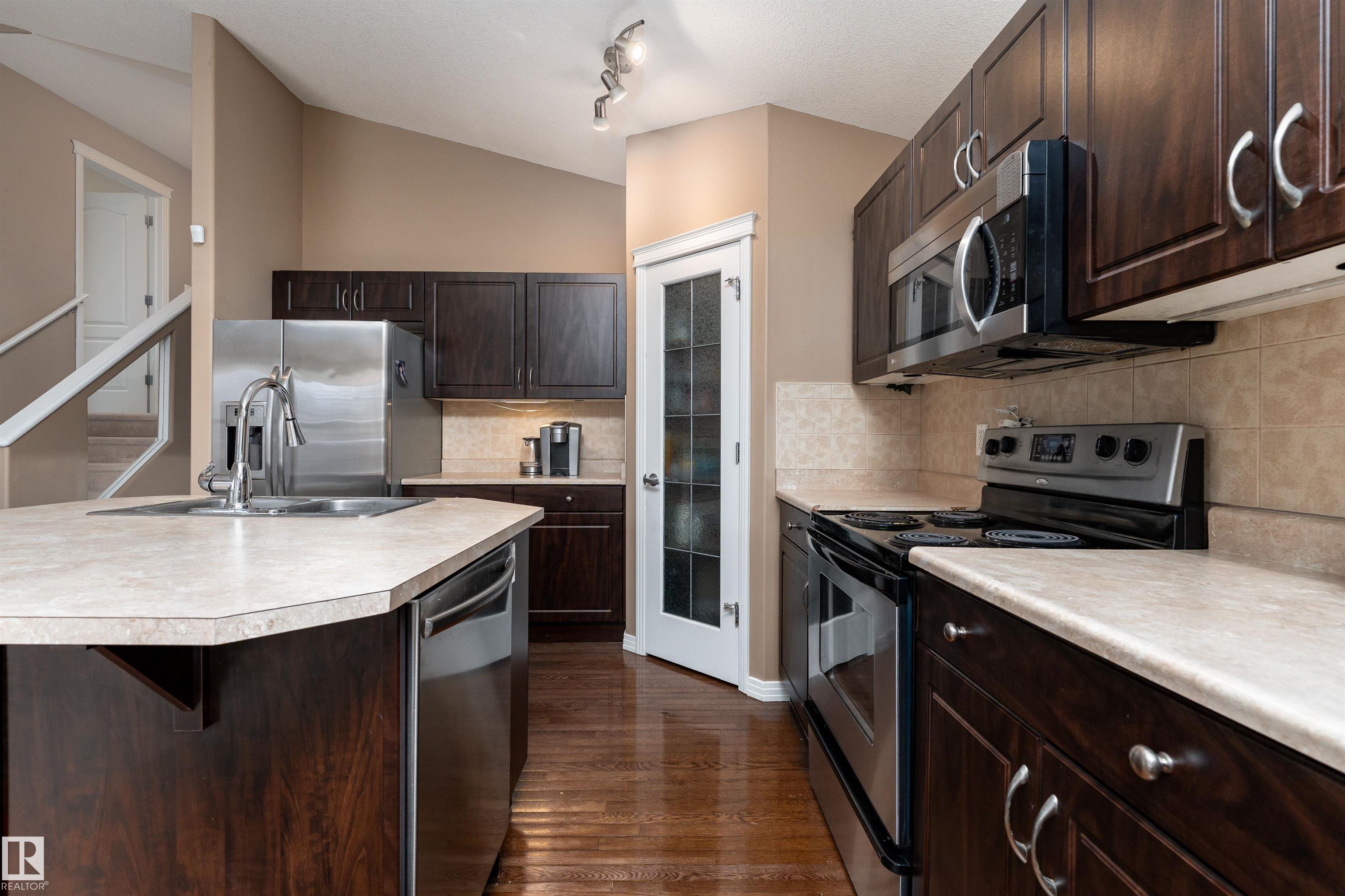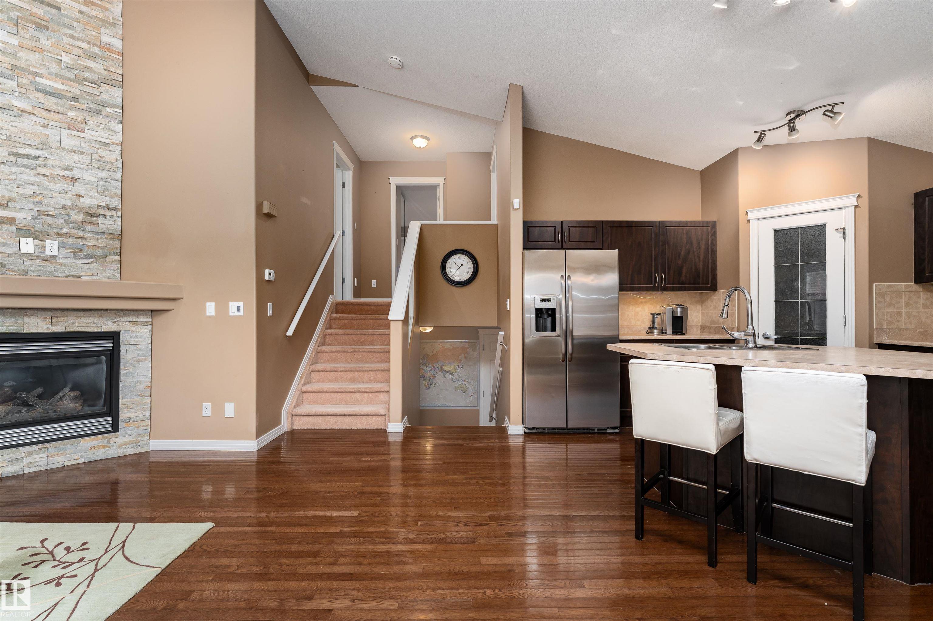 This STUNNING 1,400 sq ft Bi-level Duplex in the sought-after community of Montalet is the perfect mix of STYLE, SPACE, and COMFORT! Step into the grand entryway with a walk-in storage closet, then enjoy a BRIGHT and SPACIOUS main floor featuring rich dark tones, gleaming hardwood floors, and soaring VAULTED CEILINGS. The open-concept living room showcases a cozy GAS FIREPLACE with custom stonework that makes a statement! The KITCHEN is perfect for entertaining with a large island, stainless steel appliances, walk-in pantry, and beautiful cabinetry. The dining area flows seamlessly onto your PRIVATE DECK and FULLY LANDSCAPED, FENCED YARD — ideal for BBQs and family gatherings! Upstairs features a LUXURIOUS primary suite with WALK-IN CLOSET and ensuite, plus a second bedroom and full bath. The FULLY FINISHED BASEMENT adds even more living space with a family room, bedroom, storage & bathroom. Close to schools, playgrounds, shopping, and just minutes from the airport — this home truly has it all.