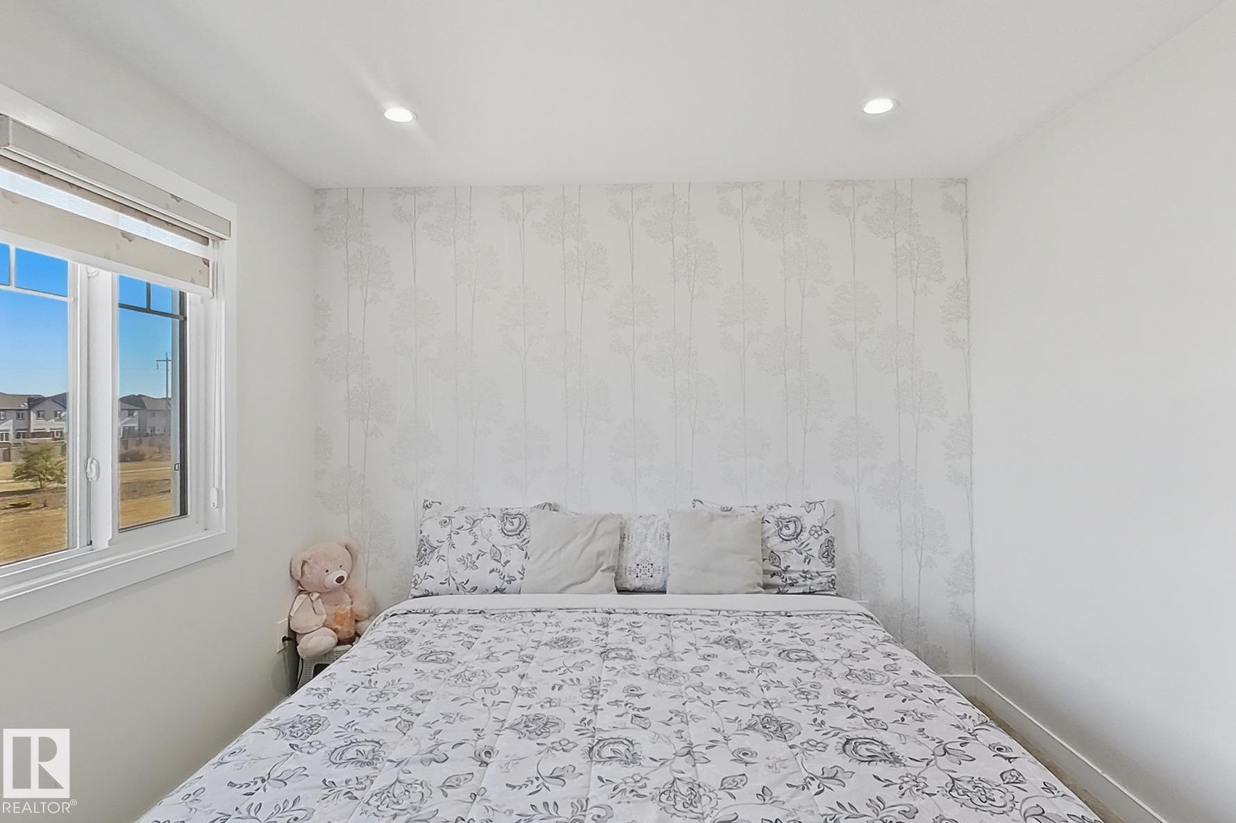 Location! Location! Welcome to this beautiful, modern, facing a peaceful GREEN SPACE and spacious move-in-ready townhouse in highly sought-after Laurel. This home offers 3 bedrooms, 2.5 baths, a finished basement with tile flooring, and a flex space perfect for an office or storage. Enjoy upgrades such as quartz countertops, a large kitchen island, pot lights, electric fireplace, vinyl & tile flooring, 9 ft ceilings, and a double attached garage. The open-concept layout provides comfort and style, while upstairs you’ll find convenient laundry near all bedrooms. The basement adds extra space and ample storage. Located in a fully developed community with nearby amenities including parks, playgrounds, schools, Rec Centre, walking trails, transit, and easy access to Anthony Henday. Bus stop is just steps from your door. Move-in ready and perfect for families or professionals—don’t miss out on this stunning home!
