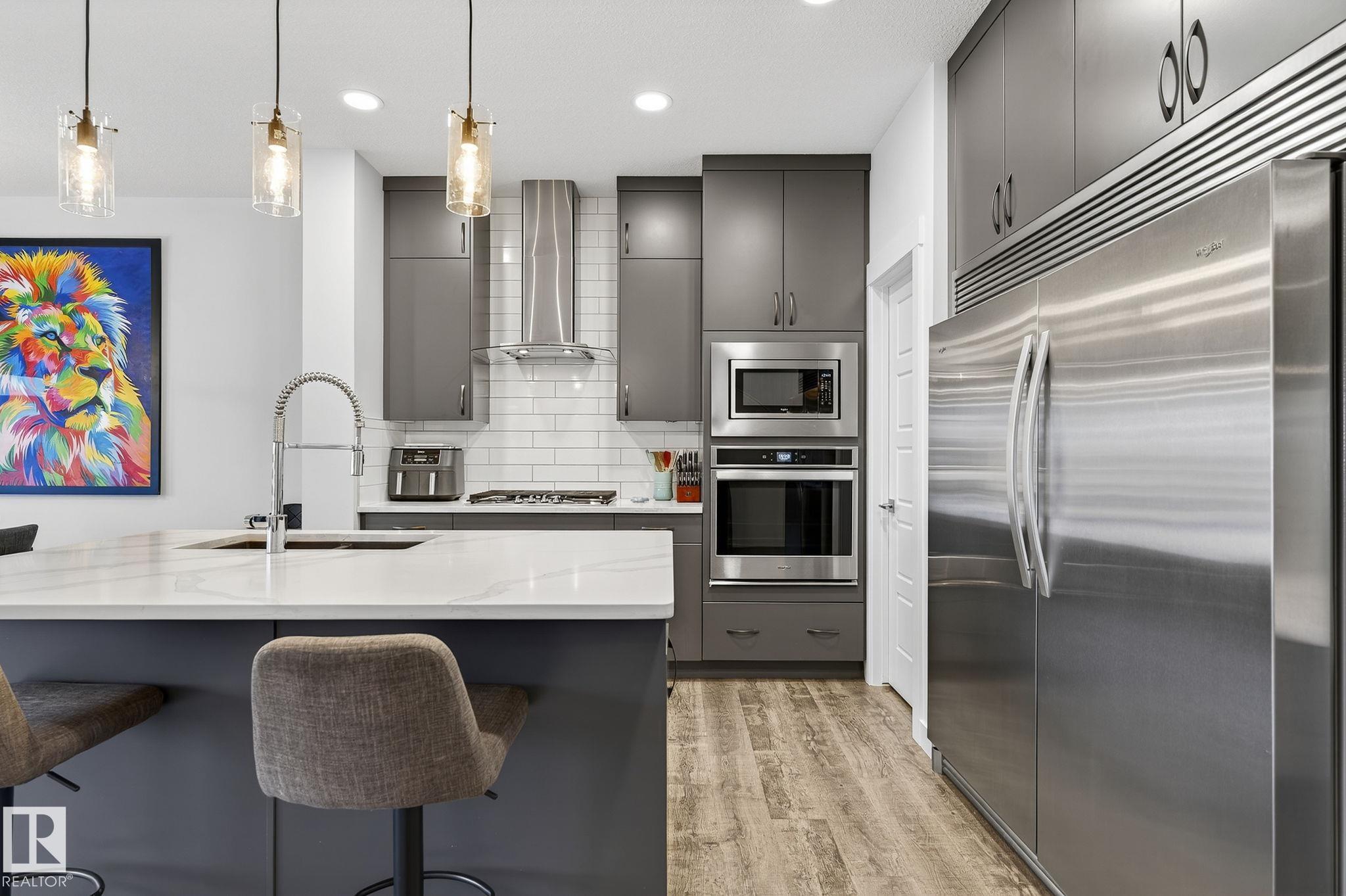 It’s Simply Marvelous in McConachie! Welcome to this beautifully finished 1857 sq ft half duplex in a highly desired neighborhood. This home blends modern style with functional design and includes a legal basement suite—ideal for families or investors. Step inside to an open-concept main floor featuring a bright living area with a cozy fireplace and a stylish kitchen with stainless steel appliances, gas range, and ample cabinets. A convenient 2-piece bath completes the level. Upstairs offers plush carpeting, a spacious primary bedroom with 4-piece ensuite, two additional bedrooms, bonus room, another full bath, and upper-floor laundry. The legal suite below adds great rental potential with a second kitchen, living area, bedroom and 4-piece bath. Enjoy the fenced large southwest yard, deck, A/C and ovzd double garage. Close to all amenities, schools, parks, shopping & access to the Henday. A move in ready gem offering comfort, income potential, and incredible value in a vibrant, family-friendly community!