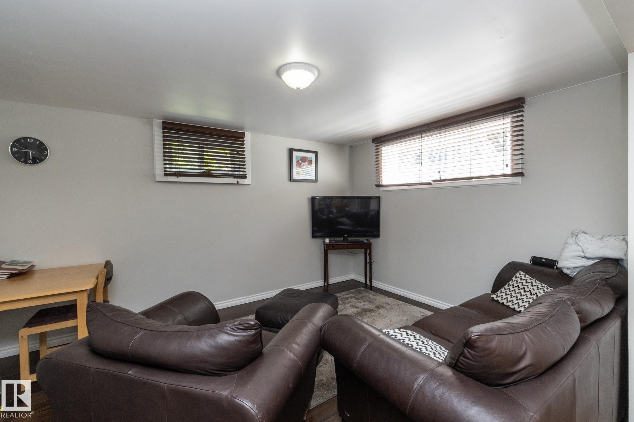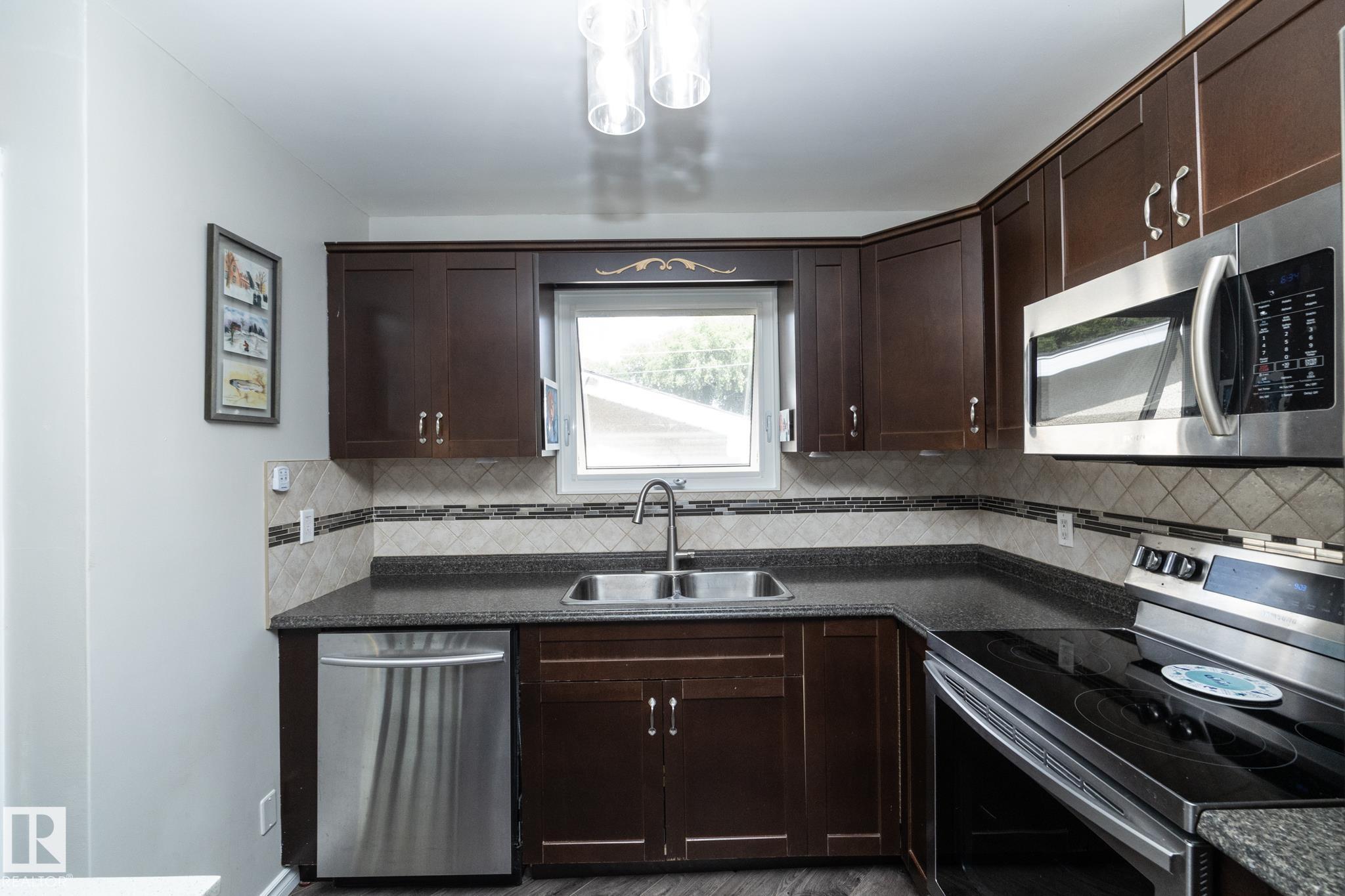 Dreaming of a move-in-ready home with space, style & flexibility? This renovated bungalow delivers all that & a separate in-law suite—perfect for extended family living, hosting out-of-town guests, or givng a little extra breathing room. The main floor features an open concept design w/rich wood cabinetry, quartz counters, tile backsplash, centre island & engineered flooring. The updated bath includes a deep soaker tub, tiled surround & modern fixtures. Three comfortable bedrooms complete the main level. A separate entrance leads to shared laundry & a bright, self-contained lower suite w/updated kitchen, low-maintenance flooring, 2 spacious bdrms w/egress windows & a refreshed bath—perfect for multi-gen living or AIRBNB opportunity. Major upgrades since 2016: shingles, furnace, windows, exterior doors, insulation, fencing & garage door. Outside offers a low-maintenance yard, RV parking & 24x22 garage. Steps to schools, mins to Yellowhead, Henday & river valley trails. Nothing to do but move in & enjoy!