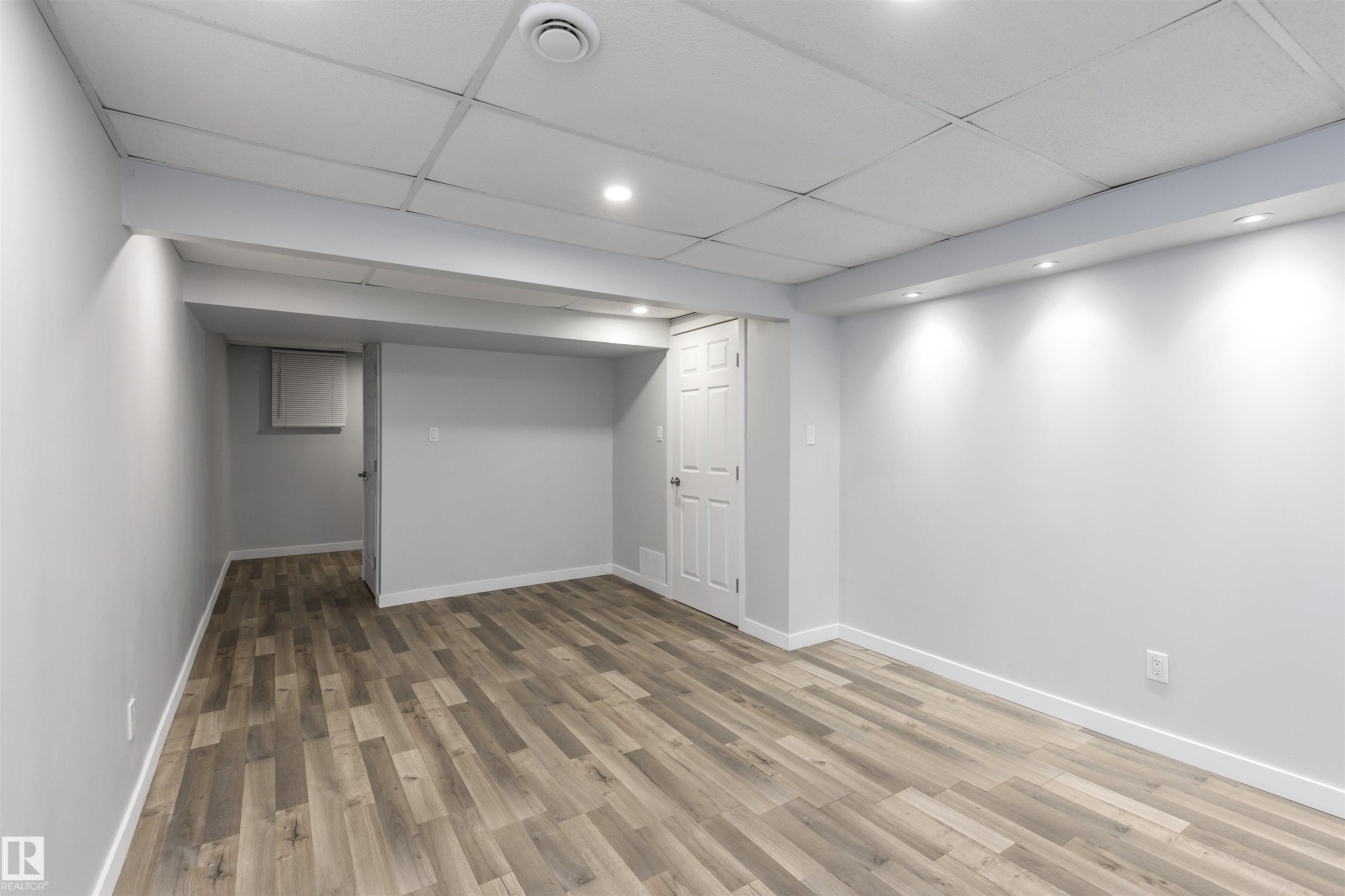 Rare find in Cedar Mills! Welcome to this beautiful updated and fully finished BUNGALOW, featuring modern upgrades from top to bottom. The kitchen shines with new cabinets, countertops, stainless steel appliances and a stylish backsplash, The living room offers new flooring and good sized windows that fill the space with natural light, creating a warm and inviting atmosphere. The fully renovated bathroom adds a touch of spa-like comfort, while the two spacious main-floor bedrooms feature mirrored closets & plenty of room to relax downstairs the fully finished basement includes laminate flooring, a large family area, bedroom and a bonus three- piece-bath- perfect for the kids hangout, home gym or office. Enjoy a fenced, landscaped yard, ideal for pets, gardening, family gettogethers The unit also comes with a convenient parking stall close to your door. Recent upgrades- new furnace in 2024, roof, siding and windows. Don't miss your chance to own this move-in ready gem! Close to amenities & Anthony Henday