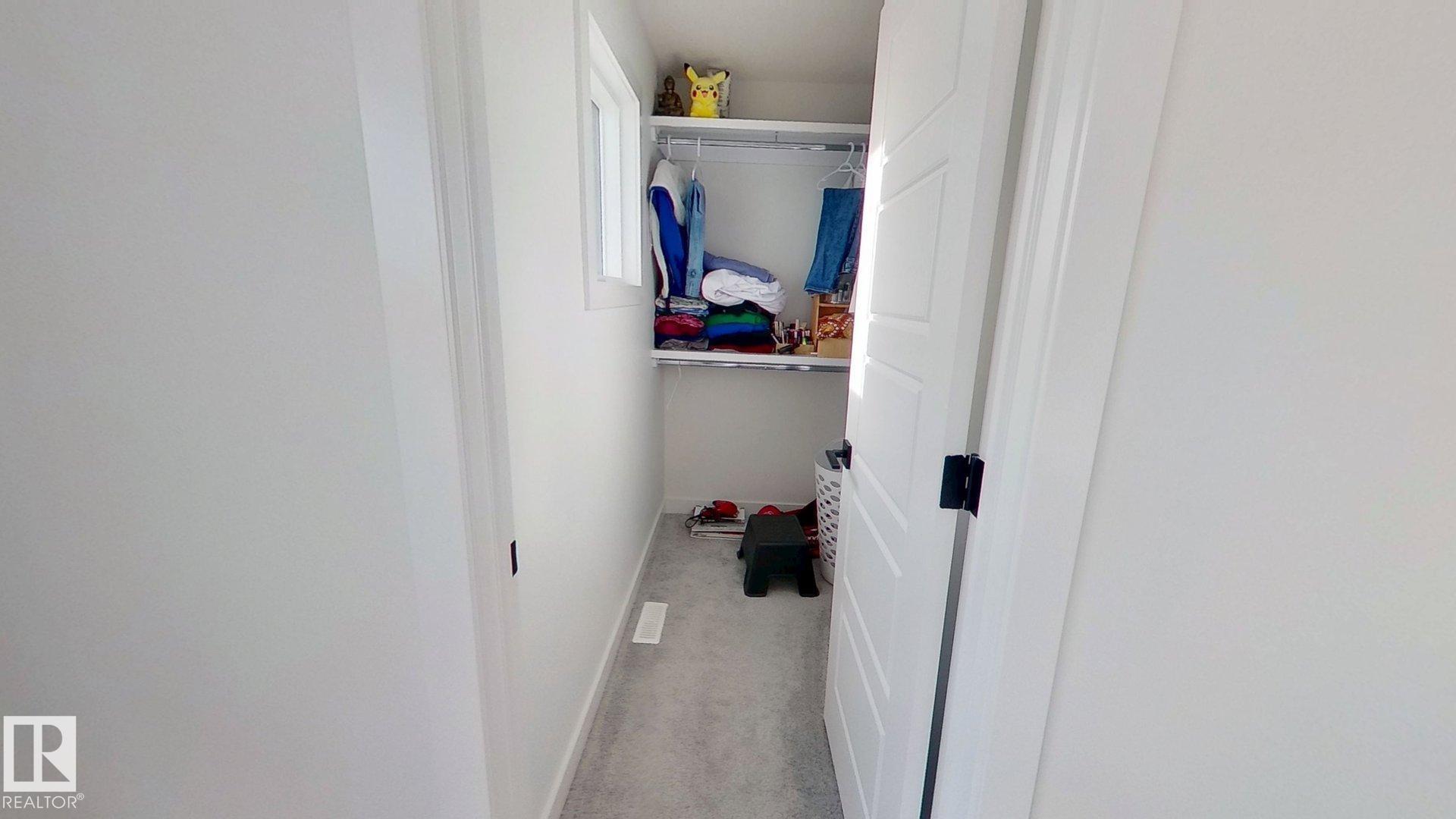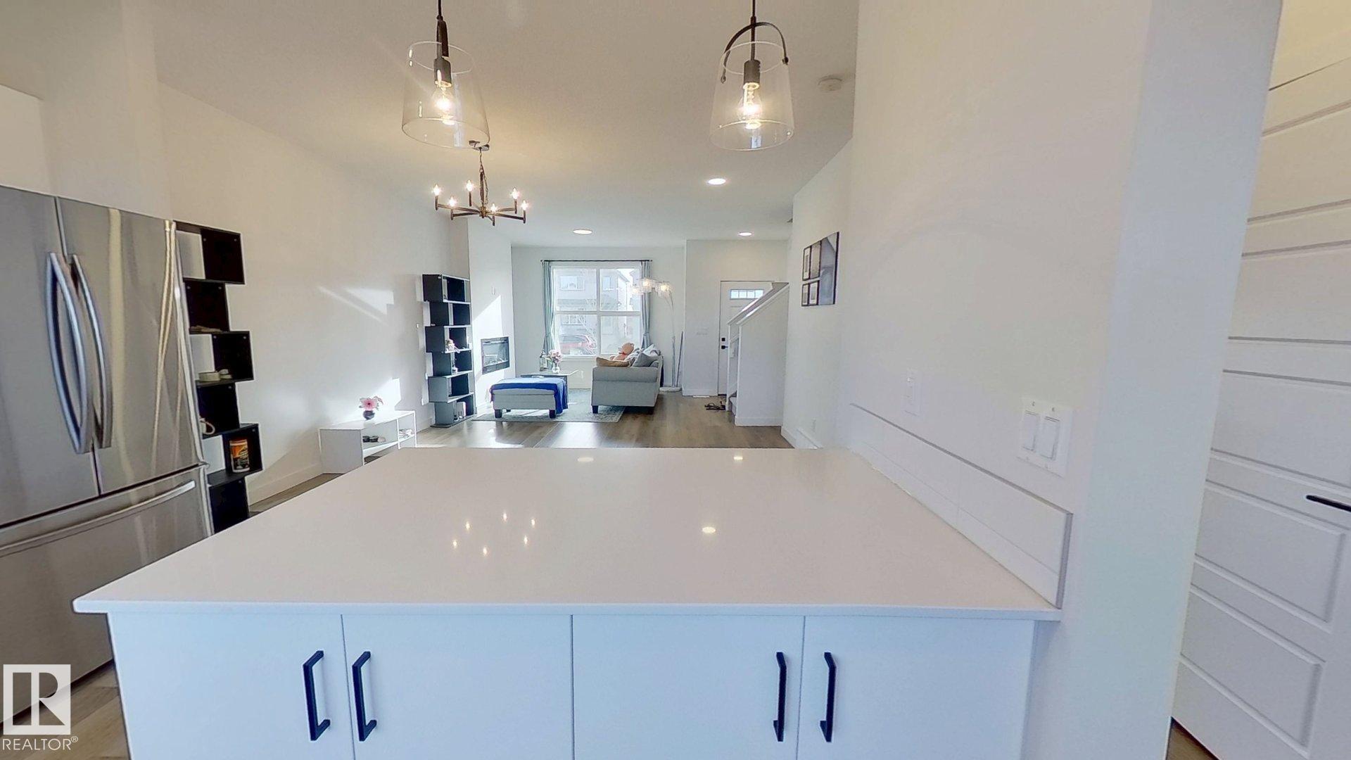 2022-built, 1,410 sq ft two-storey home by Alquinn Homes in Fort Saskatchewan. Main floor features an open-concept layout with luxury vinyl plank flooring, custom MDF shelving/cabinets, electric fireplace, large living & dining area, kitchen island with generous counter space and a 2-piece bath. Upper level offers 3 bedrooms and a 4-piece main bathroom; the master suite includes a 4-piece ensuite and walk-in closet with MDF shelving. Separate side entrance plus rear entrance. Fully-landscaped yard with partial fencing. Full, unfinished basement. Comes with all six appliances and custom window coverings. Oversized double detached garage (suitable for a full-size pickup) with opener and two remotes. Convenient access to the Heartland area without driving through town, close to all K-9 schools, approximately five minutes’ drive to the hospital, easy access to highway and major roads.