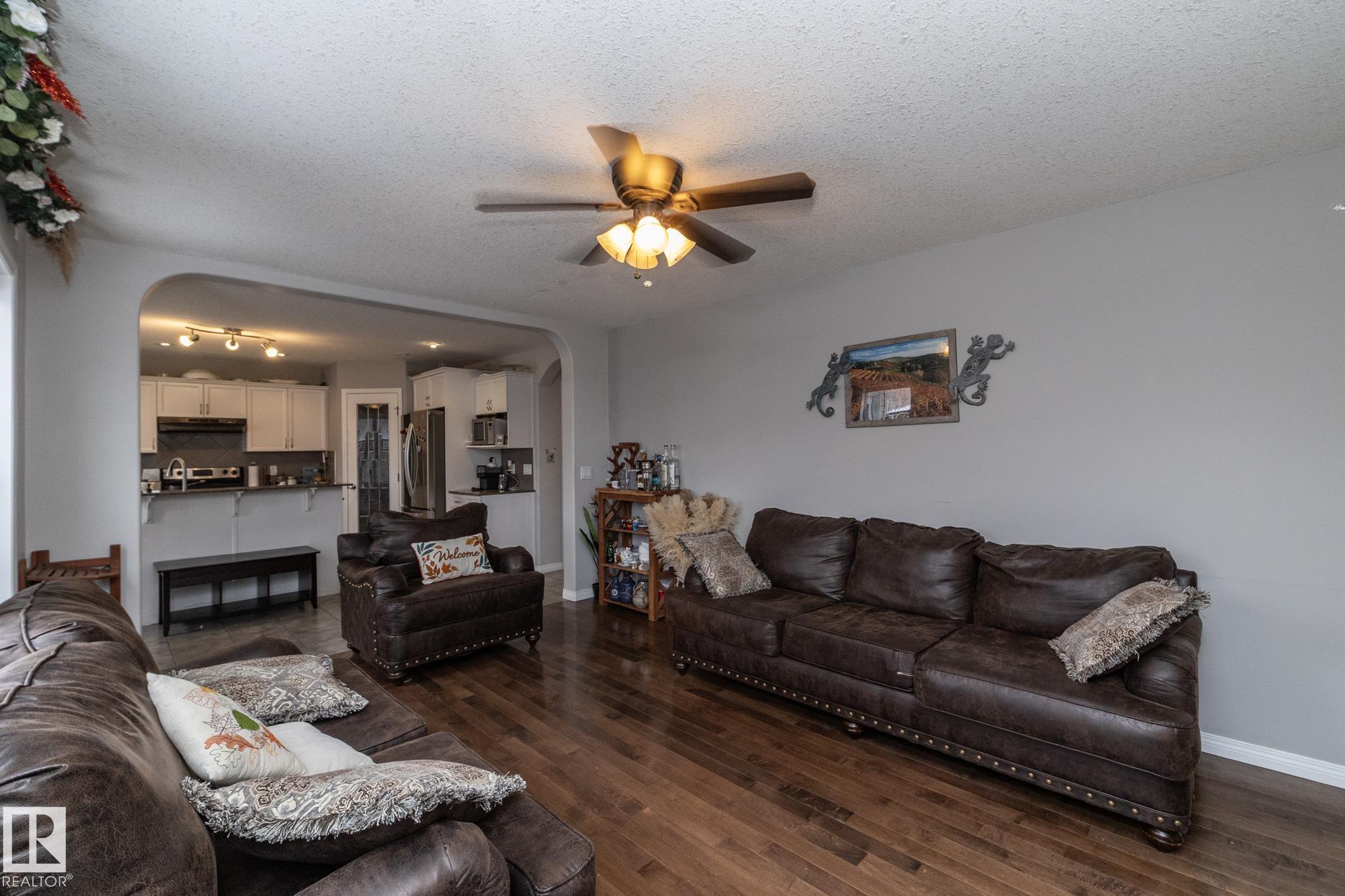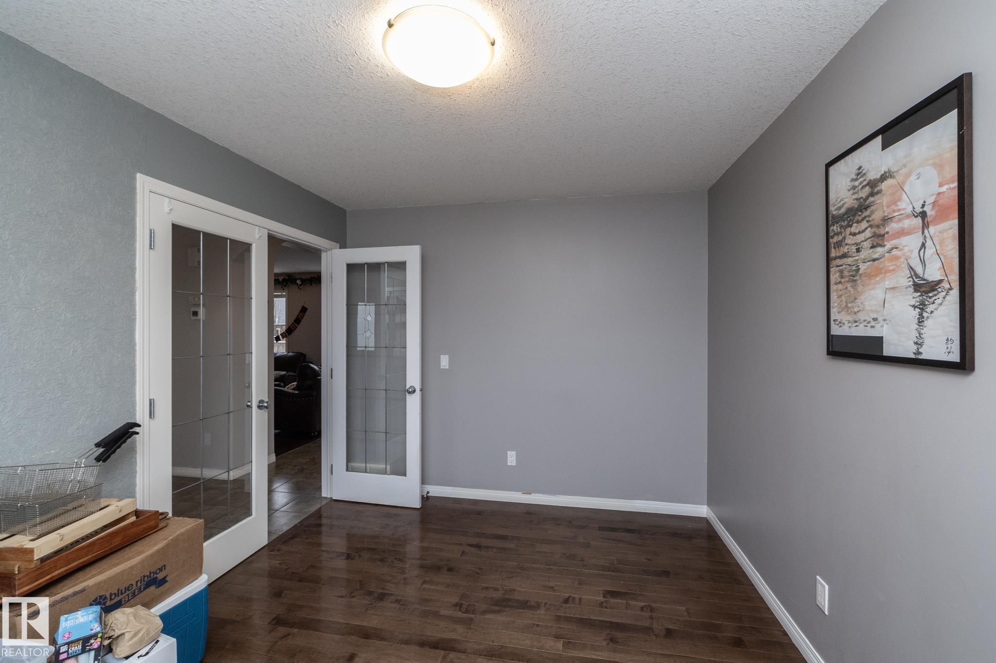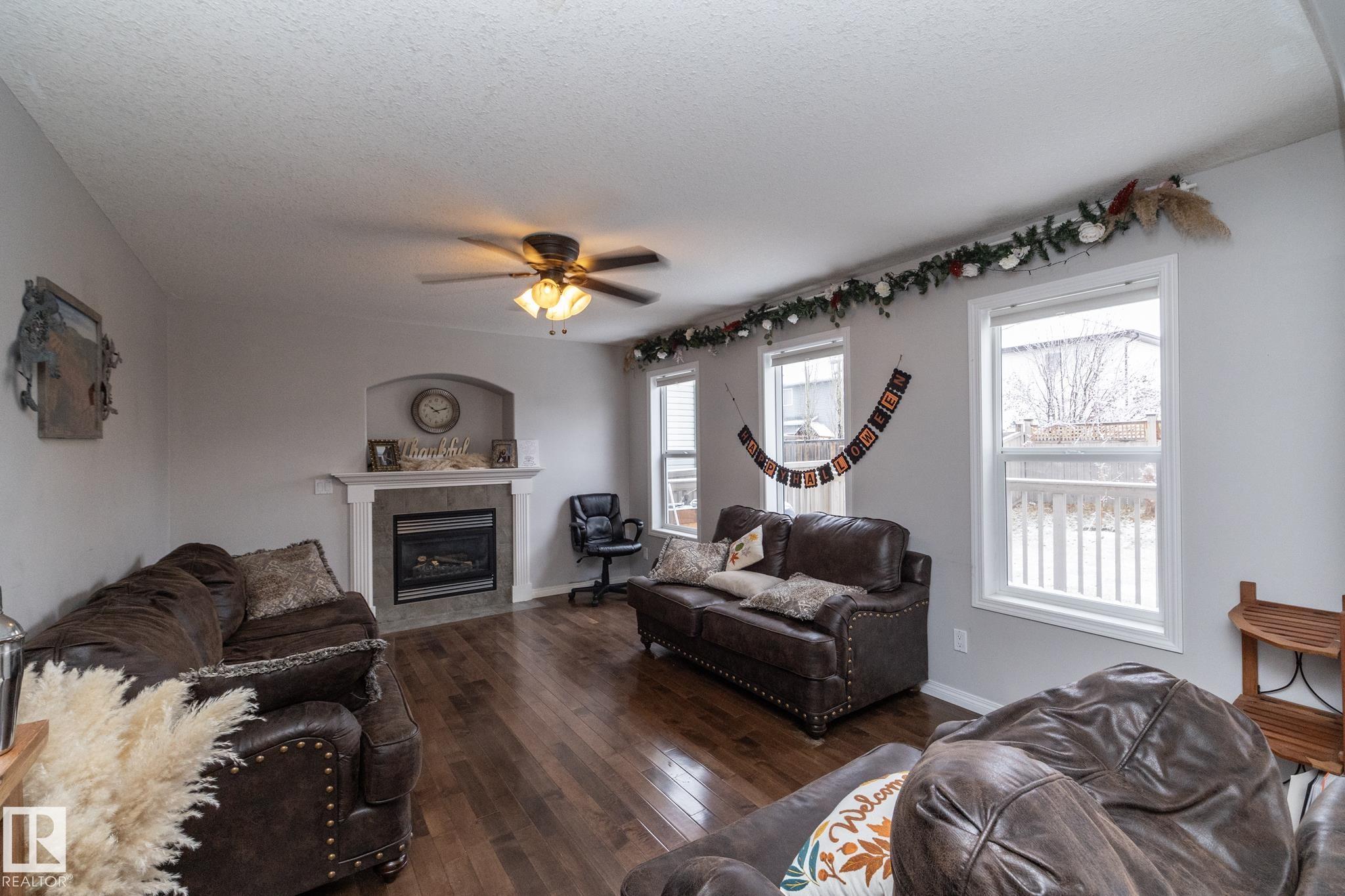 Welcome to this spacious and well built home located in Notre Dame Estates next to a park, and down the road from Ecole Notre Dame and Four Winds School!! This wonderful neighborhood is close to all schools, shopping, playgrounds and has easy access to HWY 28, and only 15 mins to CFB Edmonton. As you enter you are greeted with 17 foot ceilings with lots of natural sunlight. The main level has a great layout, and features a nice white kitchen with granite countertops and a dining area, a large living room with large windows and a gas fireplace, an office/den, a large mud room with laundry, and a powder room. All the flooring is beautiful hardwood and ceramic tiles. Upstairs features a small bonus area, a large primary bedroom with walk-in closet and full 4 piece ensuite. There is also 2 additional bedrooms and another full bathroom. The basement has 3 large windows and has all plumbing rough-in. Morinville is a wonderful community located 10 mins North of St.Albert.